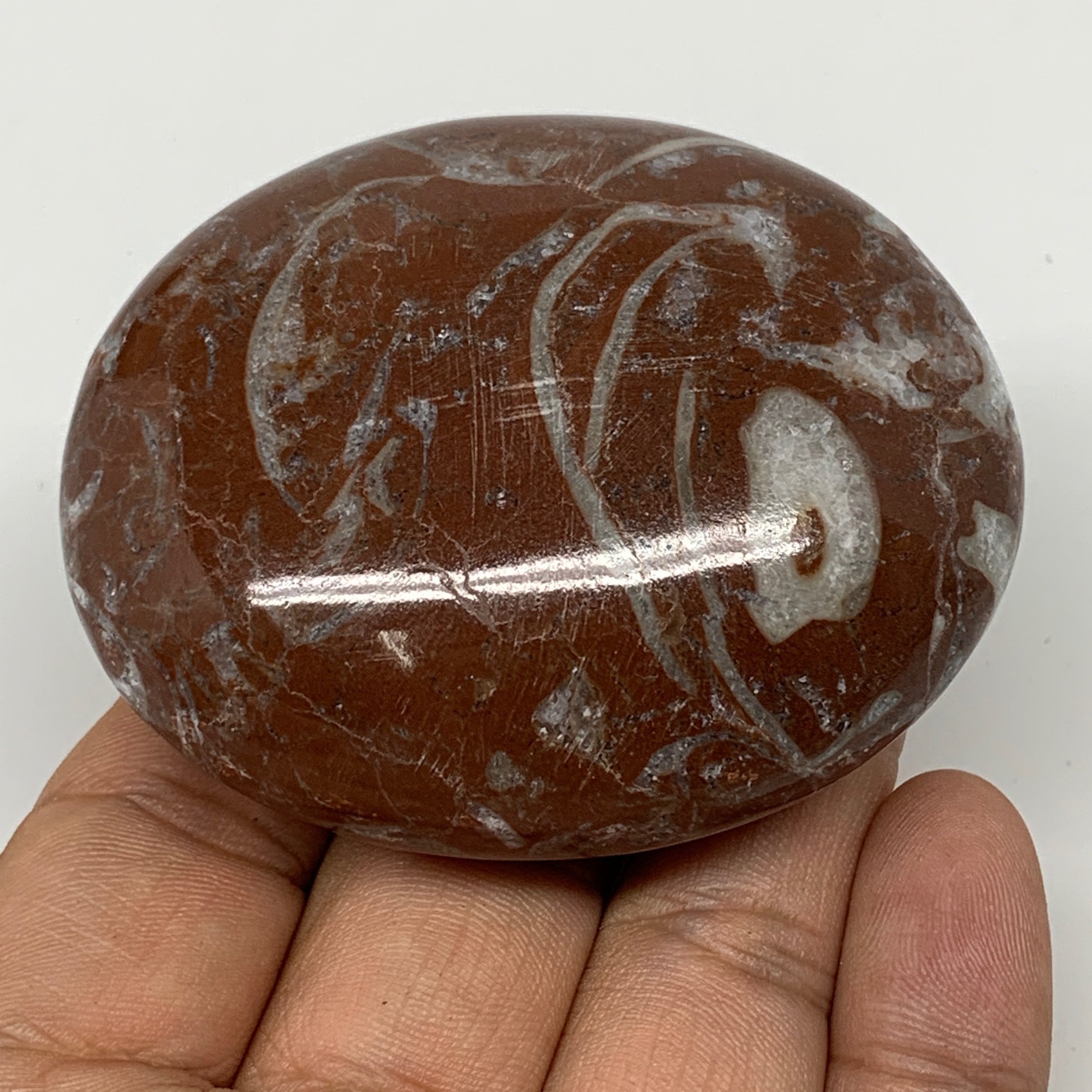 130.4g, 2.6"x2.1"x1", Natural Untreated Red Shell Fossils Oval Palms-tone, F1283