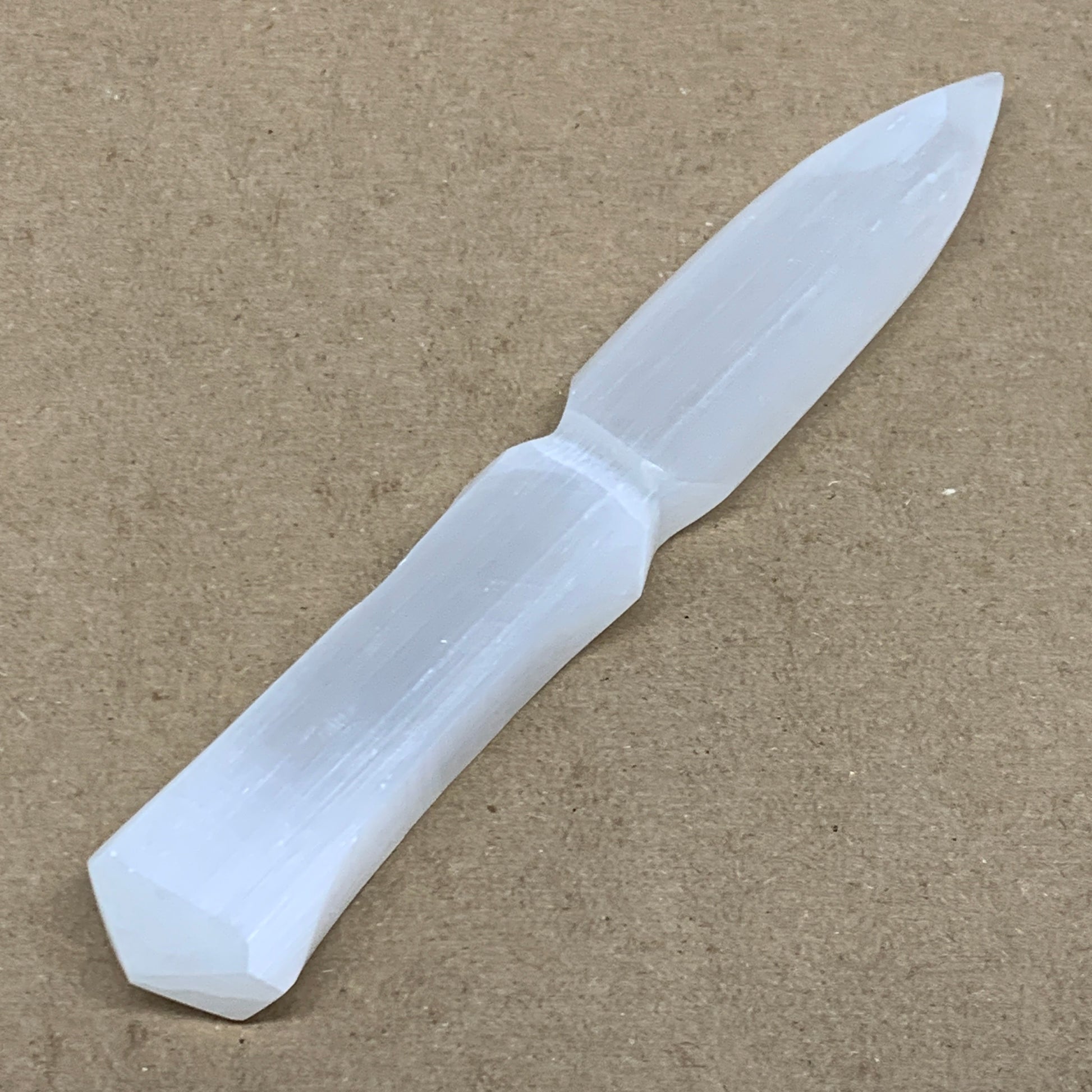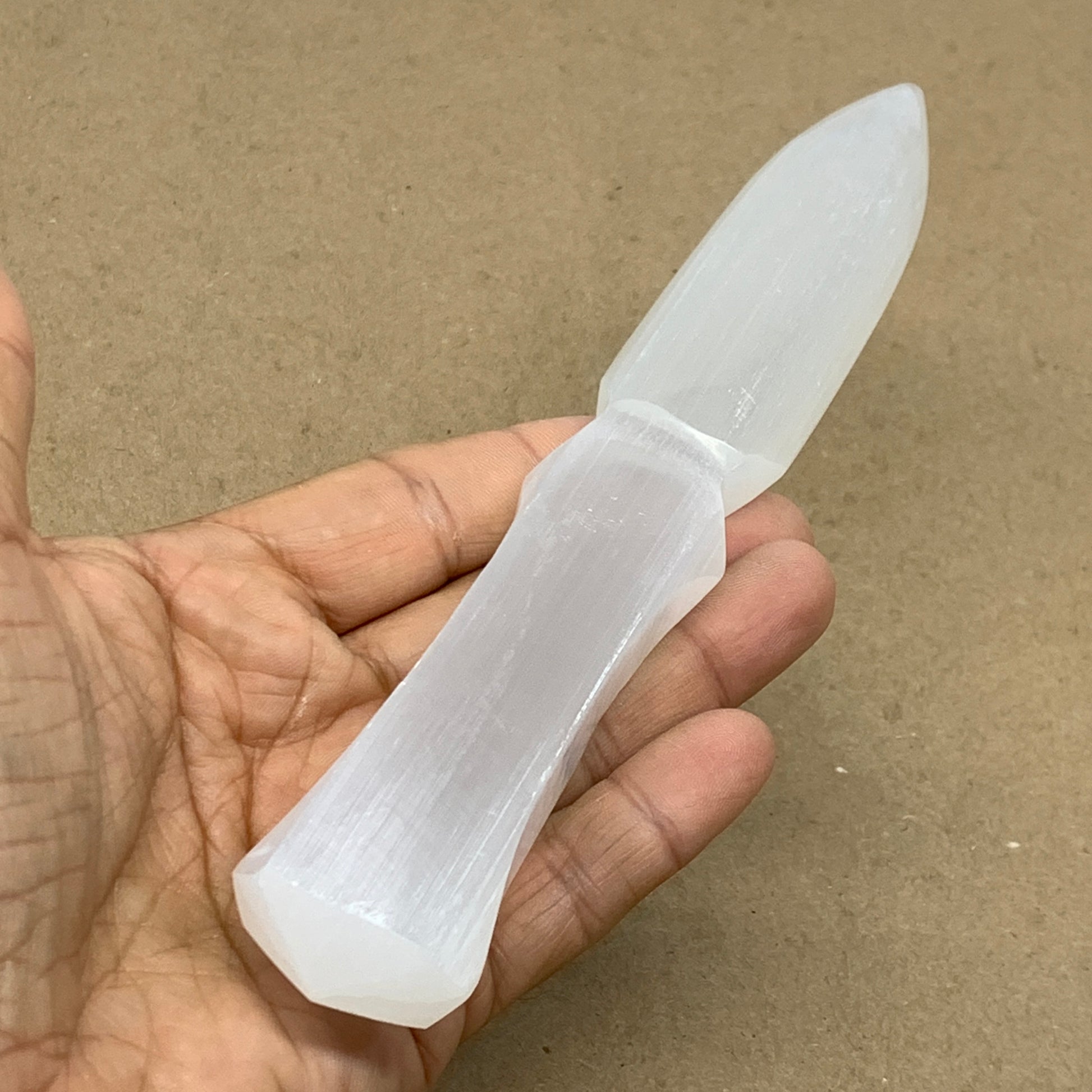 130g, 7.5"x1.1"x0.6", Natural Selenite Crystal Dagger (Satin Spar), B36471