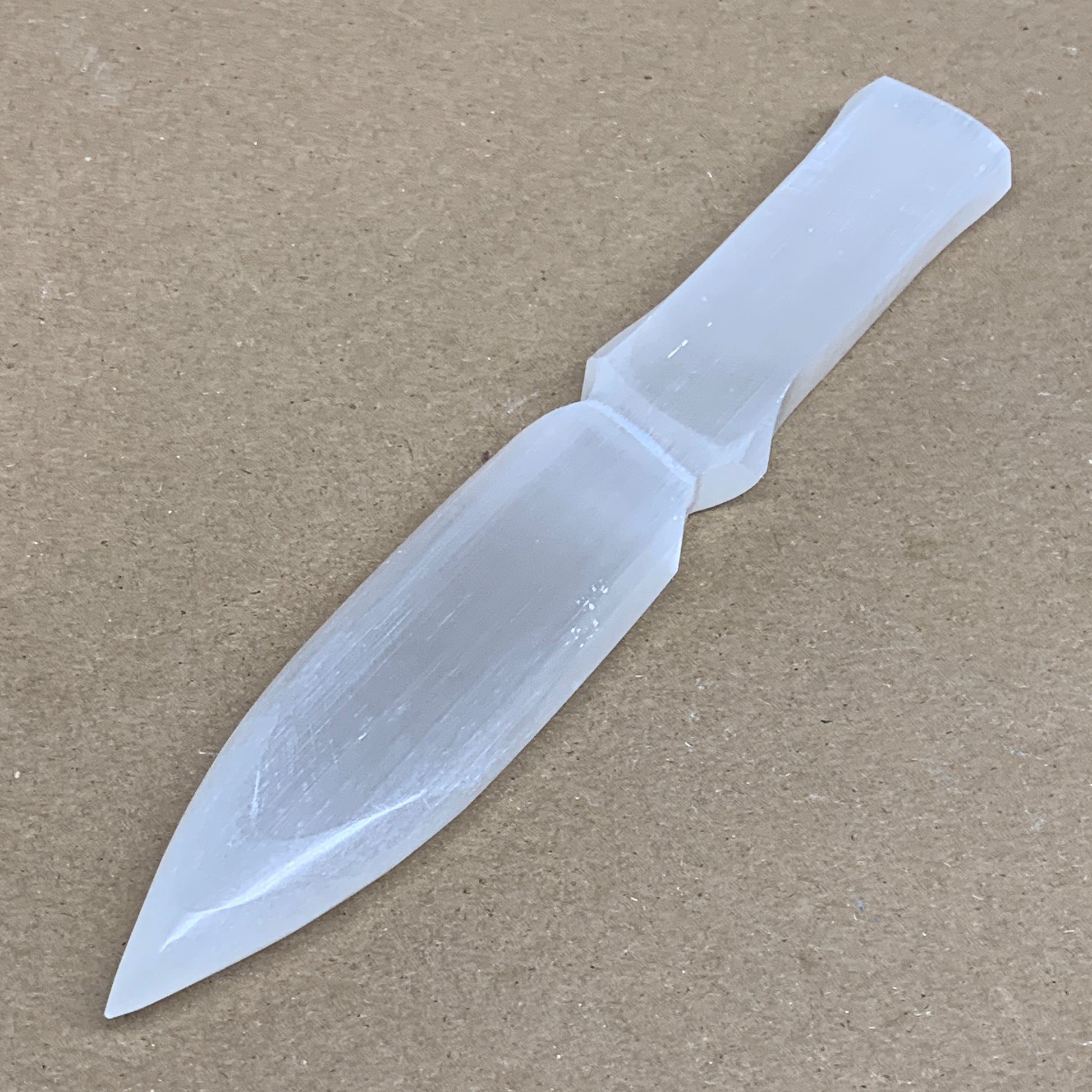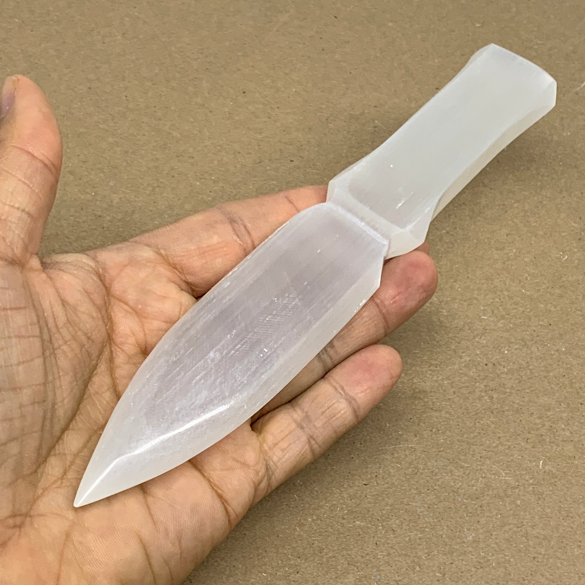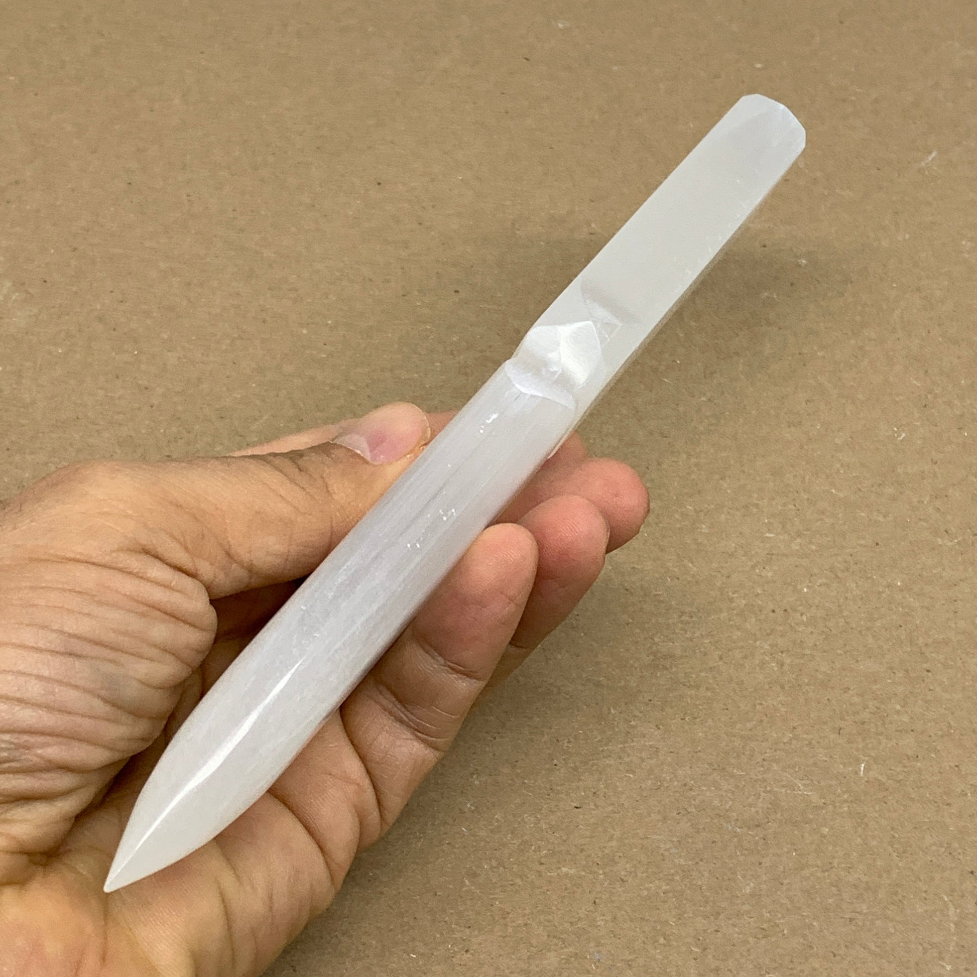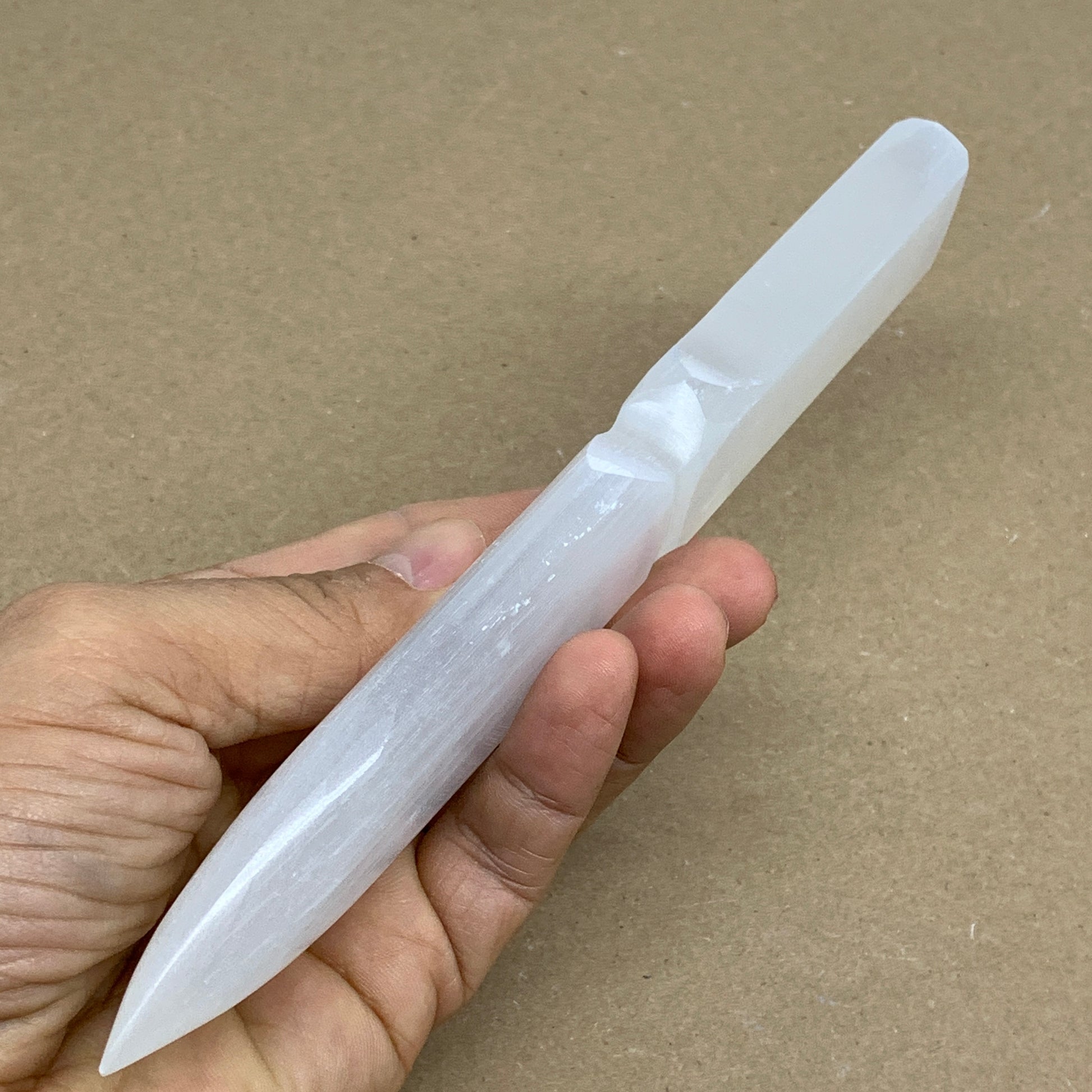 130g, 7.5"x1.2"x0.6", Natural Selenite Crystal Dagger (Satin Spar), B36324