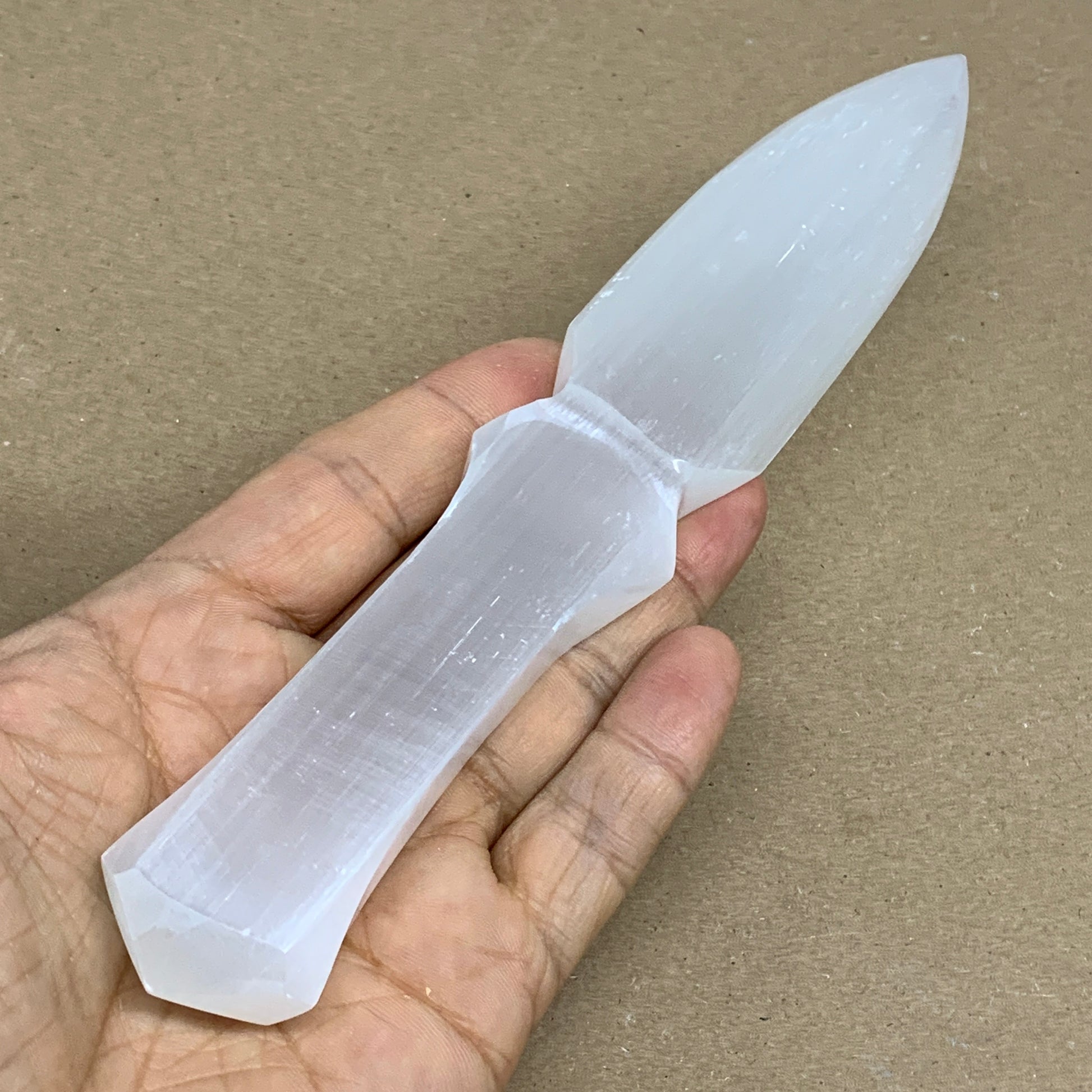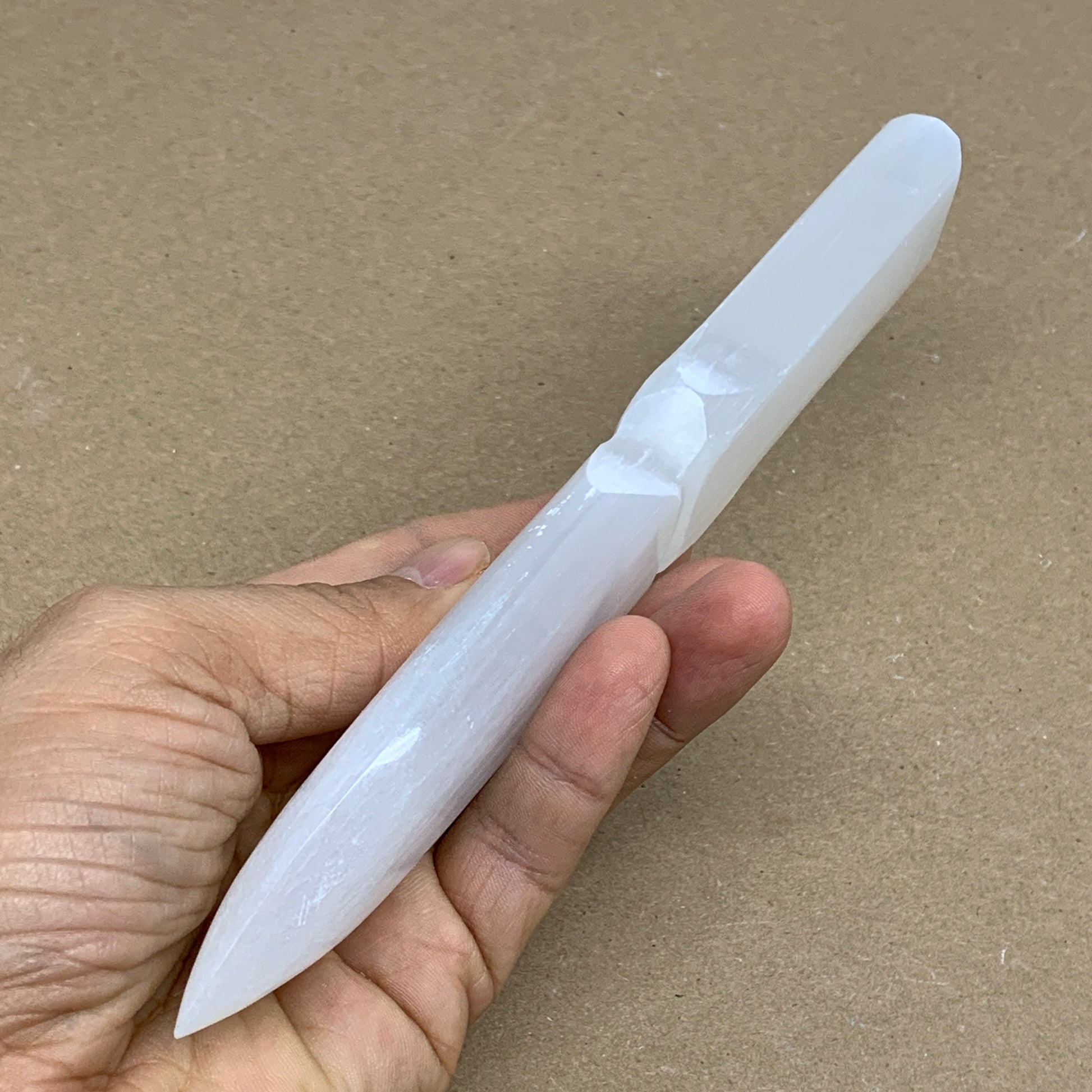 130g, 7.5"x1.3"x0.6", Natural Selenite Crystal Dagger (Satin Spar), B36330