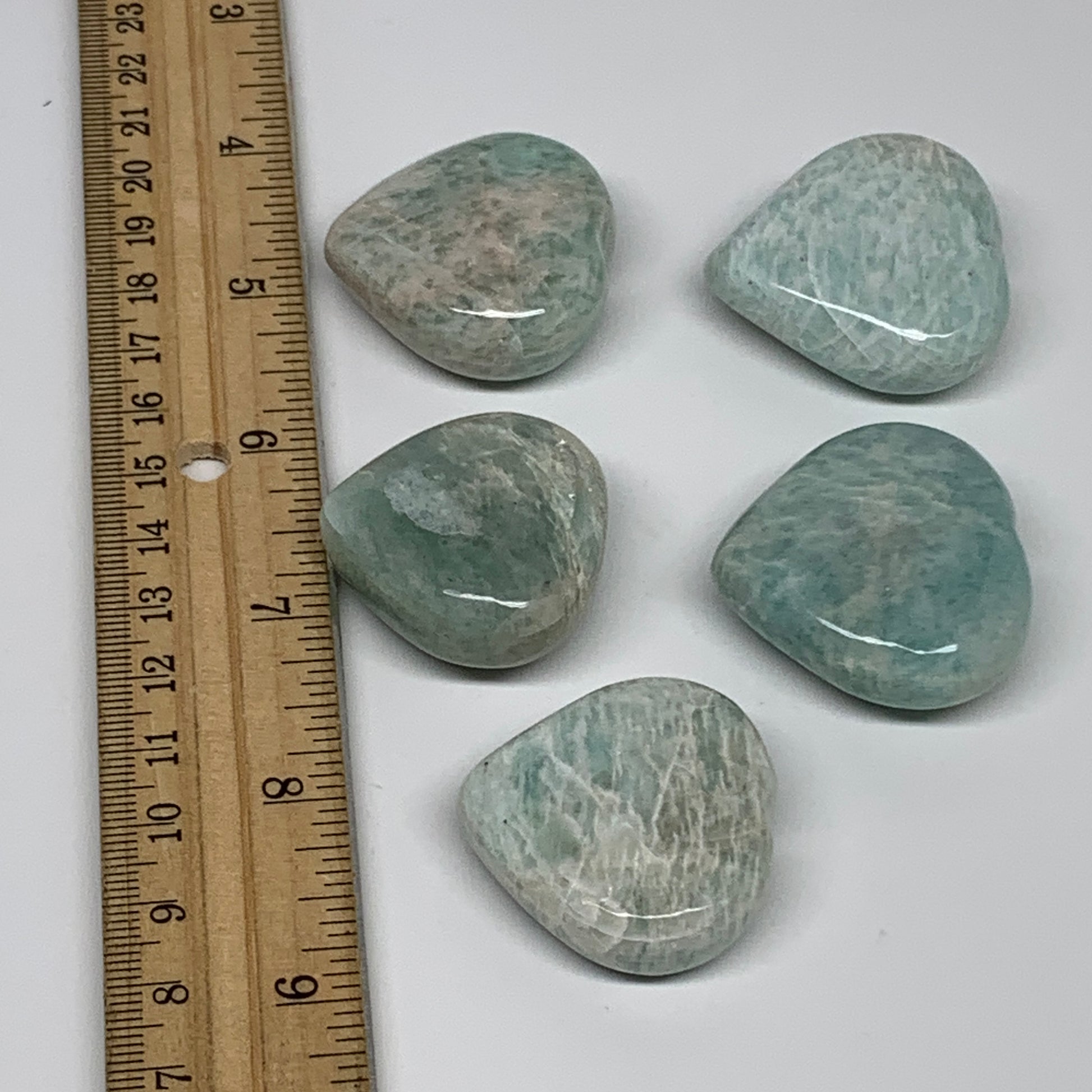 131.7g, 1.3"-1.4", 5pcs, Natural Amazonite Heart Polished Gemstone, B34724