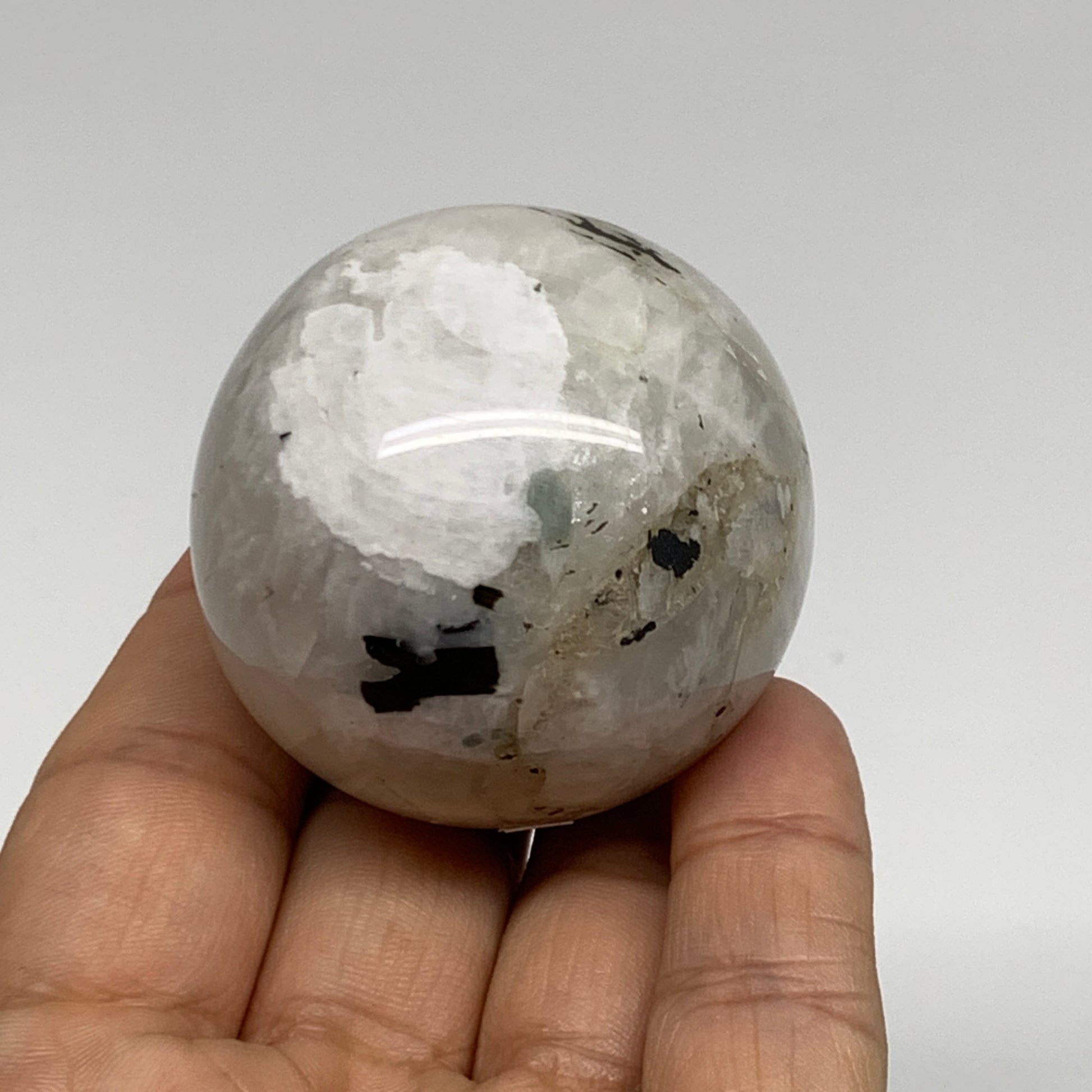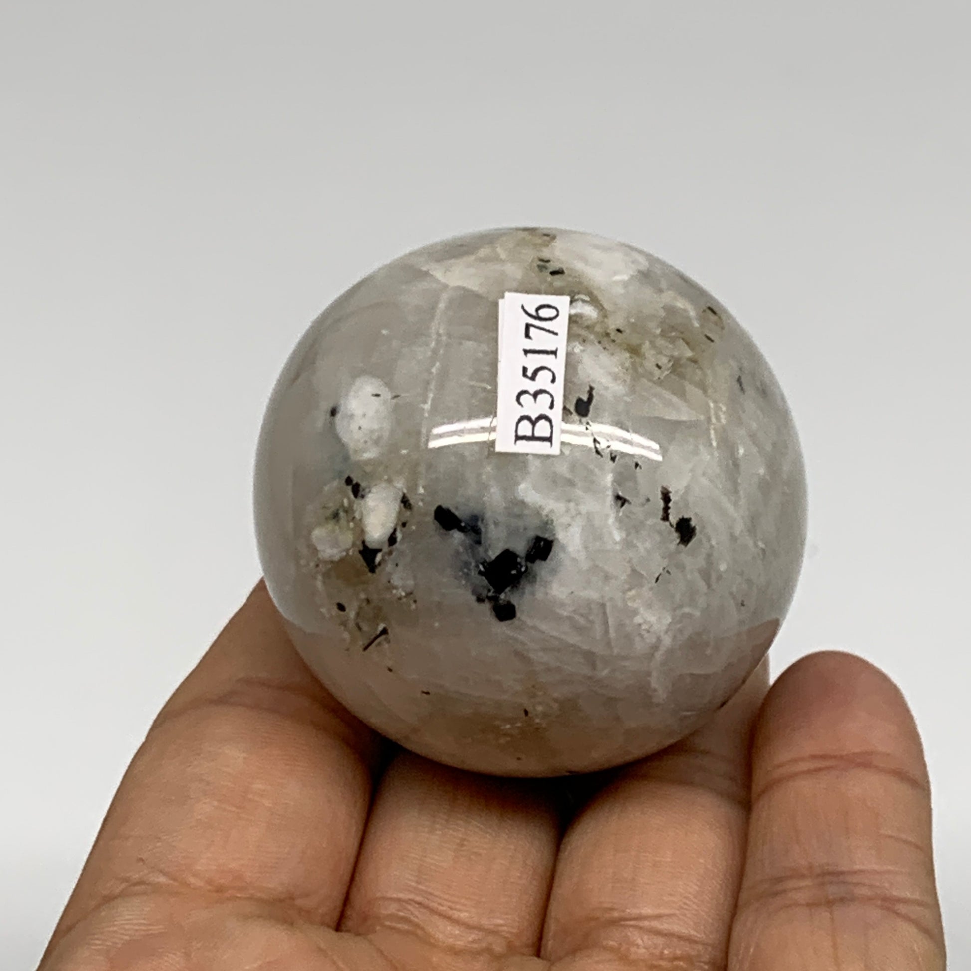 131.8g, 1.8"(45mm), Natural Rainbow Moonstone Sphere Ball Gemstone, B35176