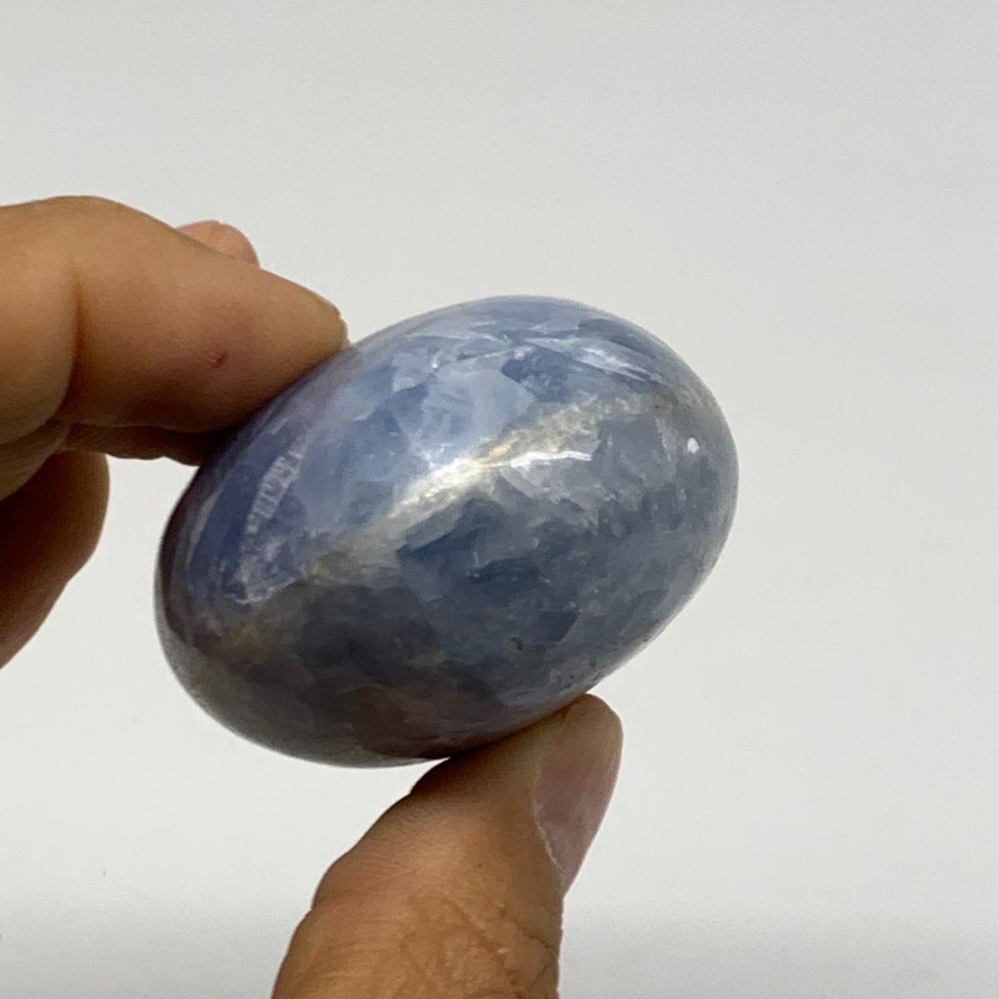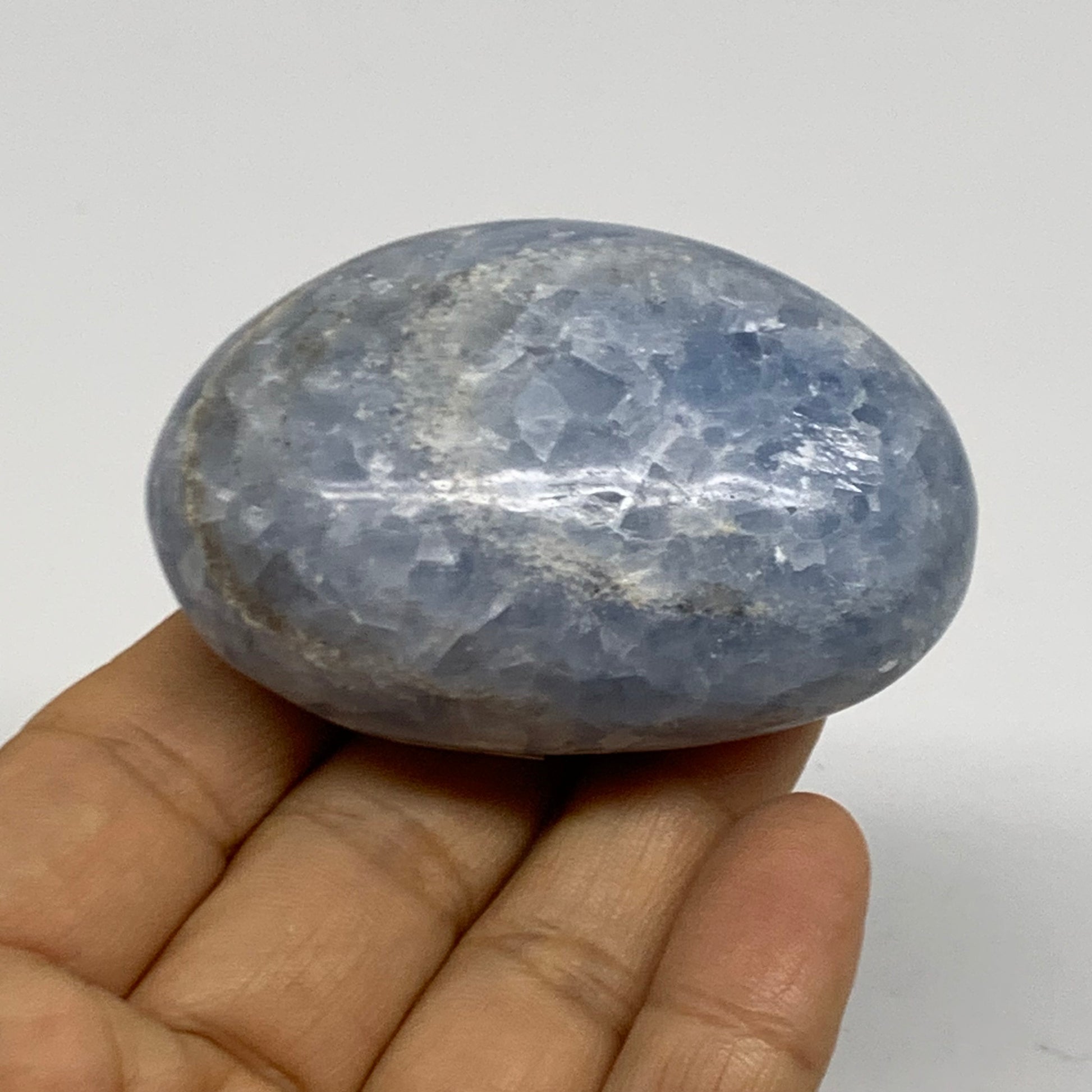131.8g, 2.5"x1.7"x1.2" Blue Calcite Palm-Stone Polished Tumbled, B38109