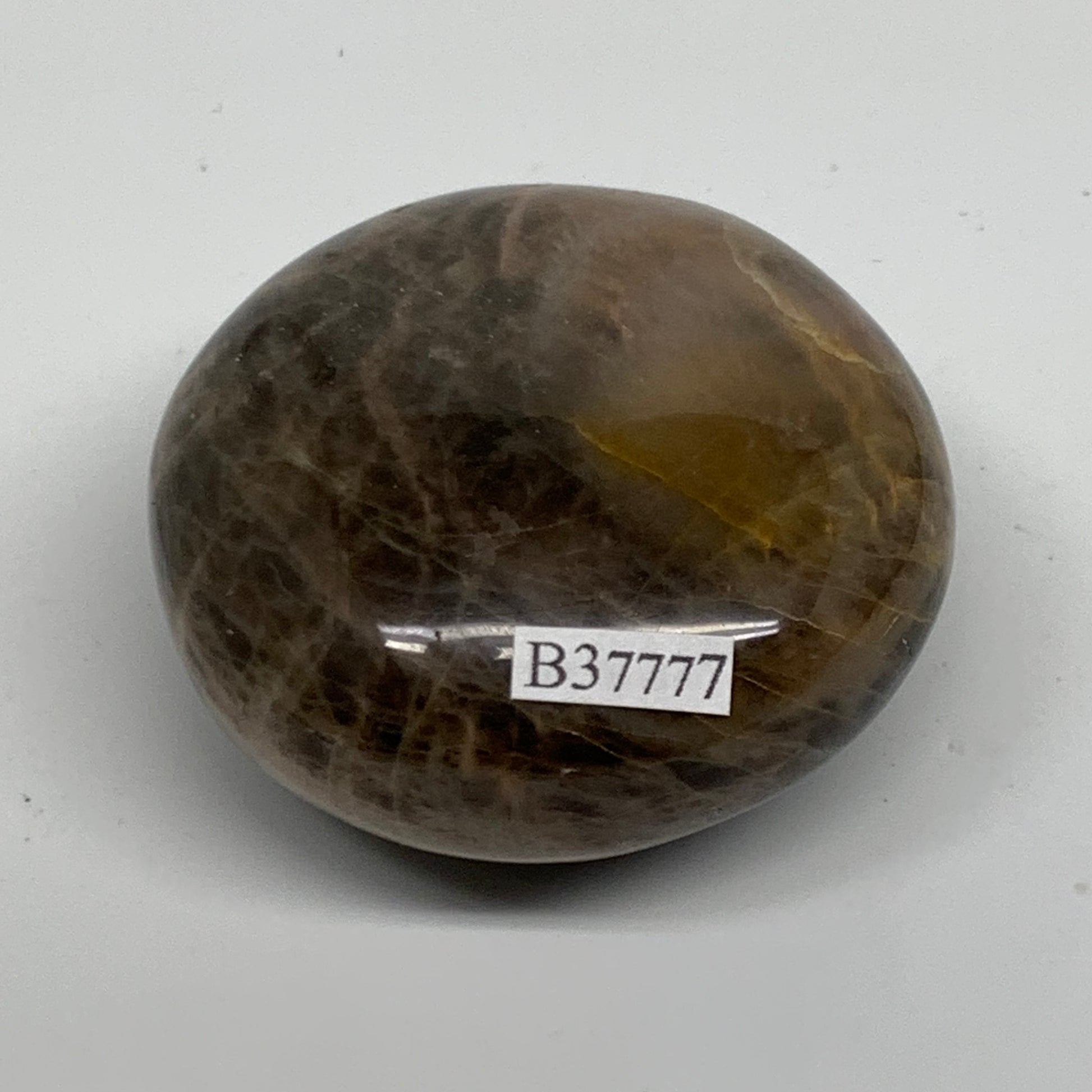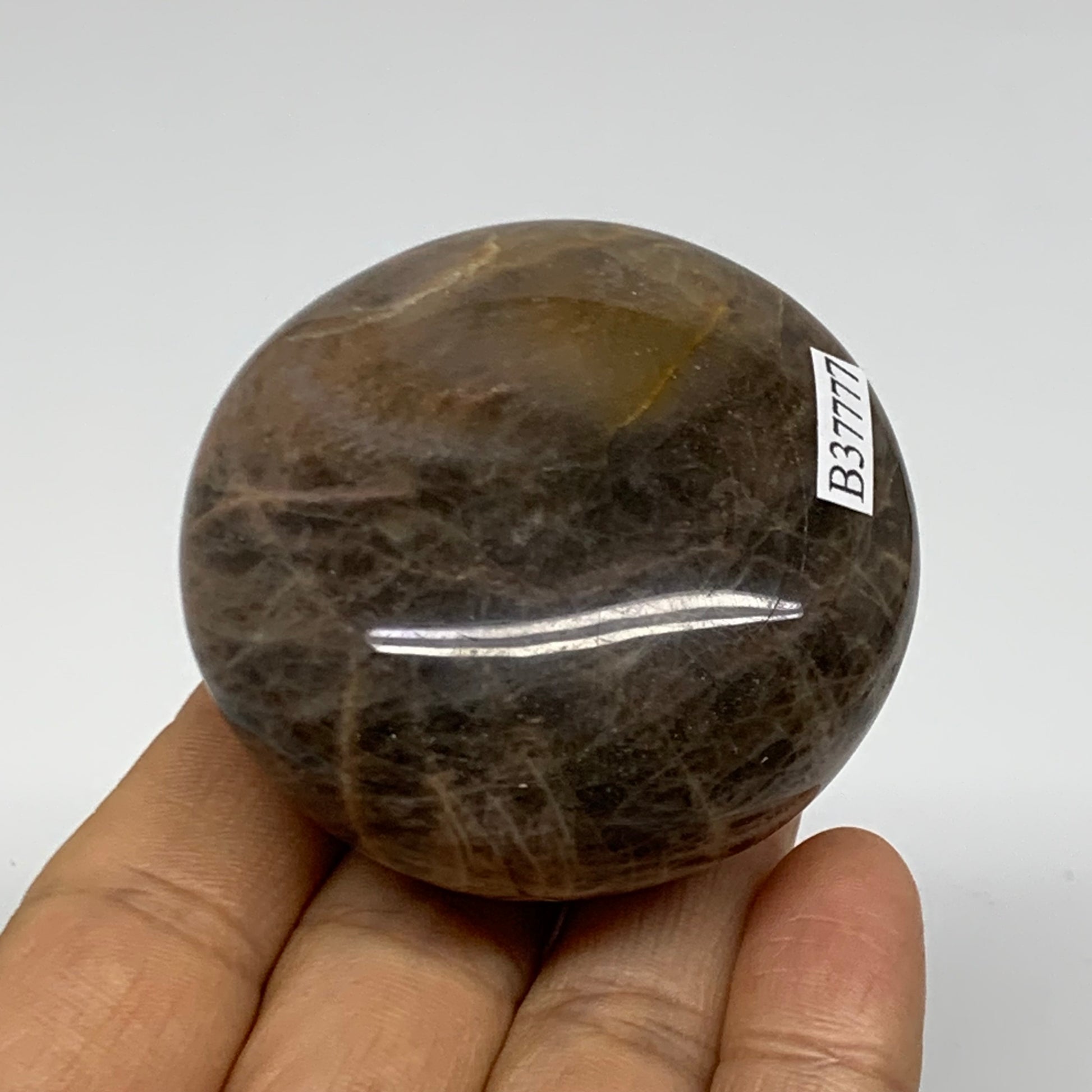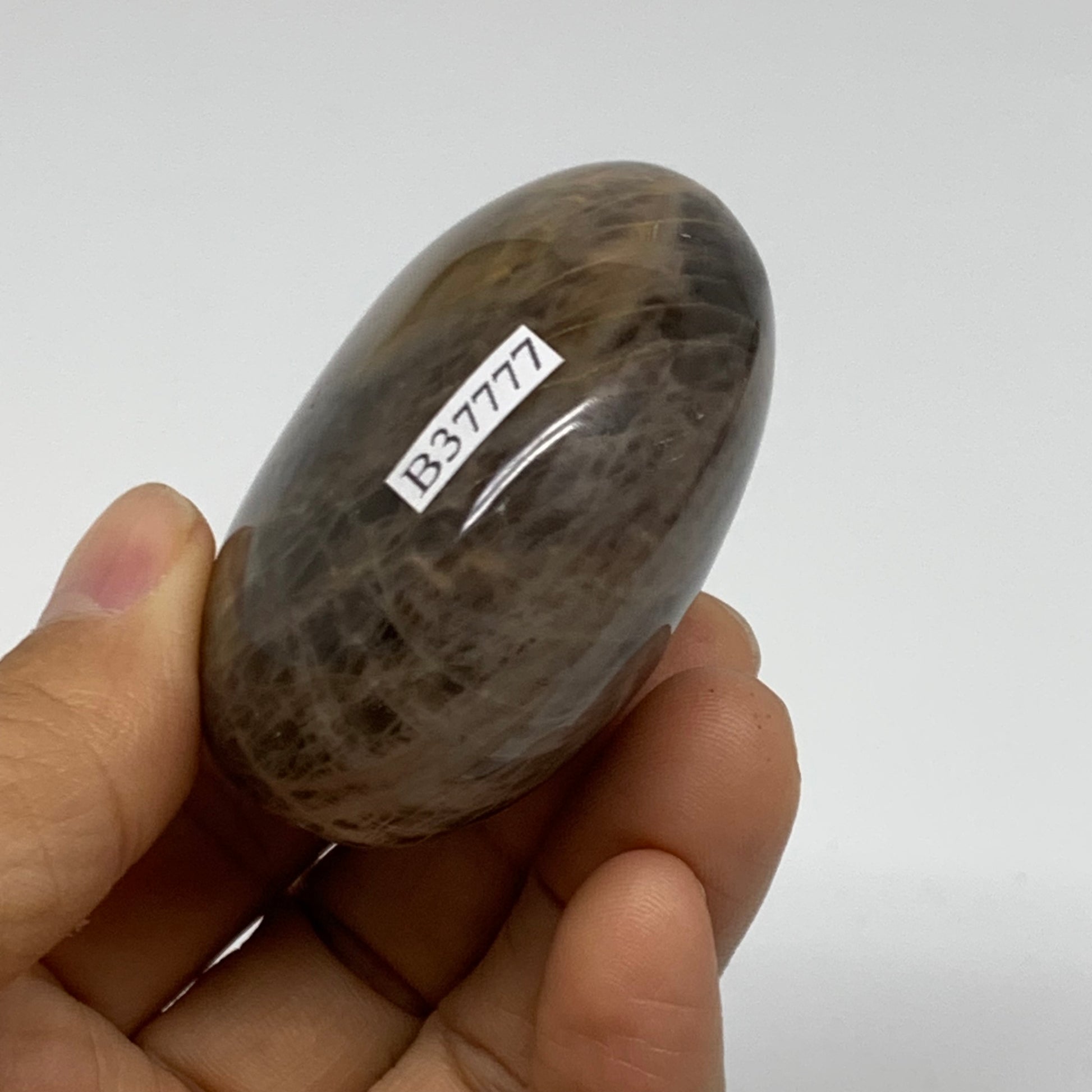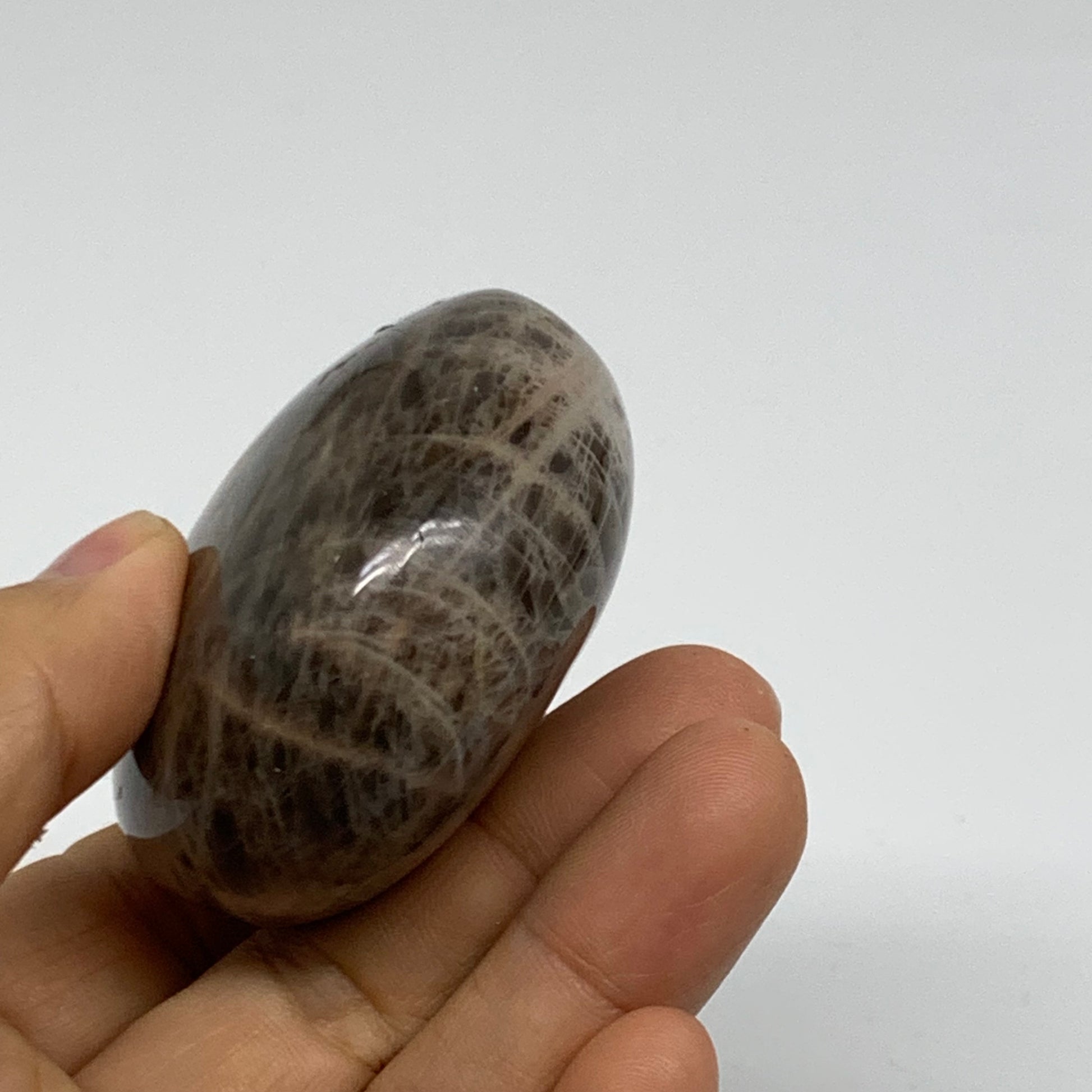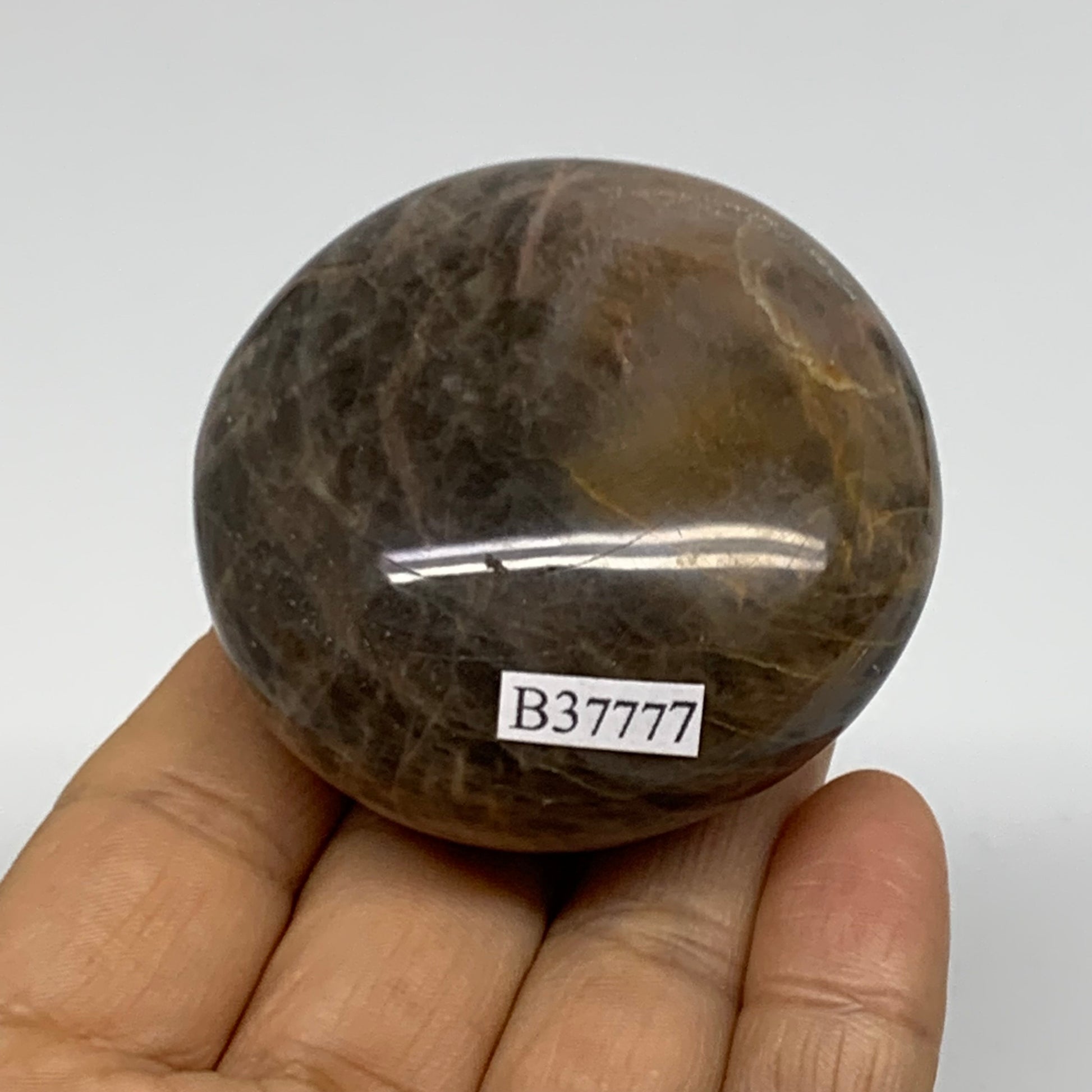 131g, 2.2"x2.2"x1.2", Black Moonstone Crystal Palm-Stone Polished, B37777