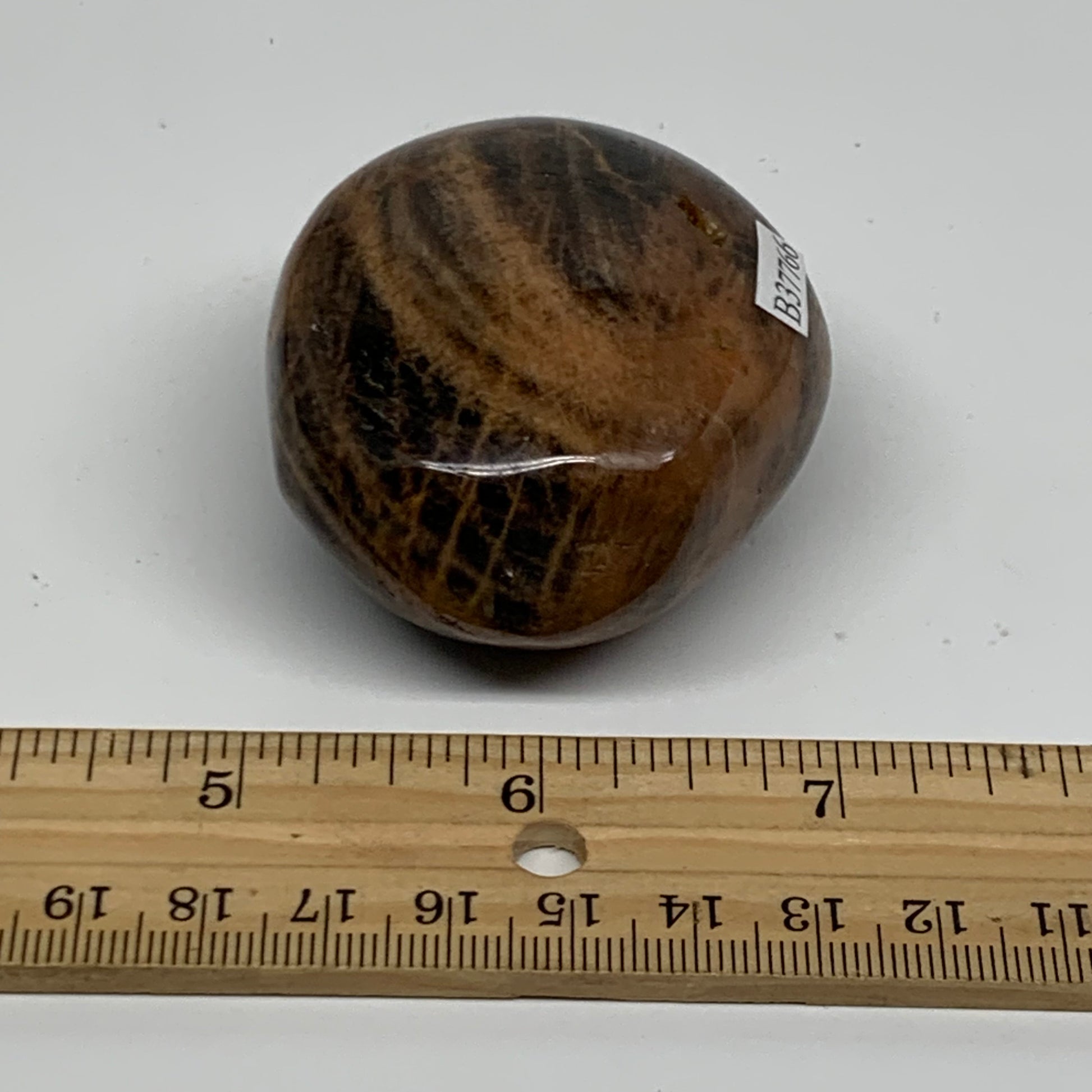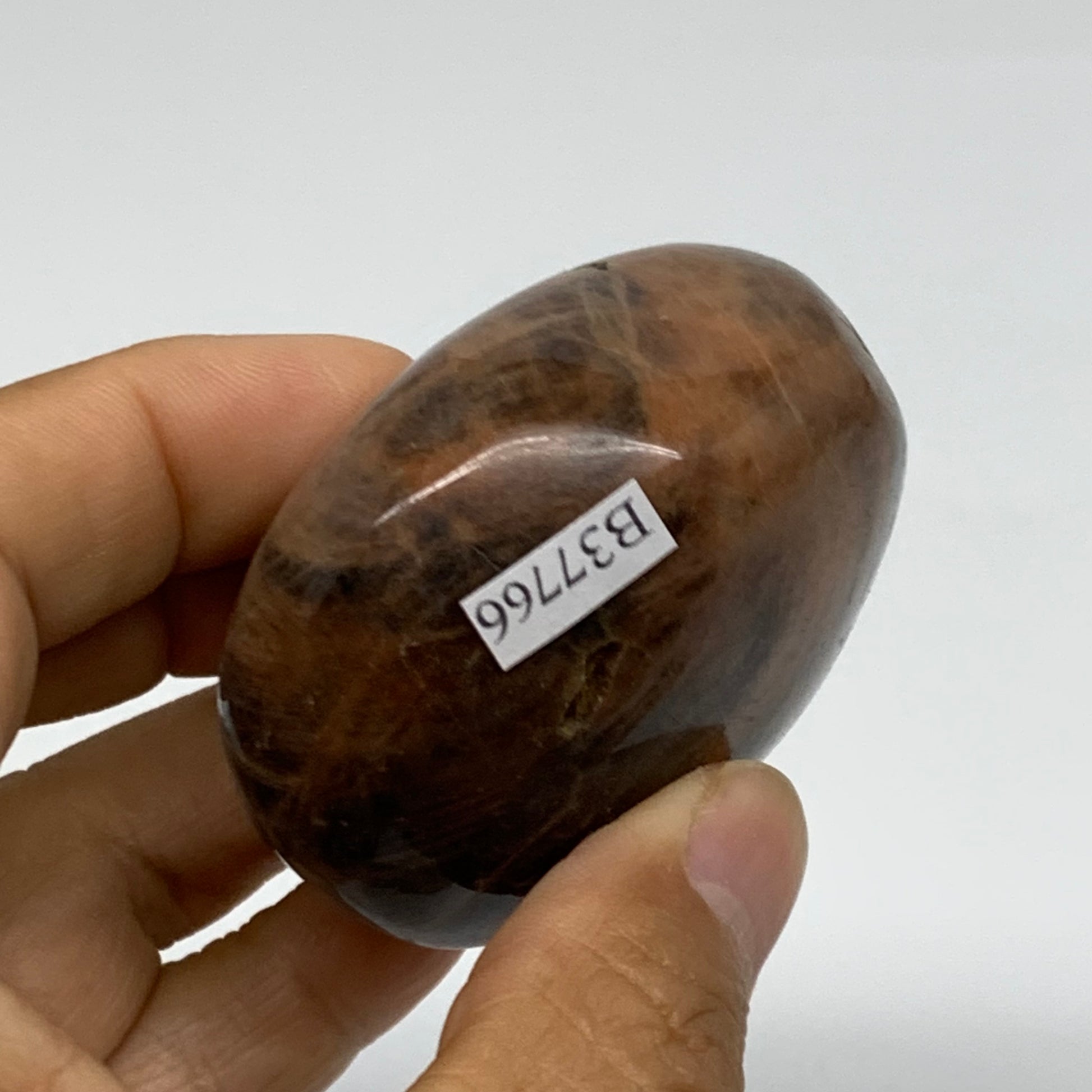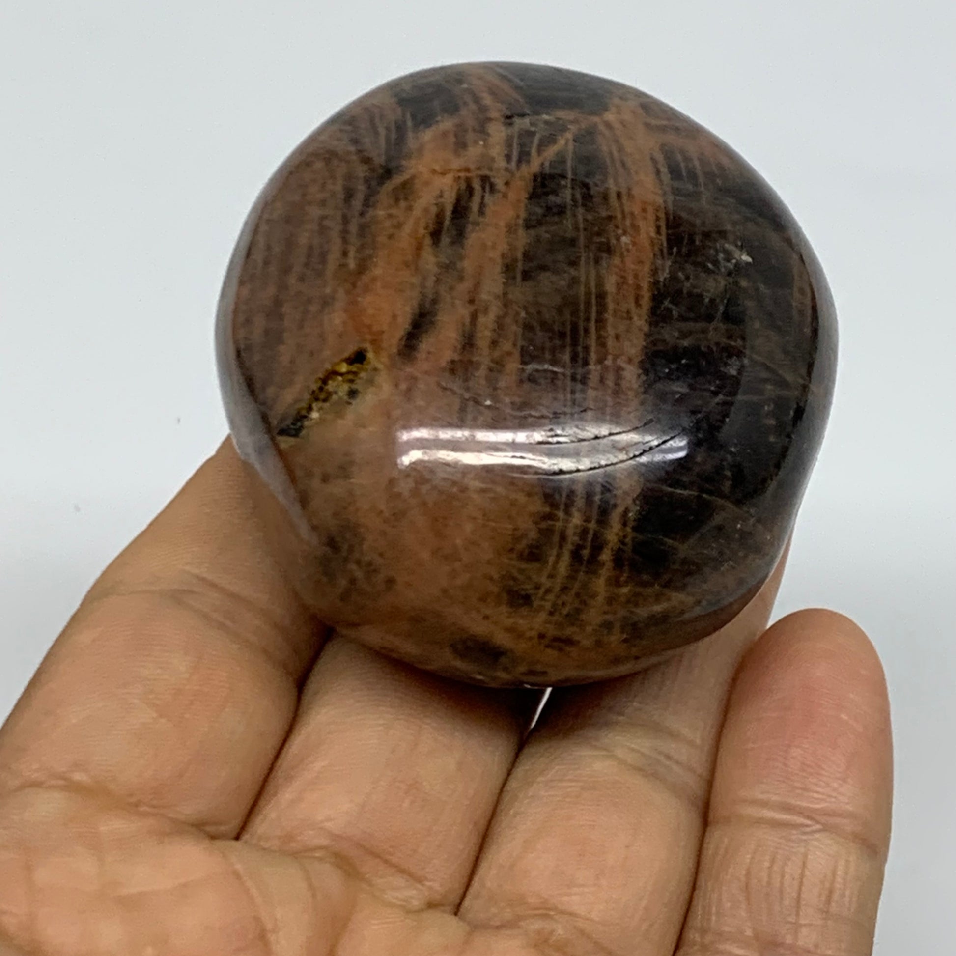 132.1g, 2.2"x2"x1.3", Black Moonstone Crystal Palm-Stone Polished, B37766