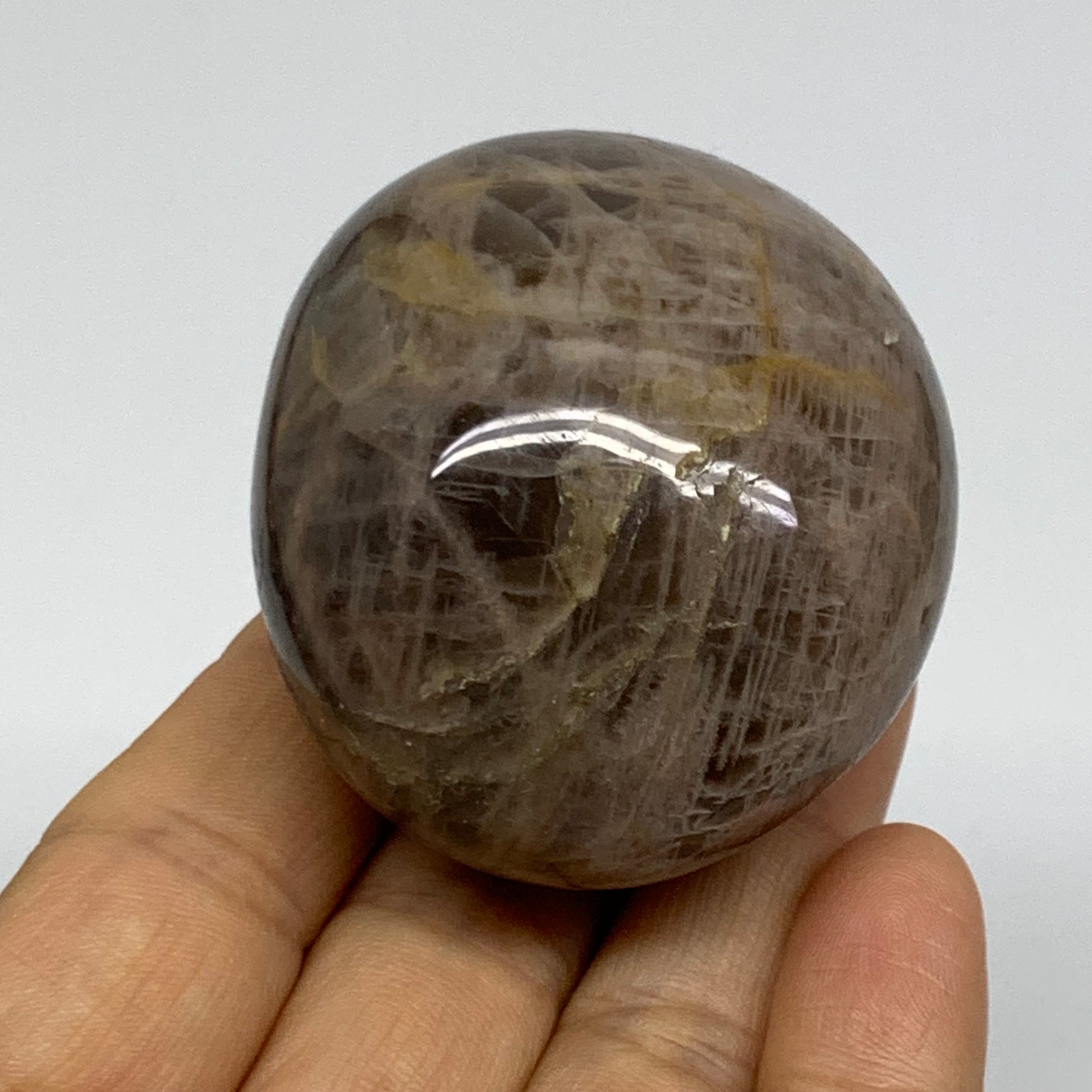 132.3g, 2.2"x1.9"x1.5", Black Moonstone Crystal Palm-Stone Polished, B37767