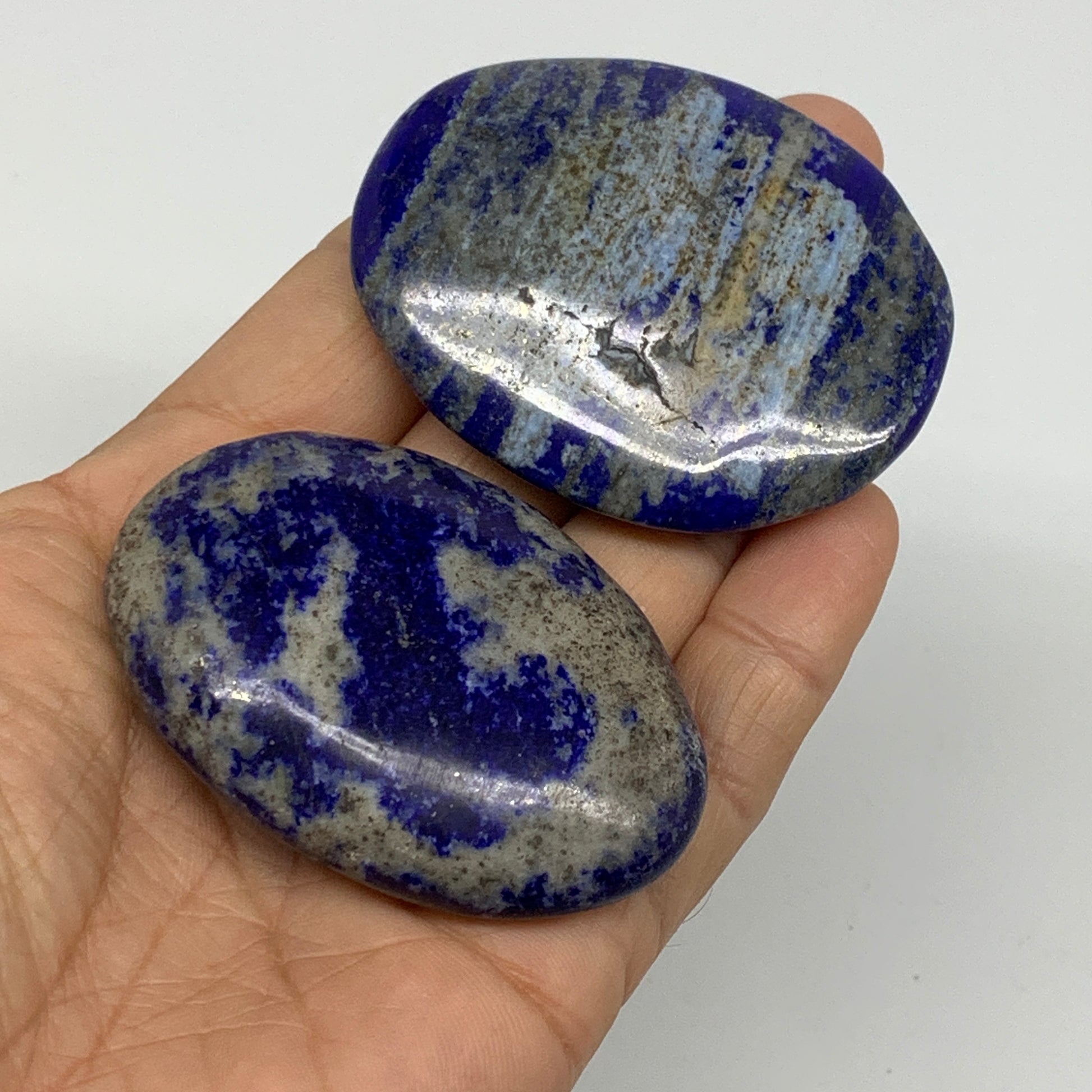 132.5g, 2.4"-2.4", 2pcs, Natural Lapis Lazuli Palm Stone @Afghanistan,B36741