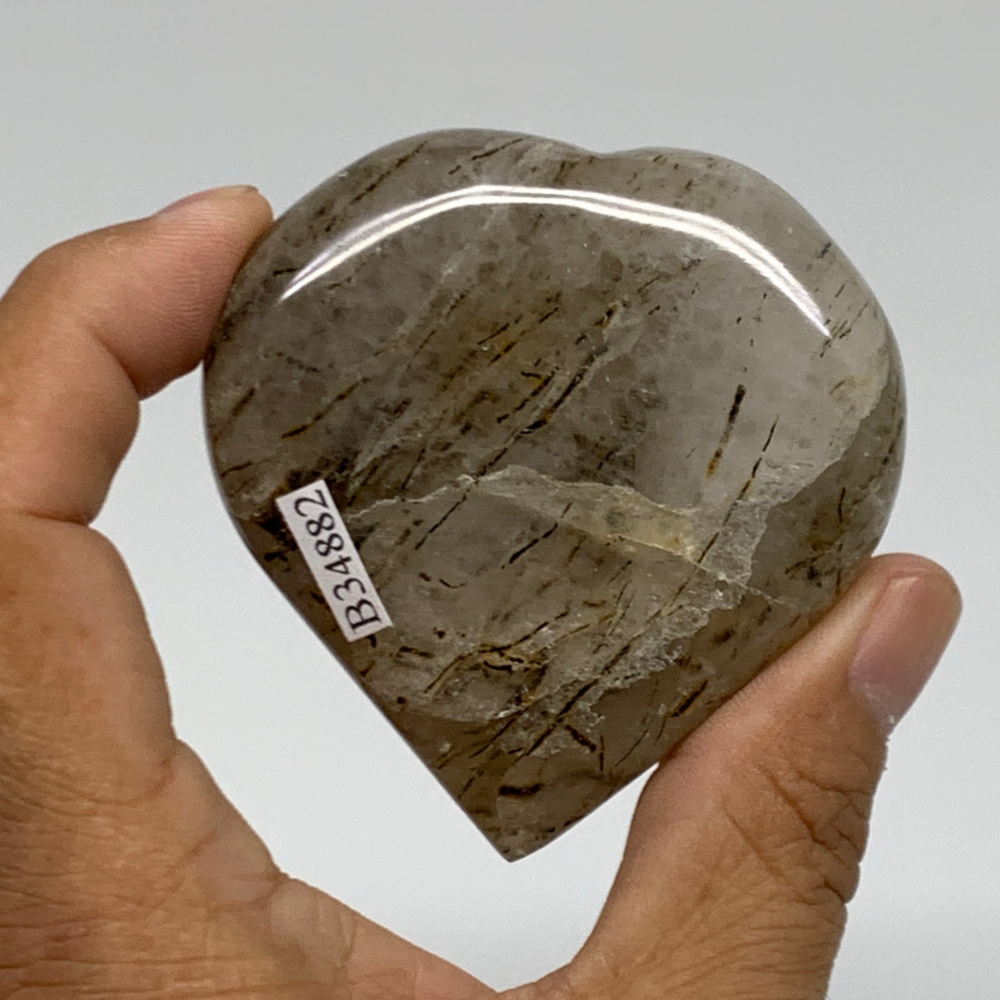 1.11 lbs, 3.3"x3.9"x1.7", Natural Untreated Smoky Quartz Crystal Heart Reiki, B30988