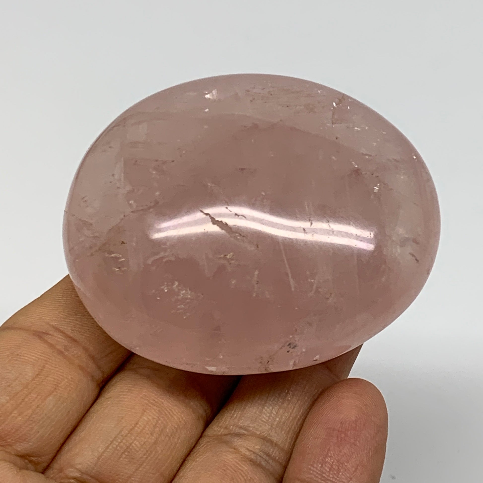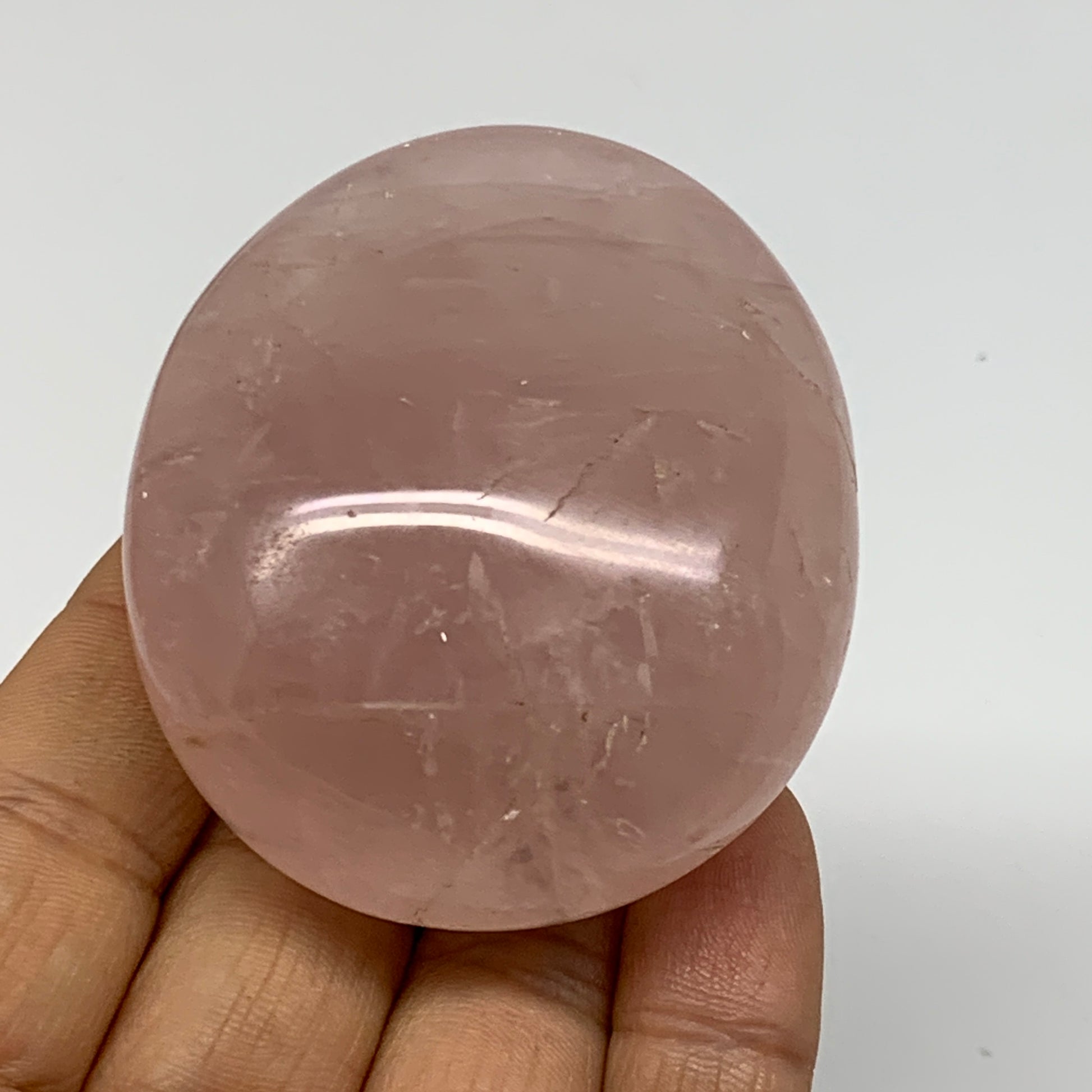 132.6g , 2.4"x2"x1.2", Natural Pink Rose Quartz Palm-stone Crystal, B37249
