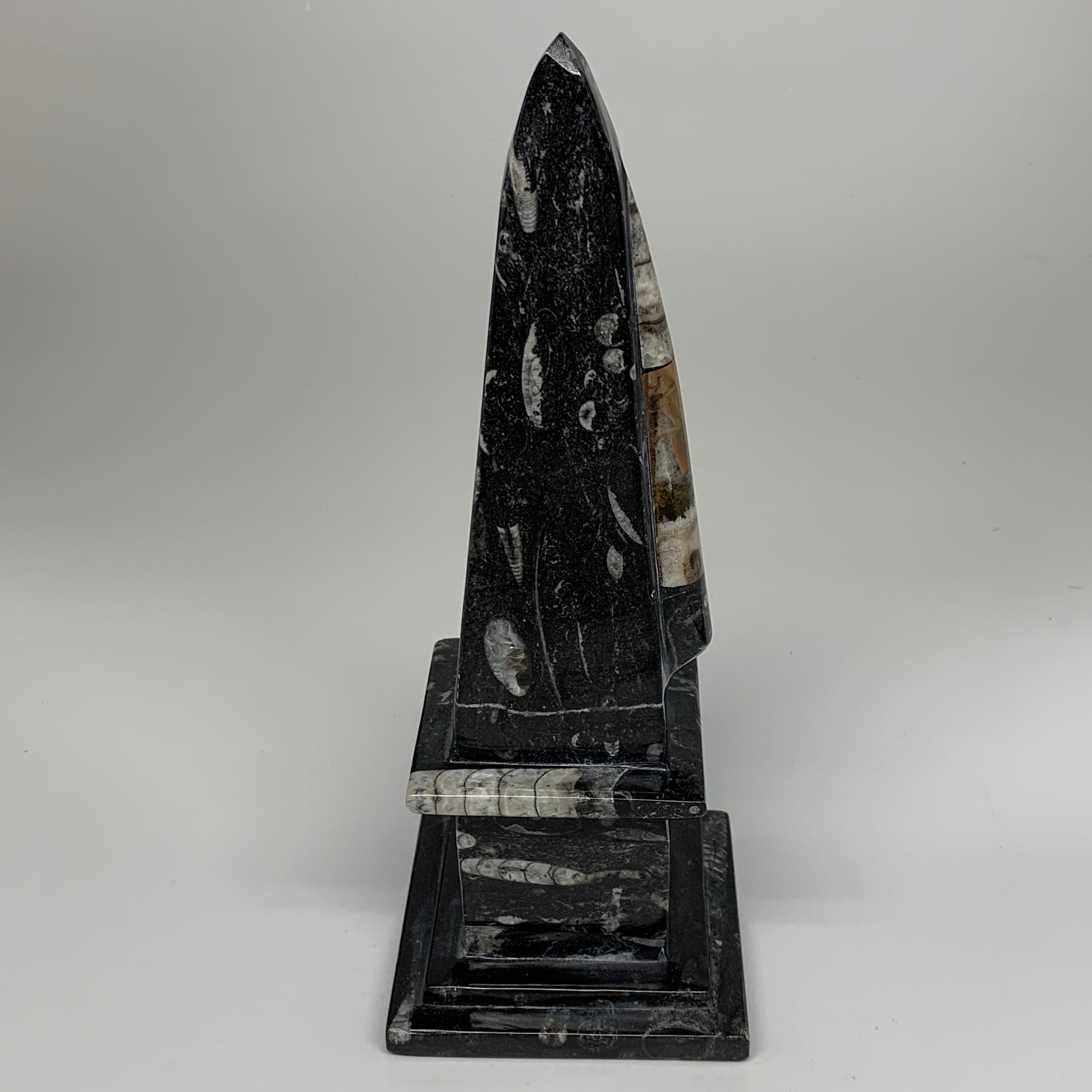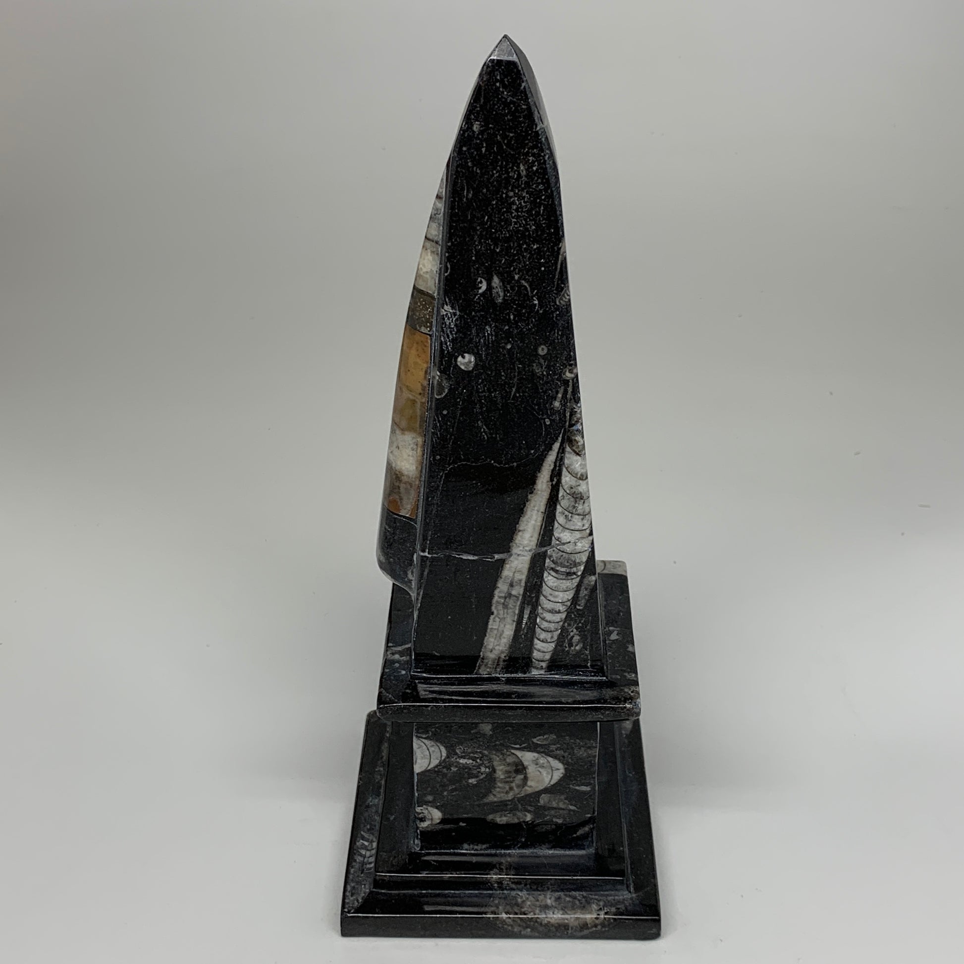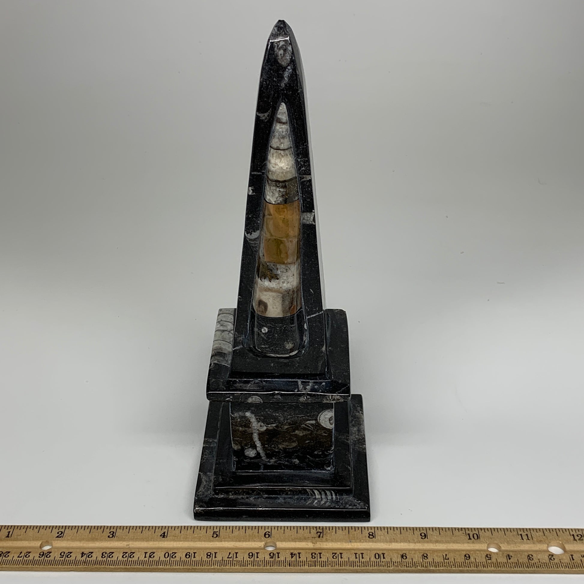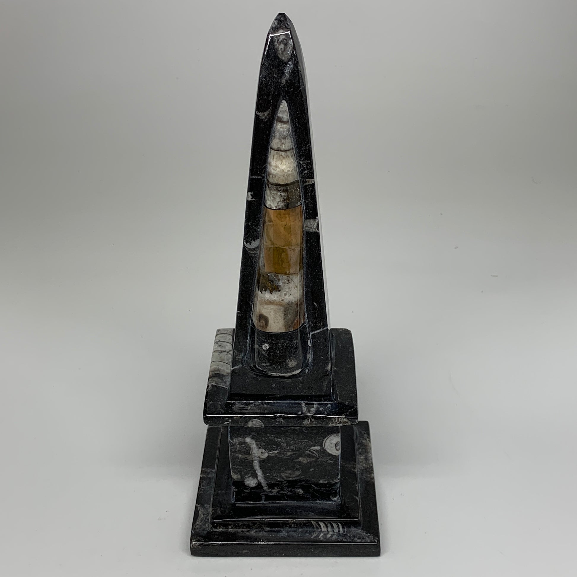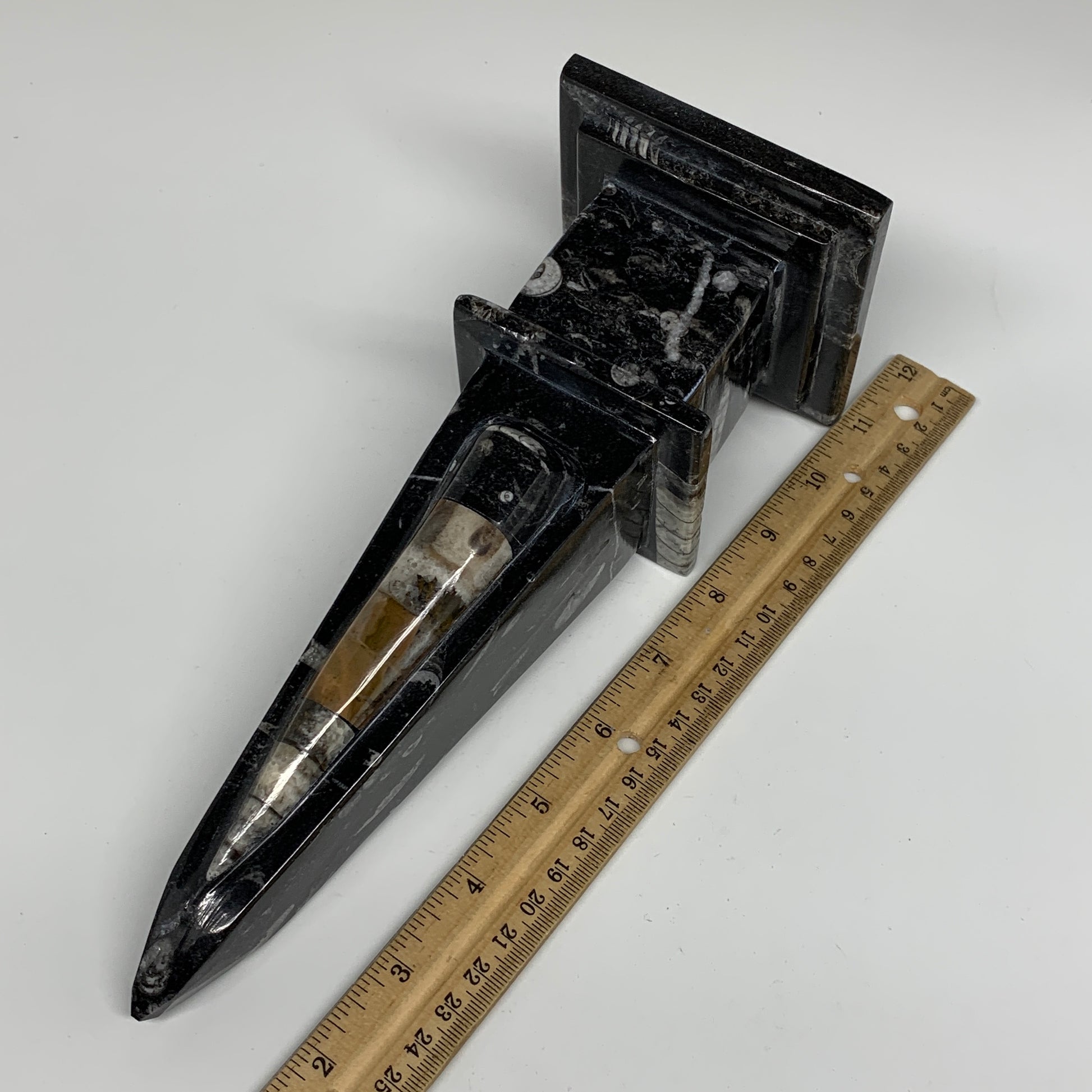 1324g, 9.75" x 3.6" Black Fossils Orthoceras Tower Marble @Morocco, B8704