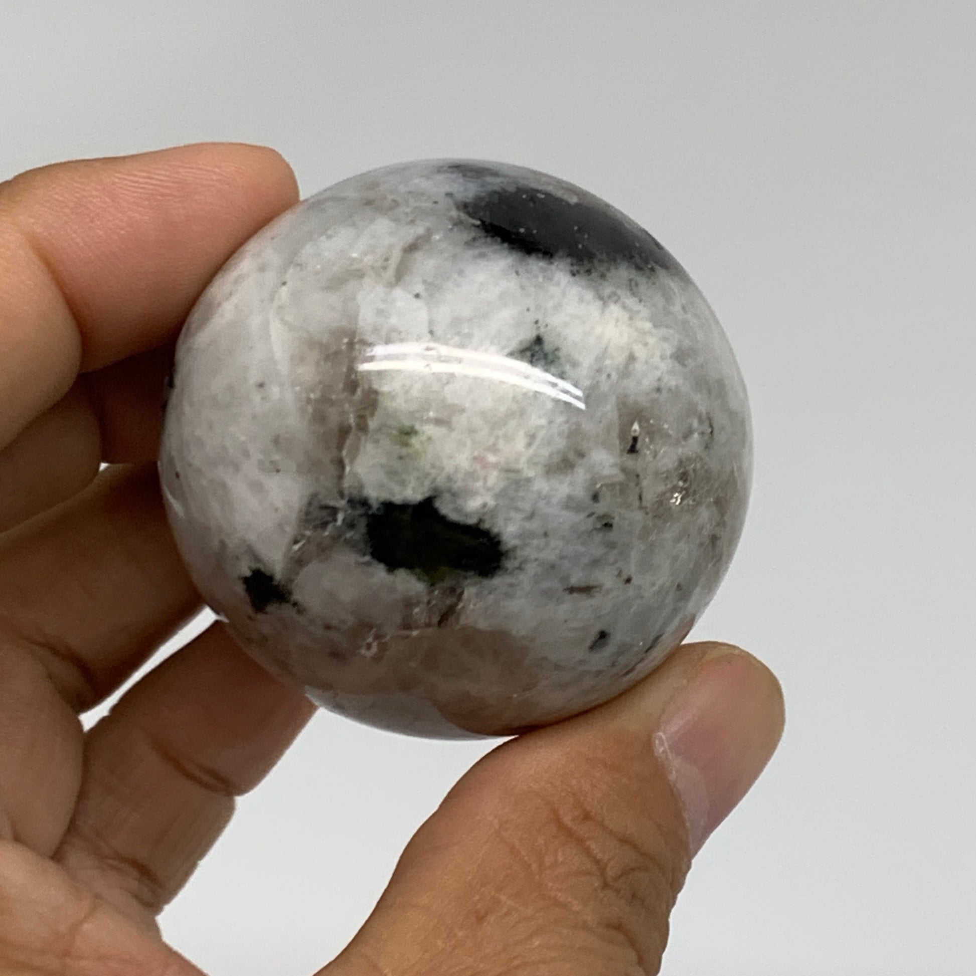 133.3g, 1.8"(44mm), Natural Rainbow Moonstone Sphere Ball Gemstone, B35035