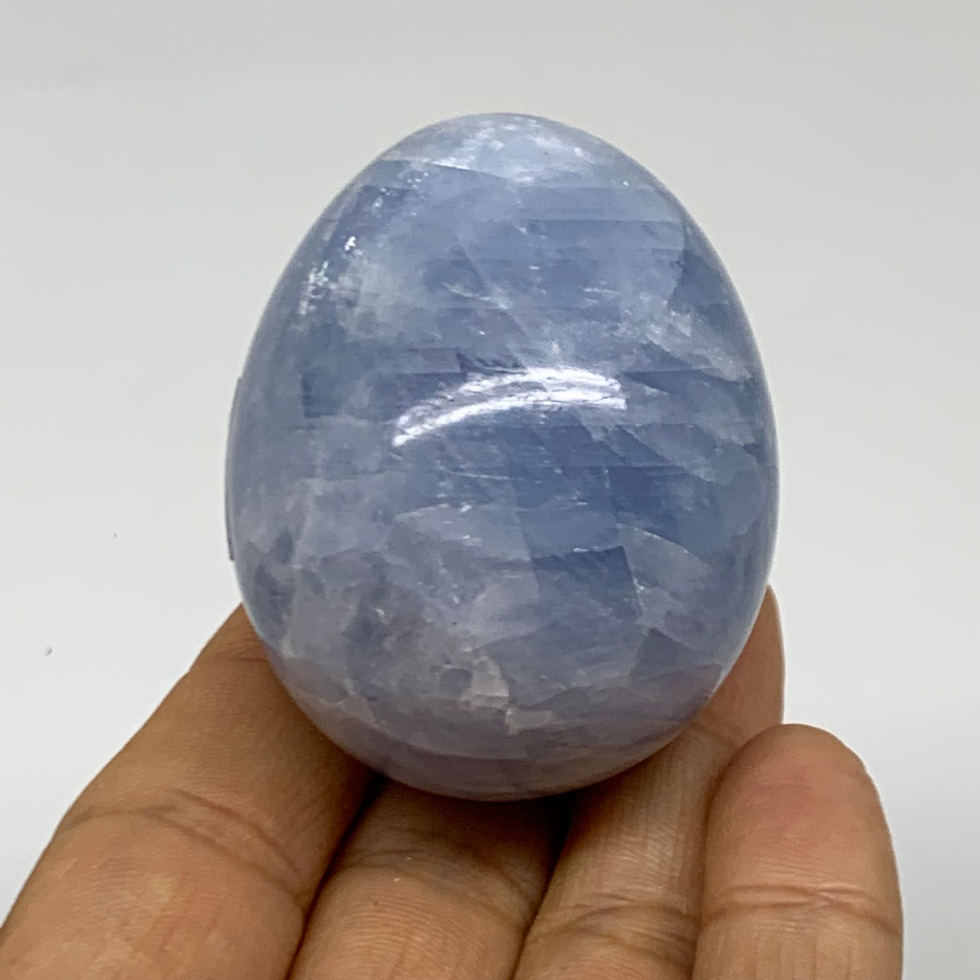 133.6g, 2.1"x1.7", Natural Blue Calcite Egg Polished Crystal @Madagascar, B38396