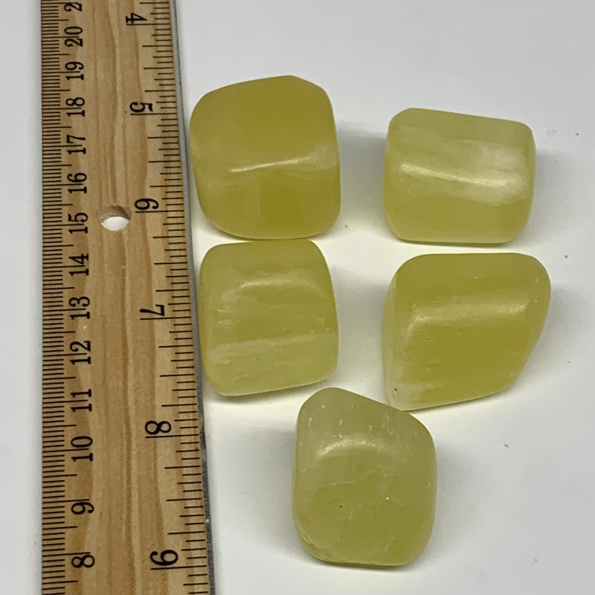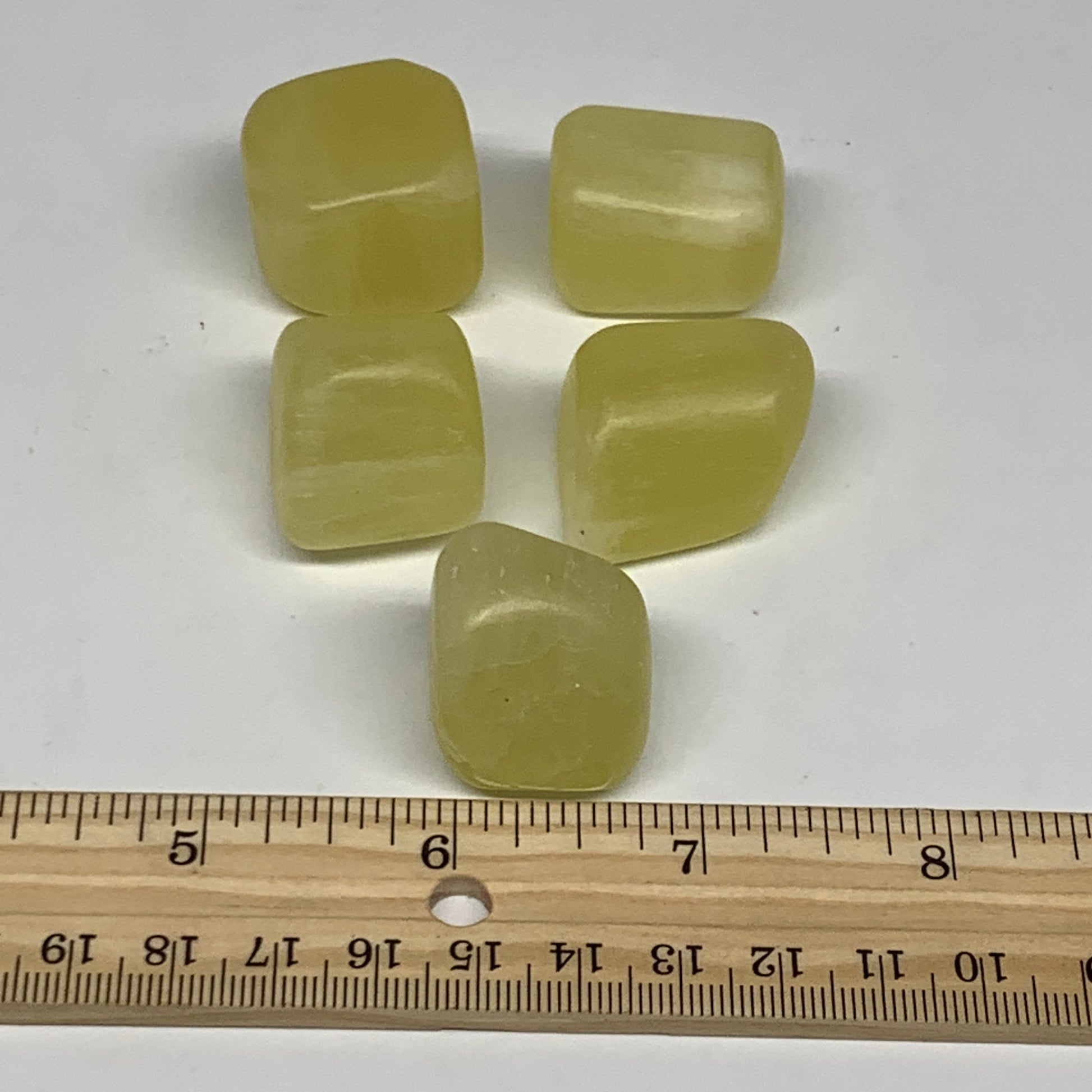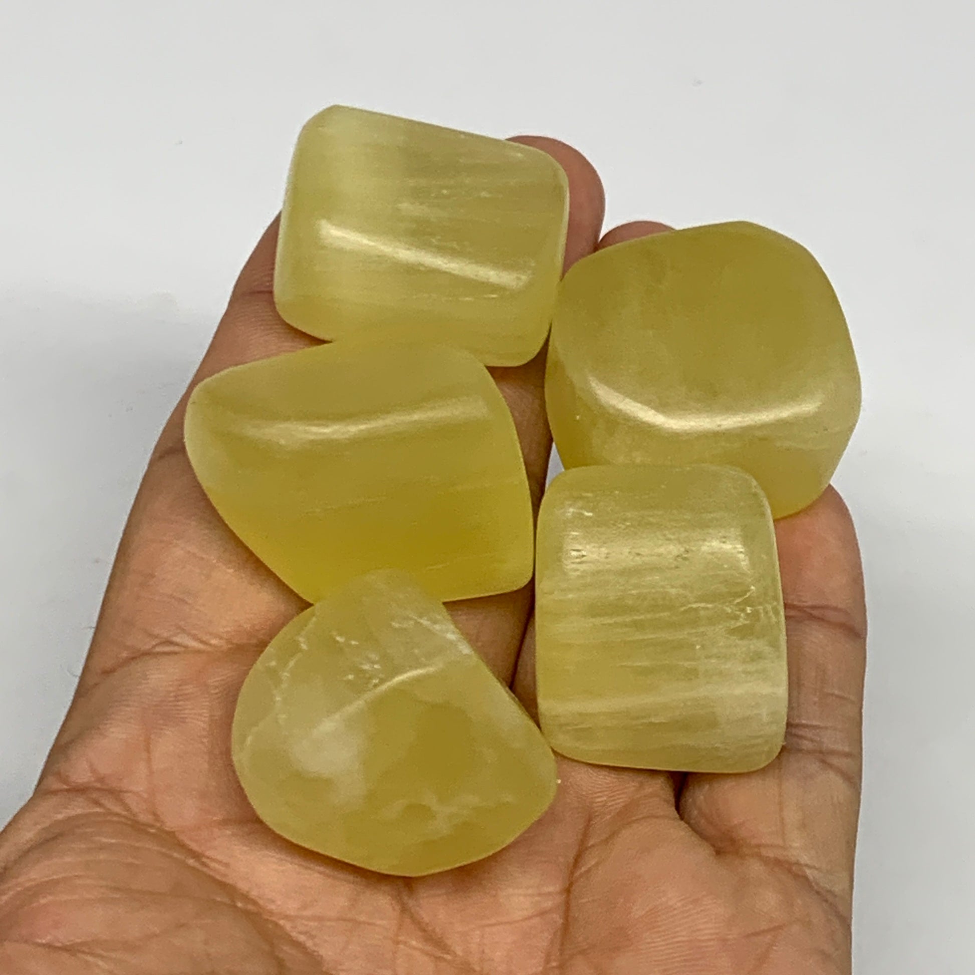 133.7g, 0.9"-1.1", 5pcs, Natural Lemon Calcite Tumbled Stones @Afghanistan, B26798