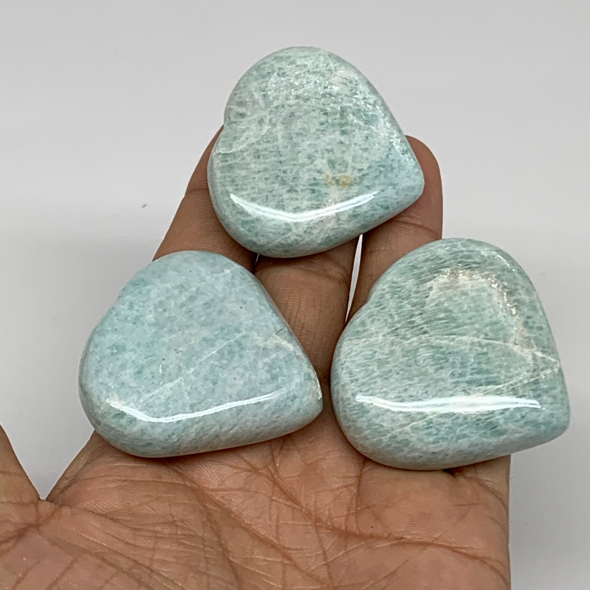 133g, 1.6"-1.7", 3pcs, Natural Amazonite Heart Polished Gemstone, B34728