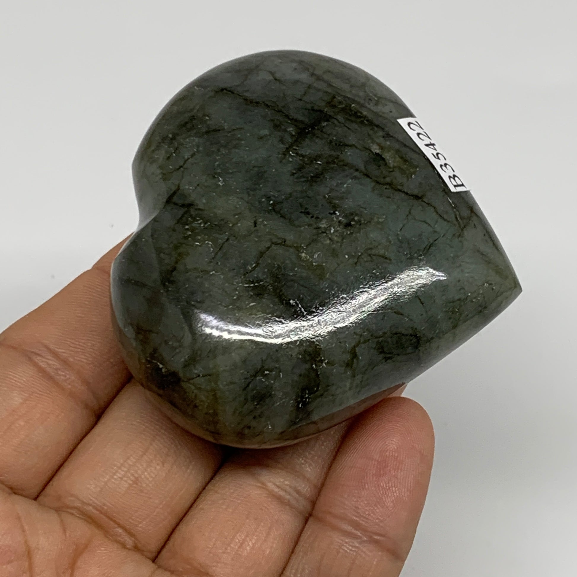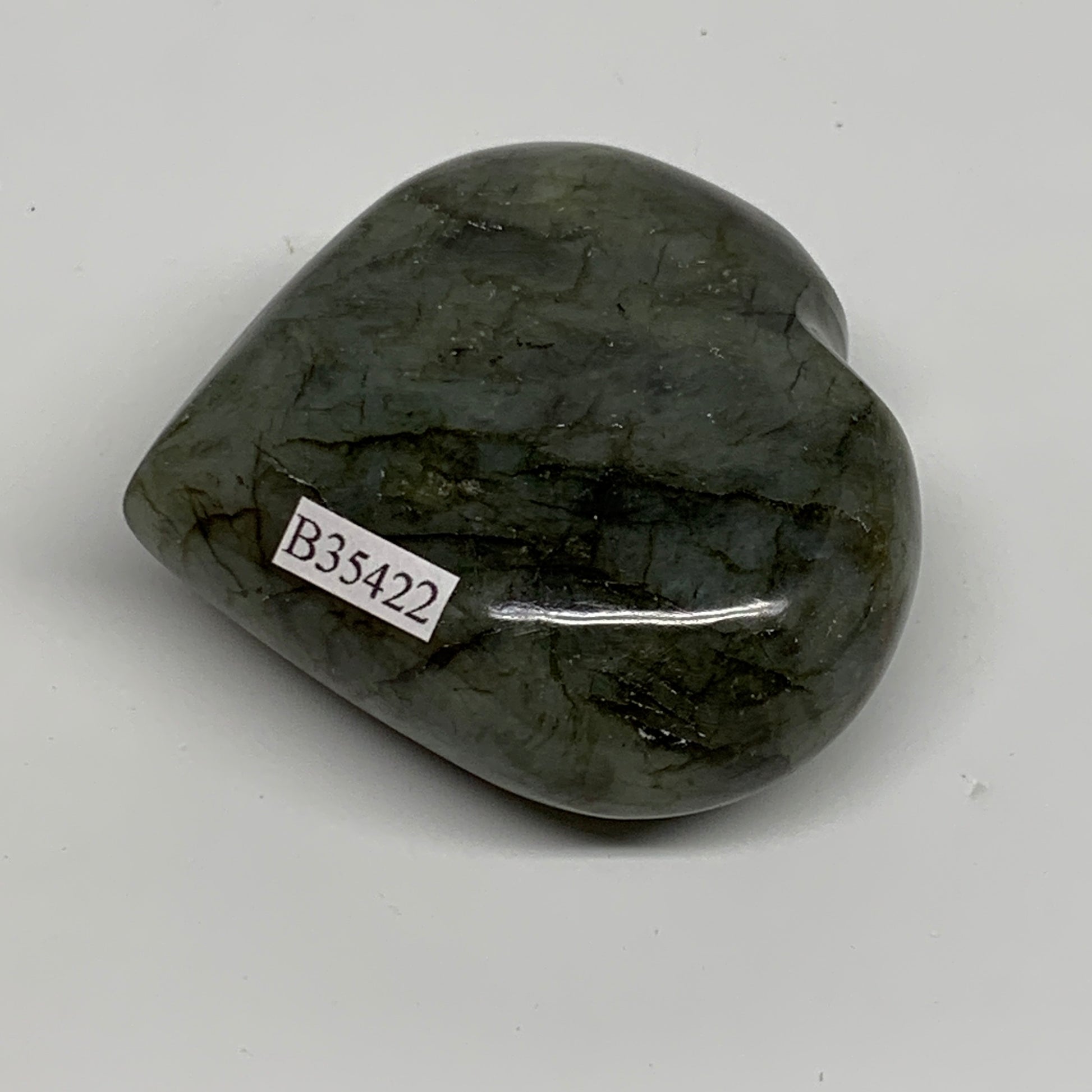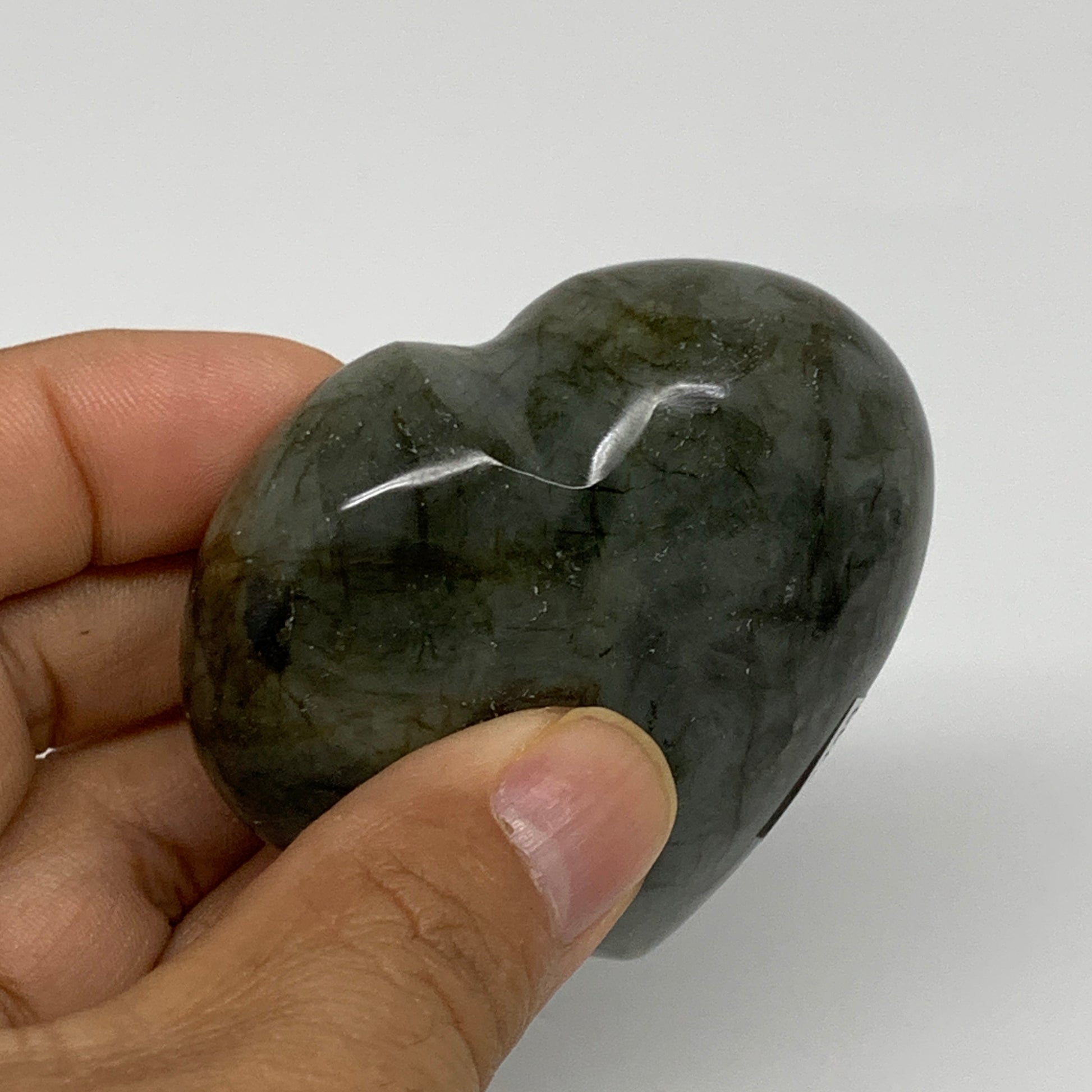 133g, 2.3"x2.4"x1", Natural Labradorite Heart Polished Crystal, B35422