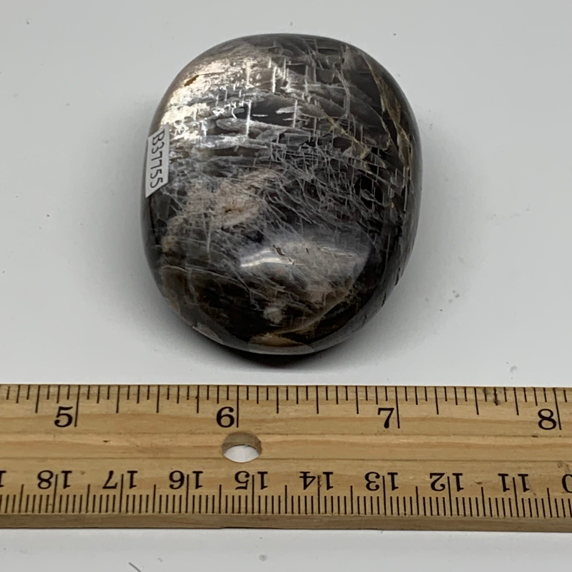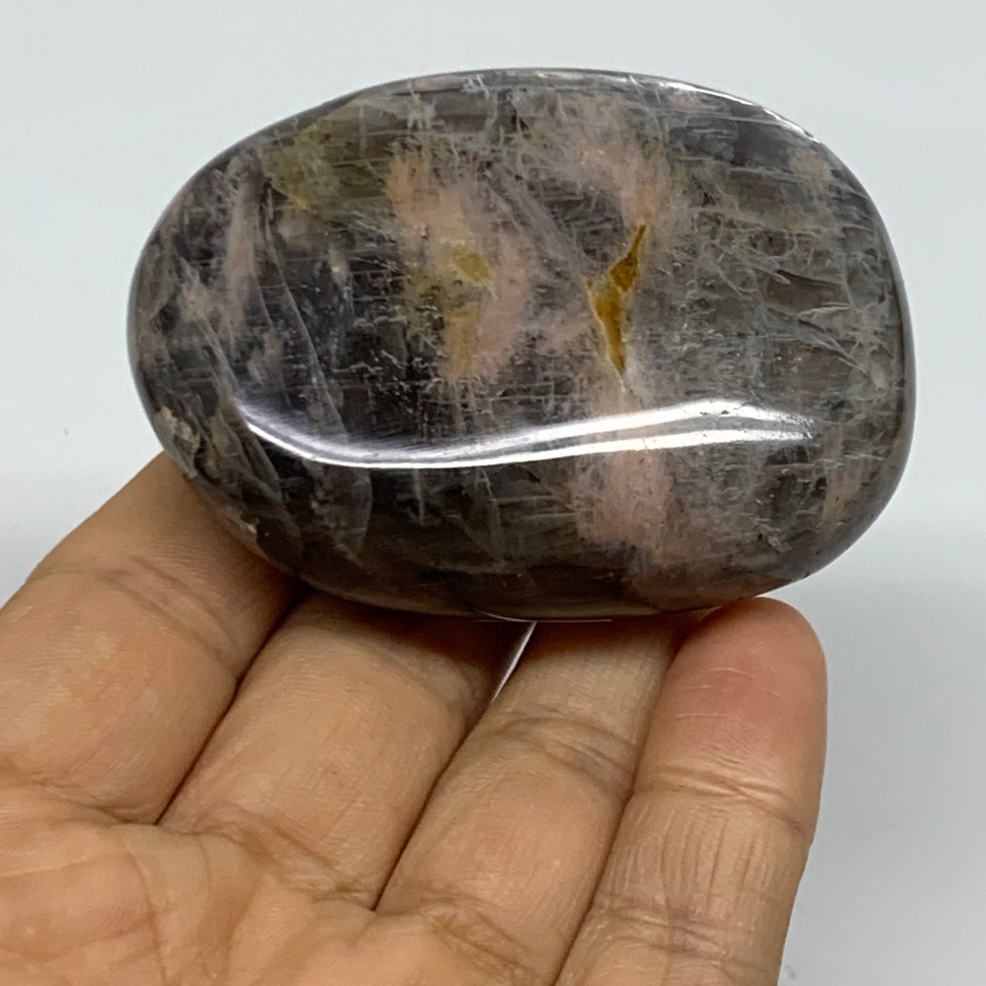 133g, 2.6"x1.9"x1.1", Black Moonstone Crystal Palm-Stone Polished, B37755