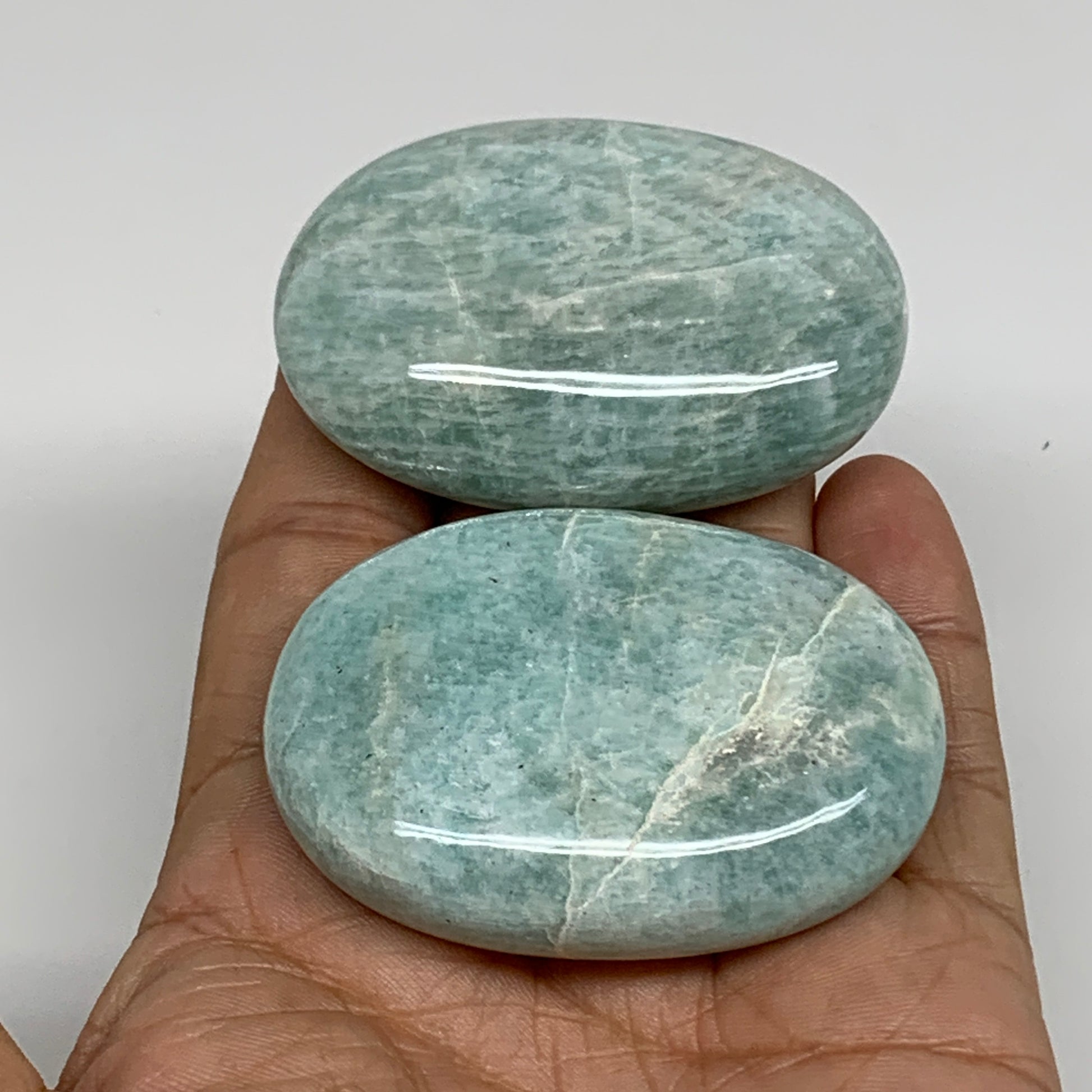 134.2g, 2.3"-2.3", 2pcs, Natural Amazonite Palm-Stone Tumbled Polished, B34716
