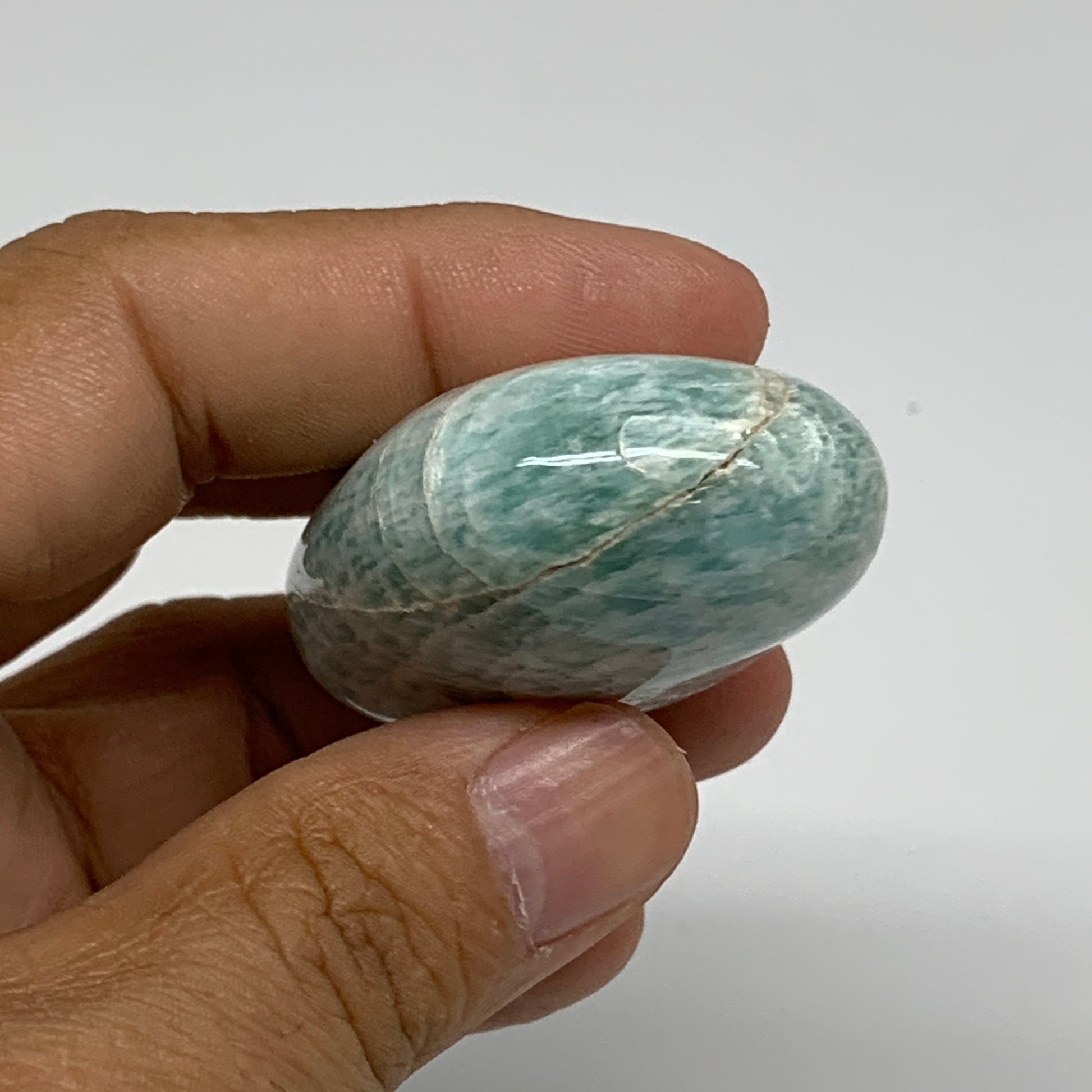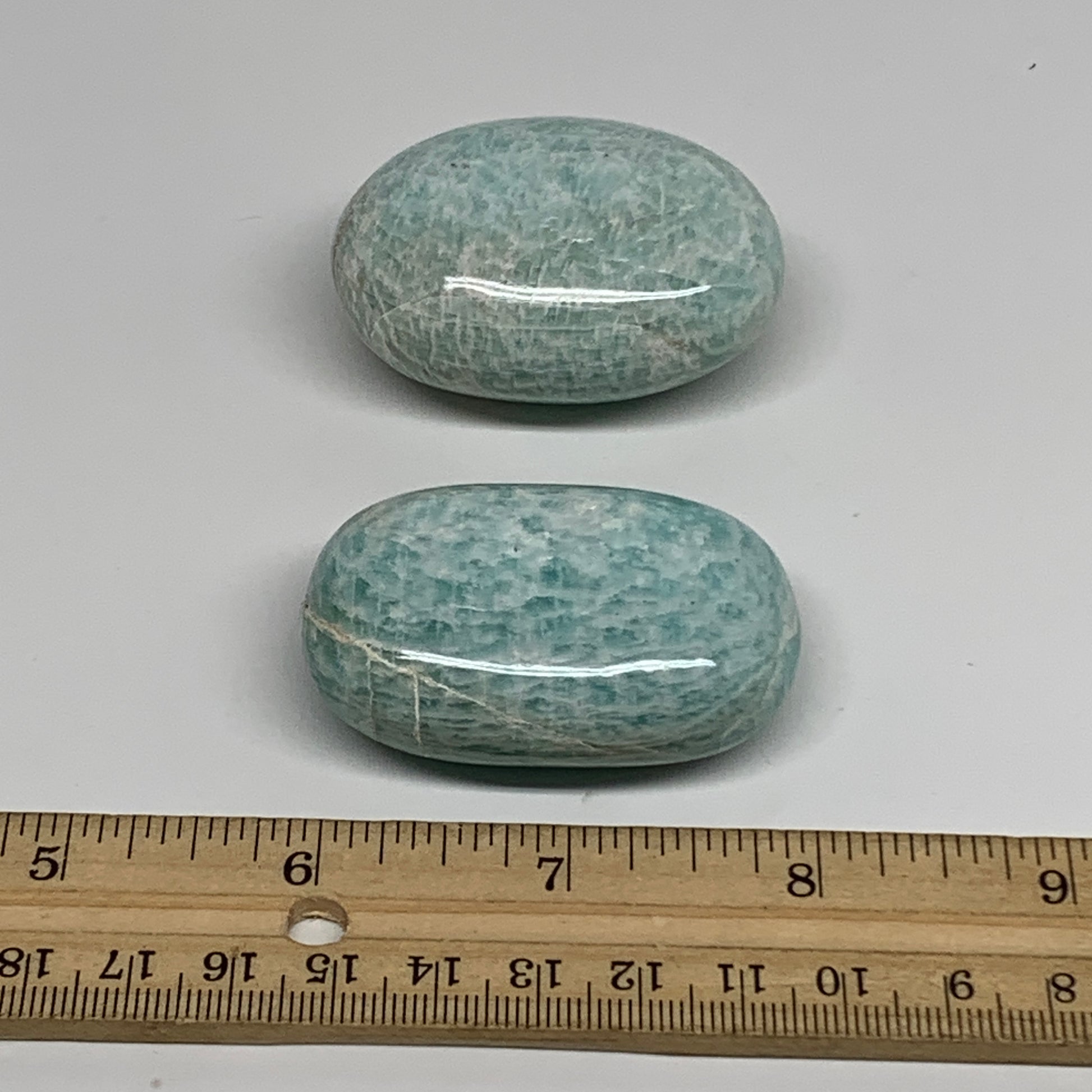 134.6g, 2.1"-2.1", 2pcs, Natural Amazonite Palm-Stone Tumbled Polished, B34720