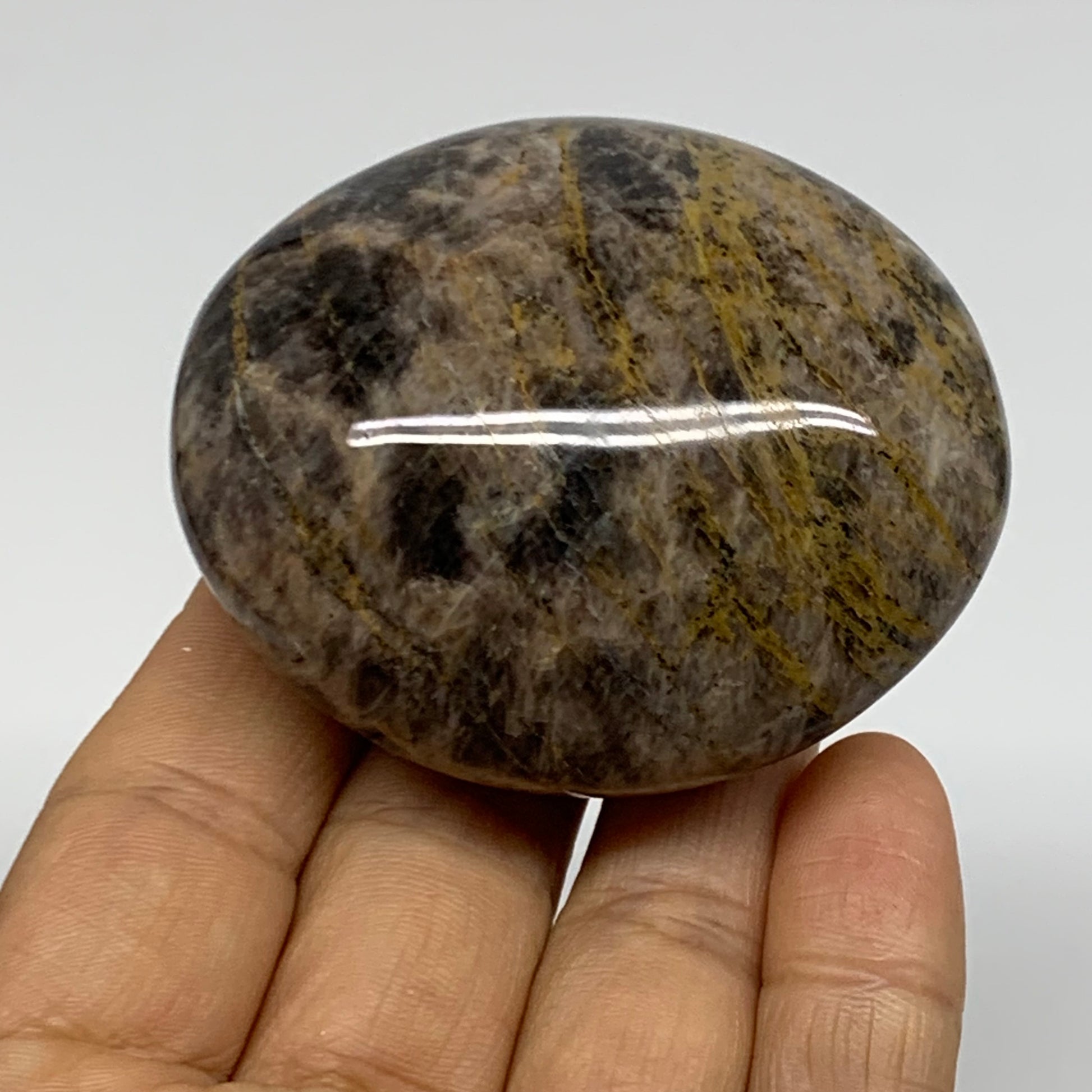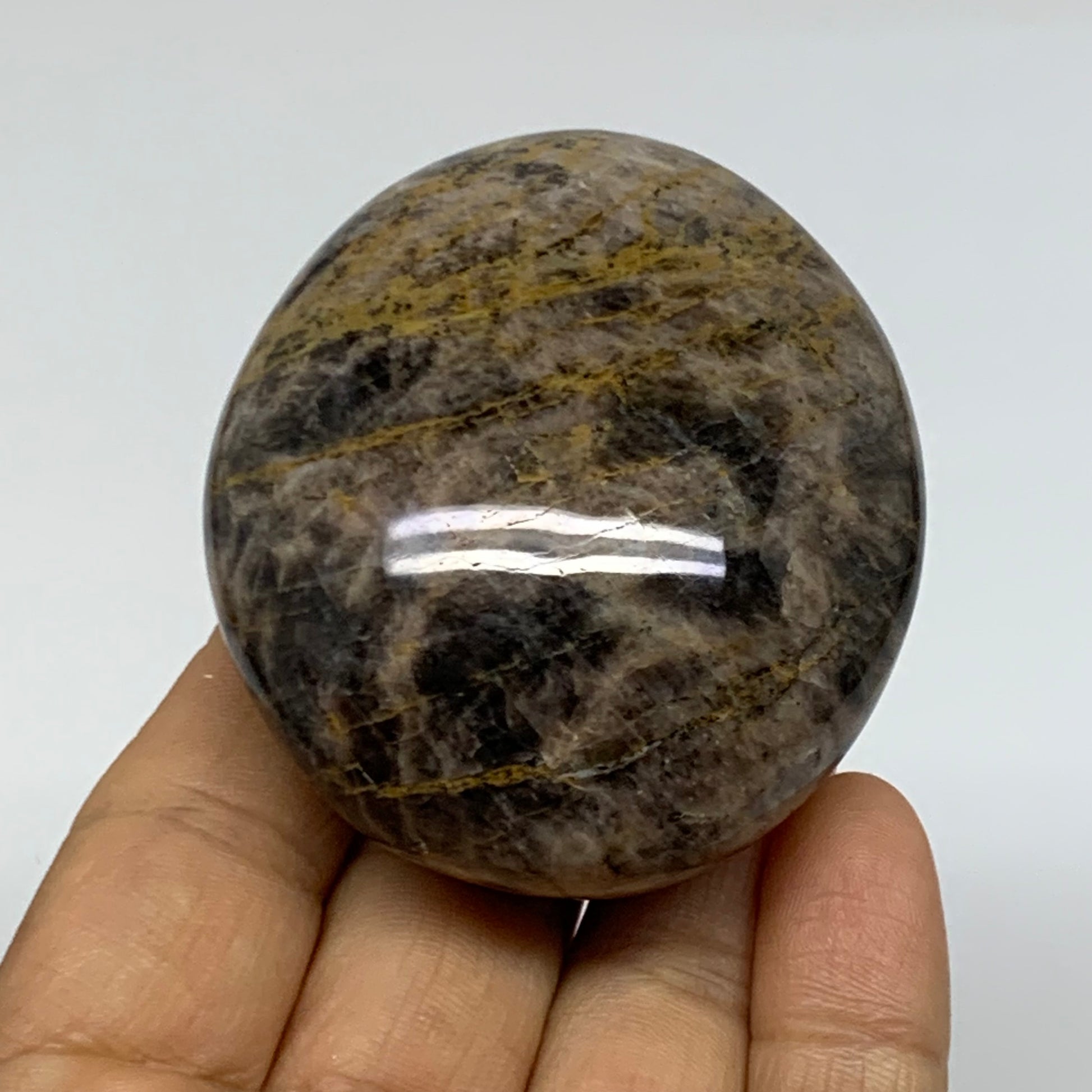 135.2g, 2.4"x2.1"x1.2", Black Moonstone Crystal Palm-Stone Polished, B37753