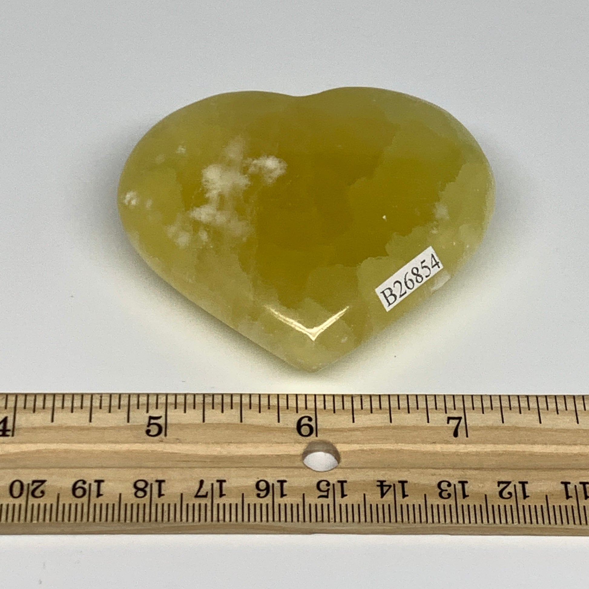 135.2g, 2.4"x2.7"x0.9" Lemon Calcite Heart Crystal Gemstones @Afghanistan, B26854