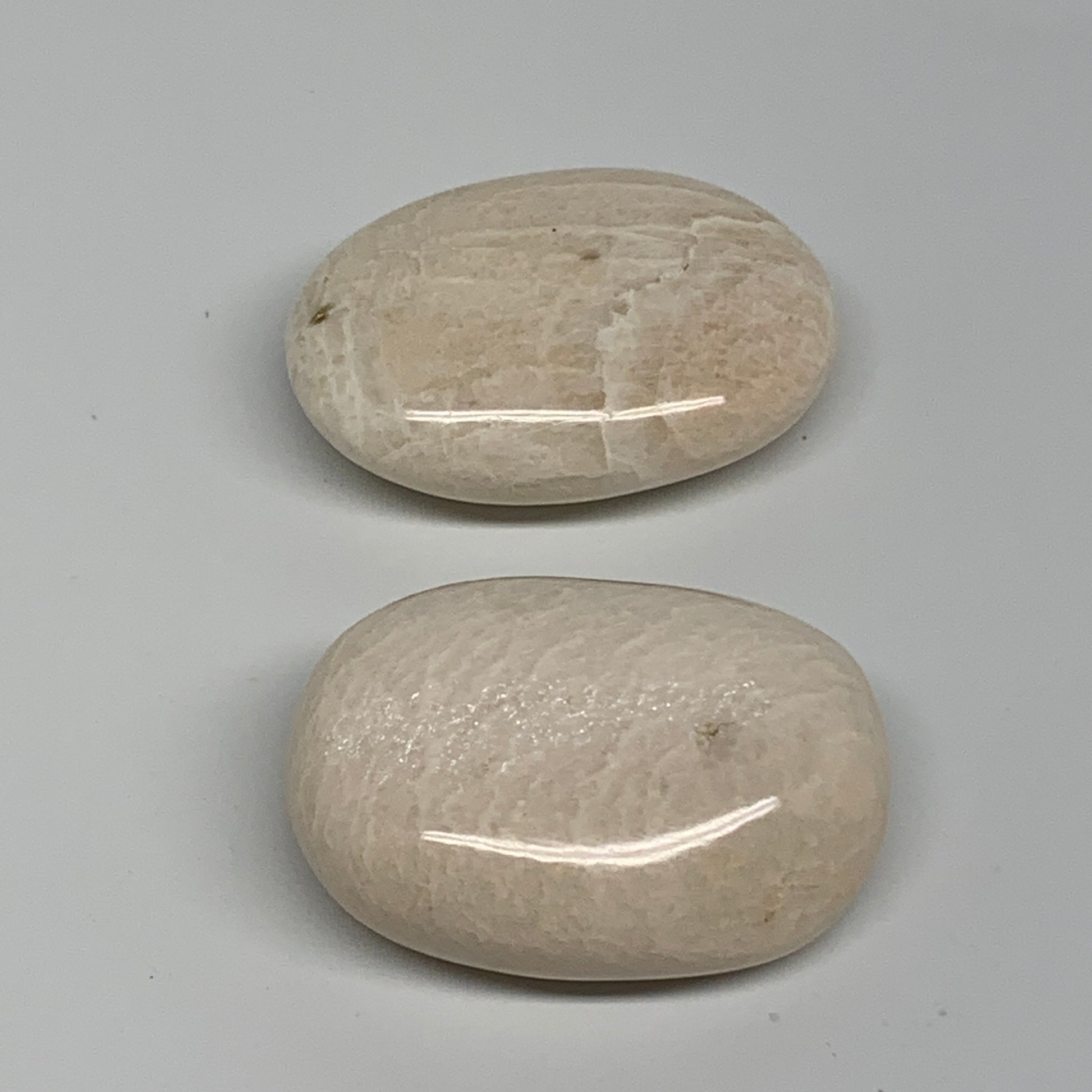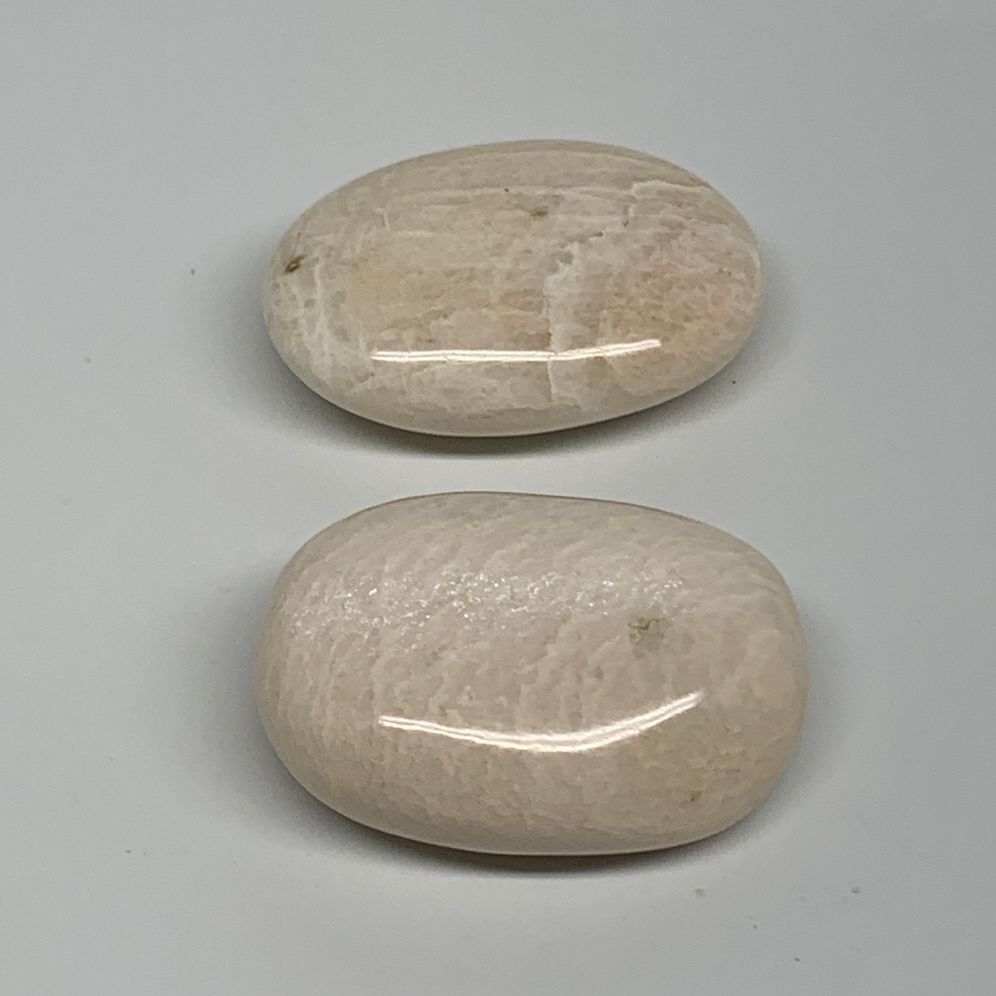 135.5g, 2.1"-2.2", 2pcs, Peach Moonstone Palm-Stone Polished Gemstone, B34777