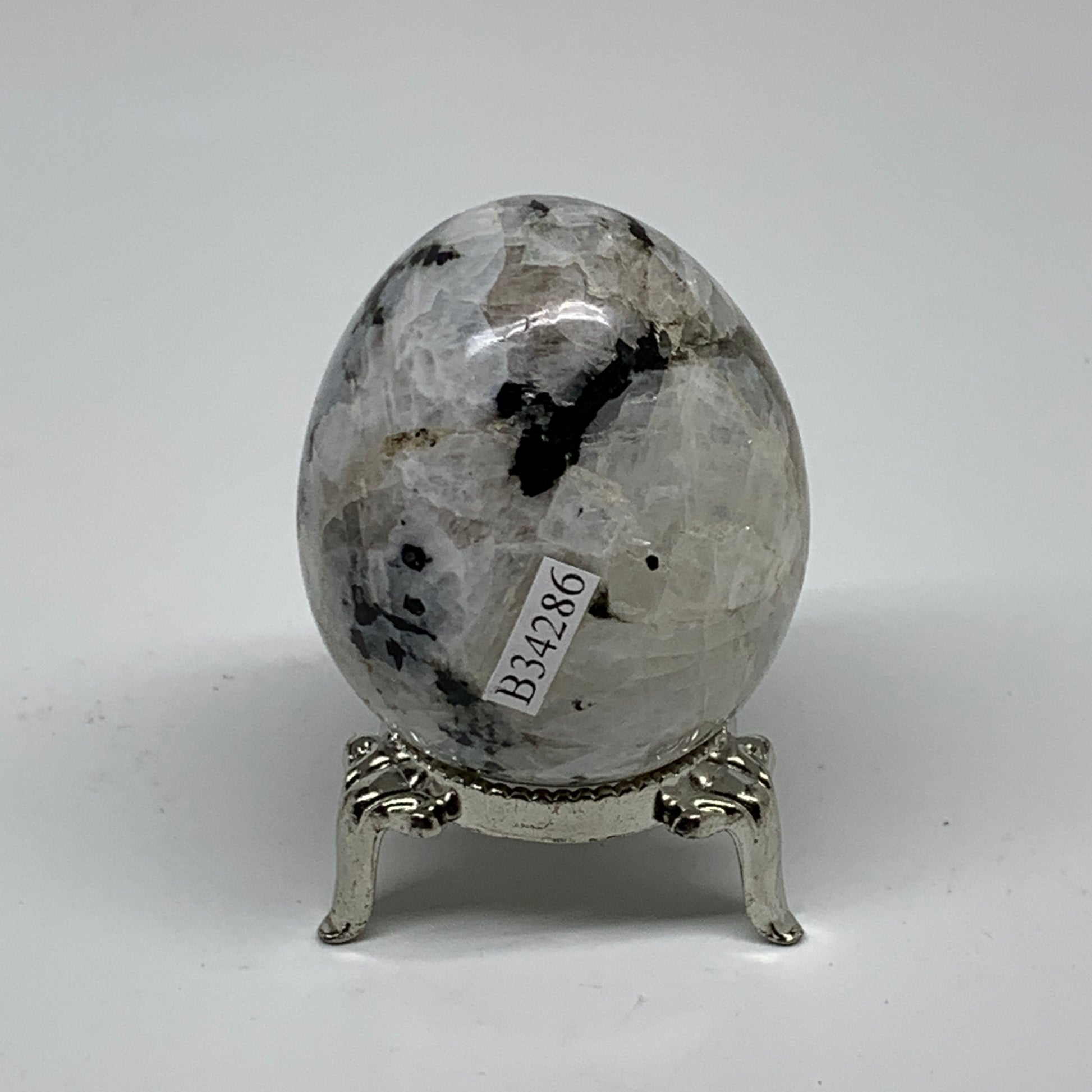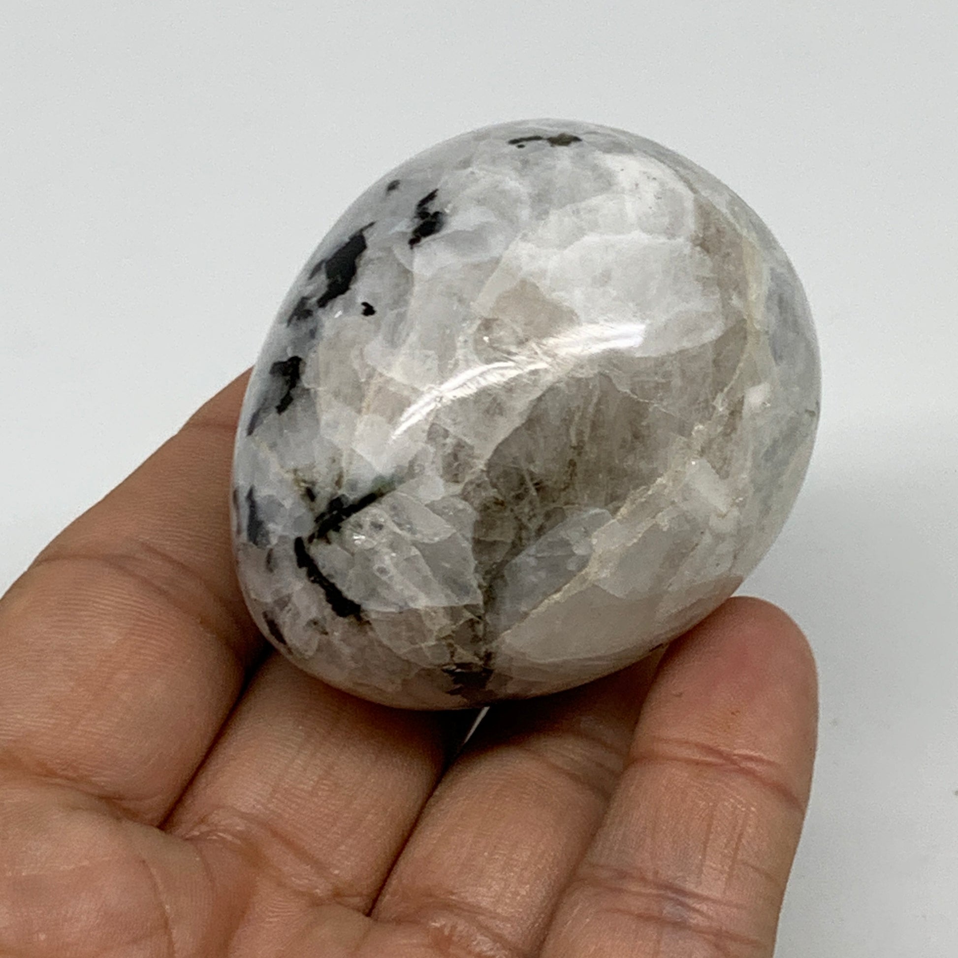 135.5g, 2.1"x1.7", Natural Gemstone White Rainbow Moonstone Egg, B34286