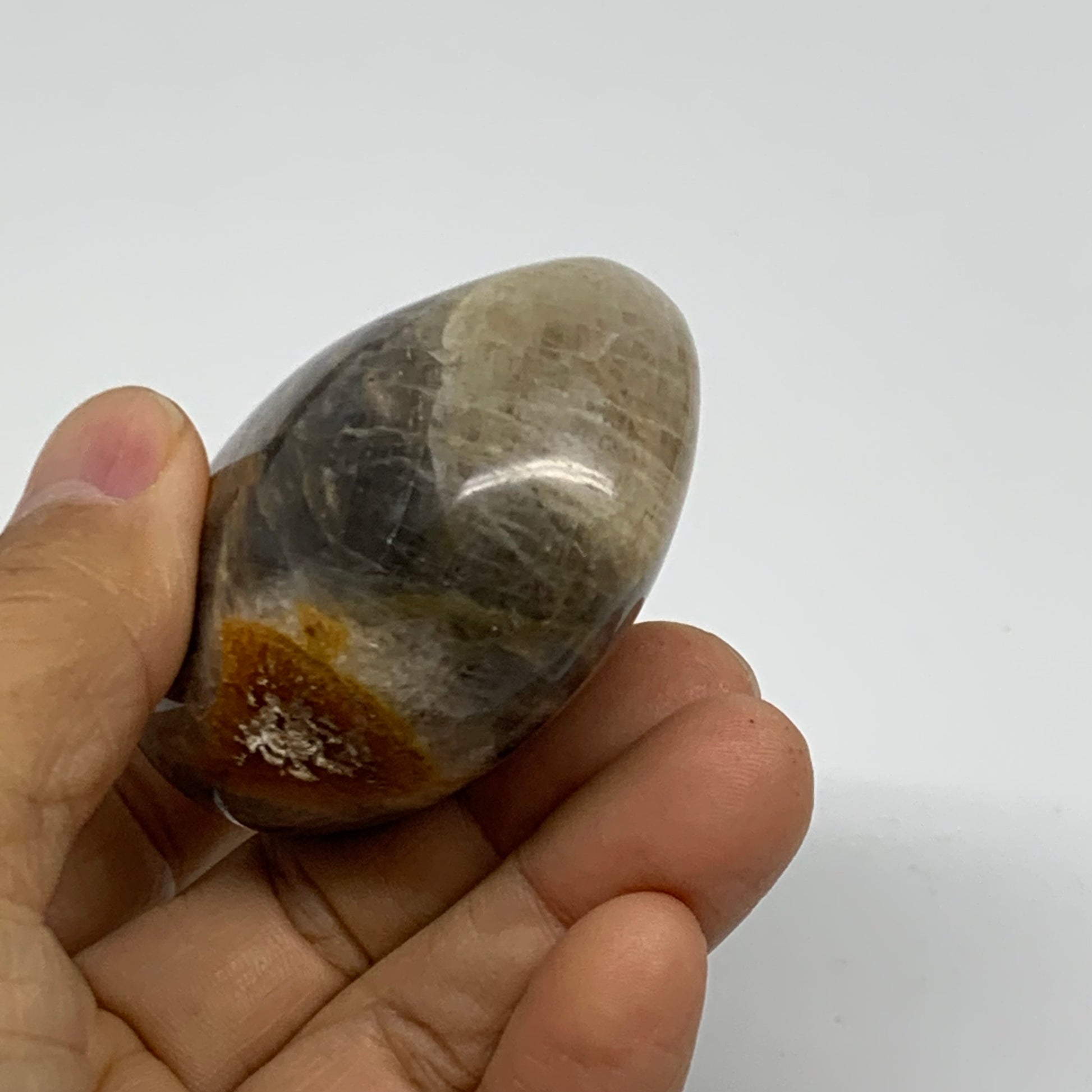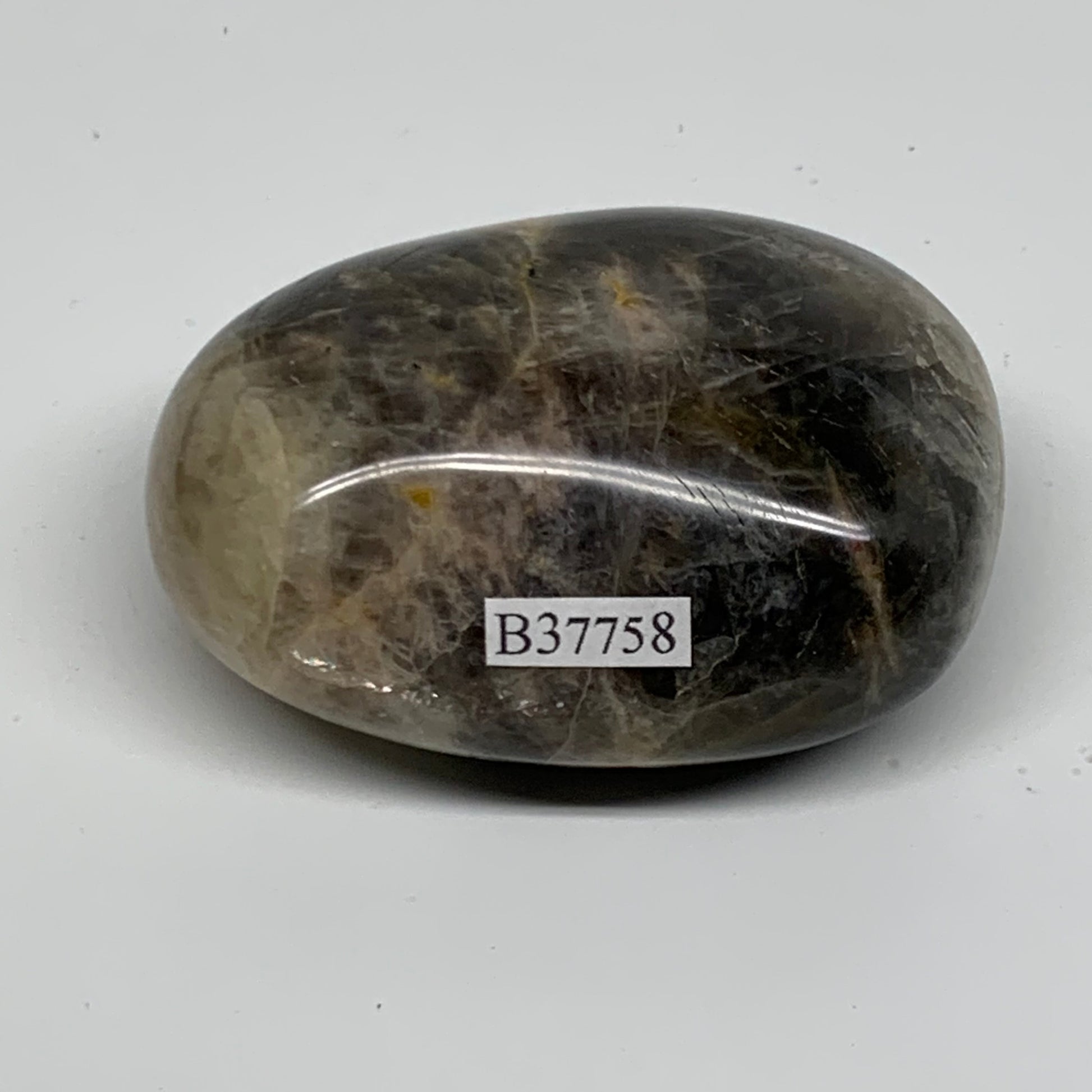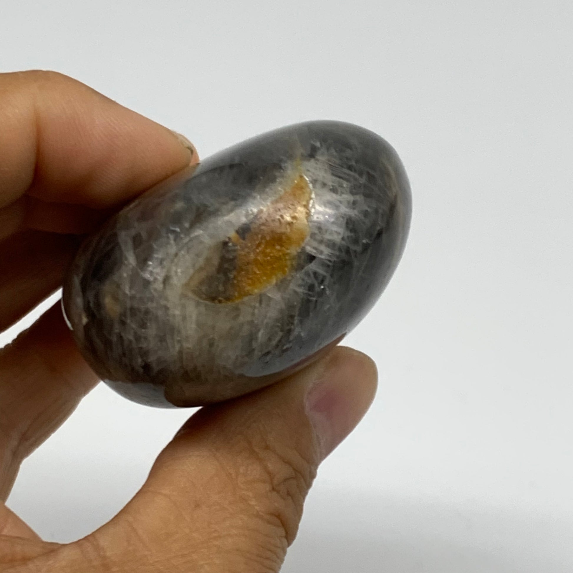135.9g, 2.6"x1.9"x1.2", Black Moonstone Crystal Palm-Stone Polished, B37758
