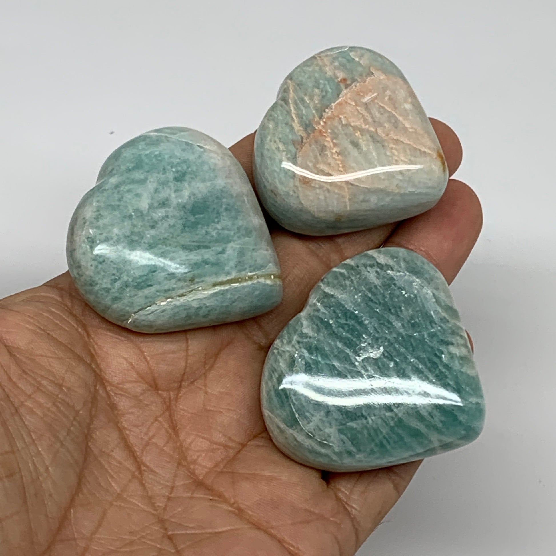 136g, 1.5"-1.6", 3pcs, Natural Amazonite Heart Polished Gemstone, B34726