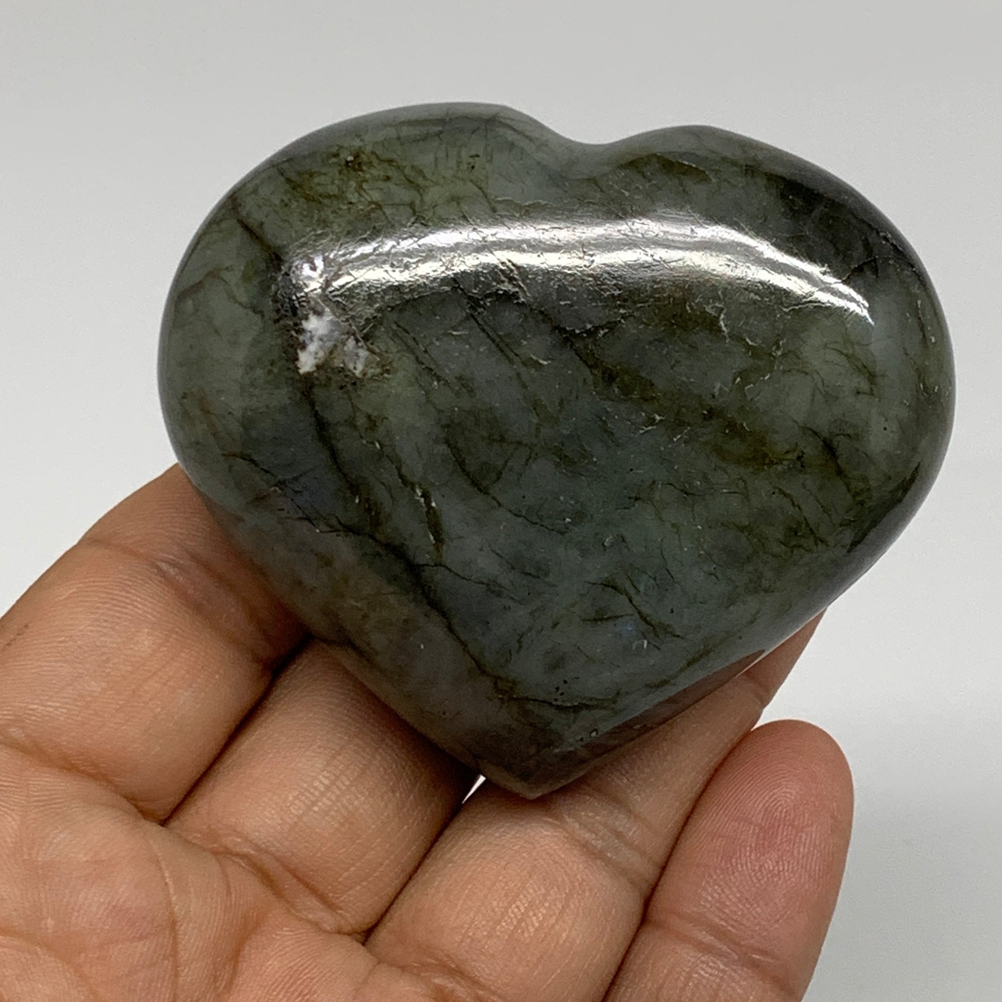 137g, 2.3"x2.5"x1", Natural Labradorite Heart Polished Crystal, B35426