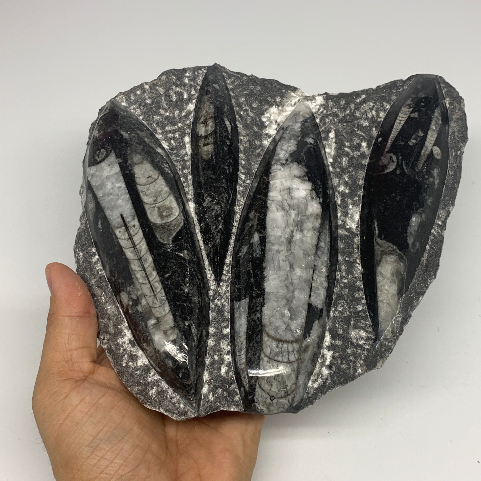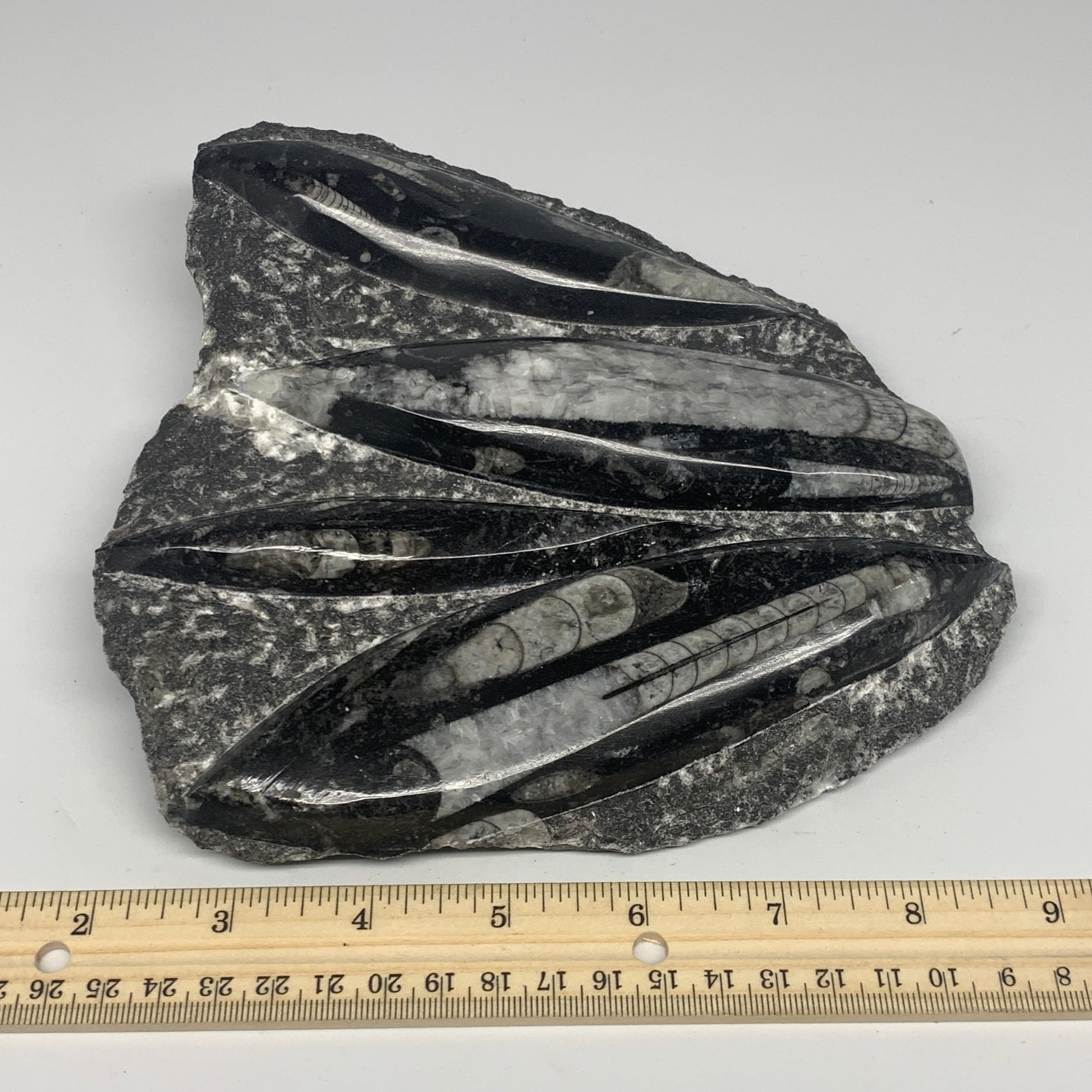 1380g,7,25"x7.25"x1.3" Fossils Orthoceras Plate Plaque SQUID, Home Decor, B23480