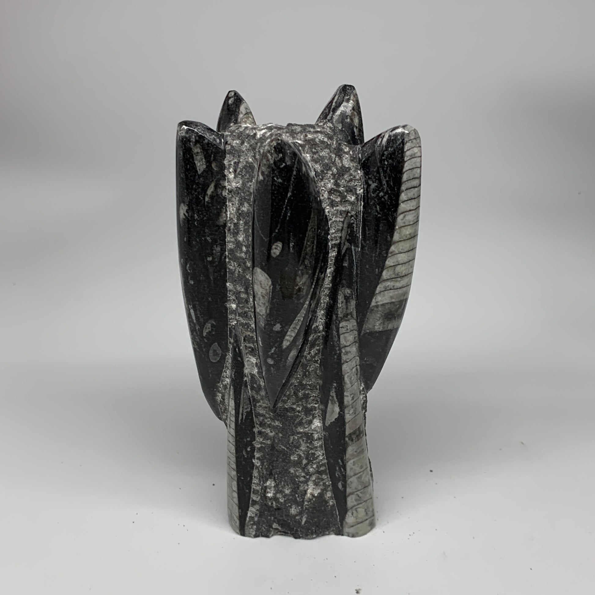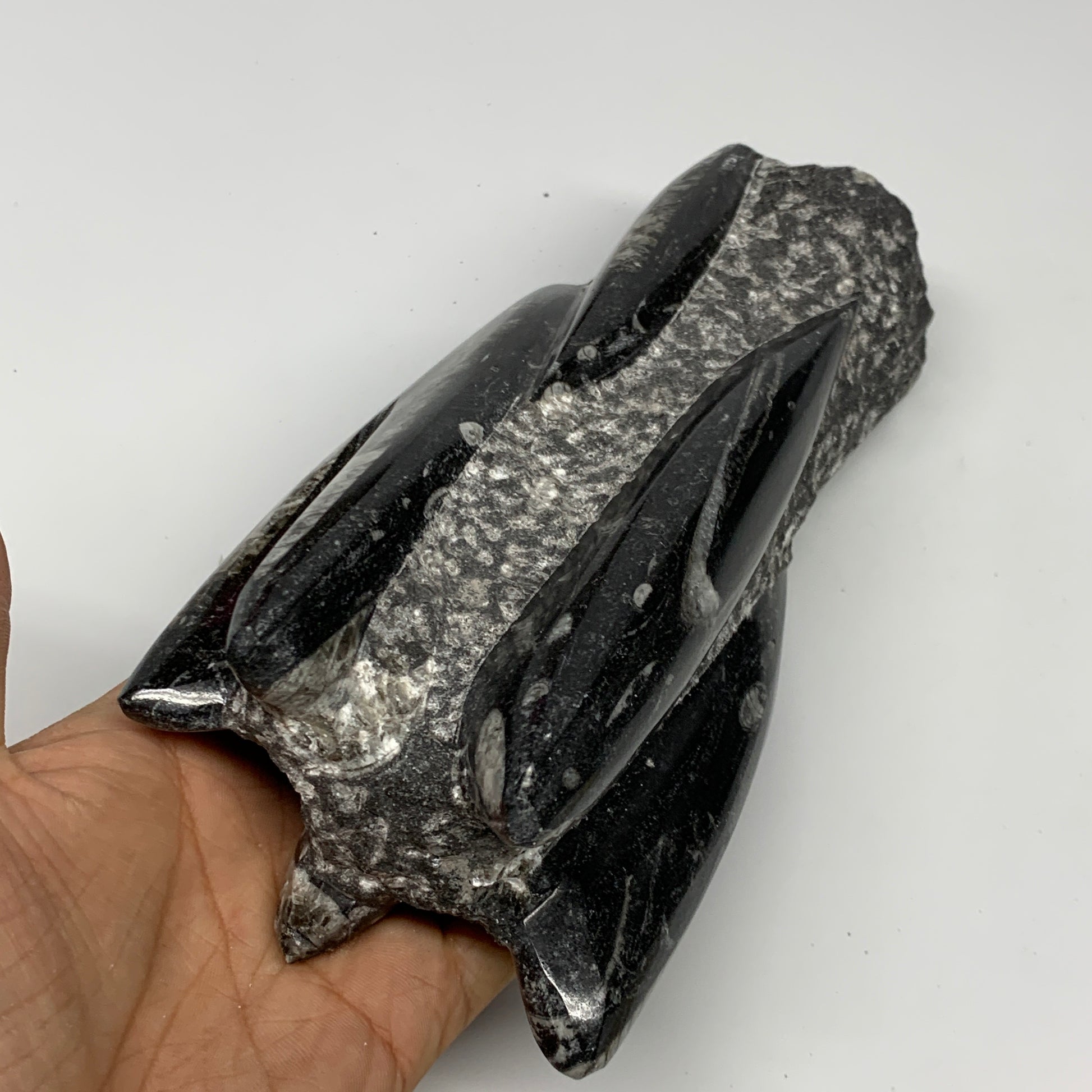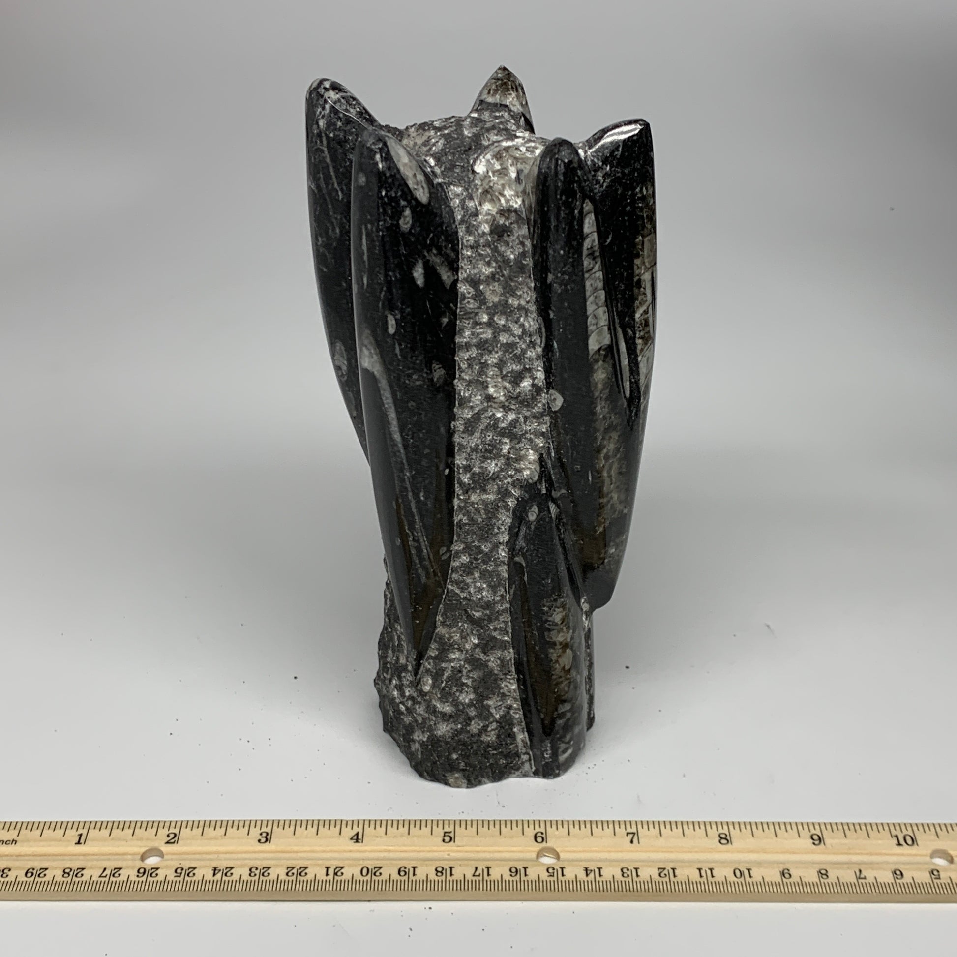 1385g, 7.5"x3.7"x2.8" Black Fossils Orthoceras Sculpture Tower @Morocco, B23442