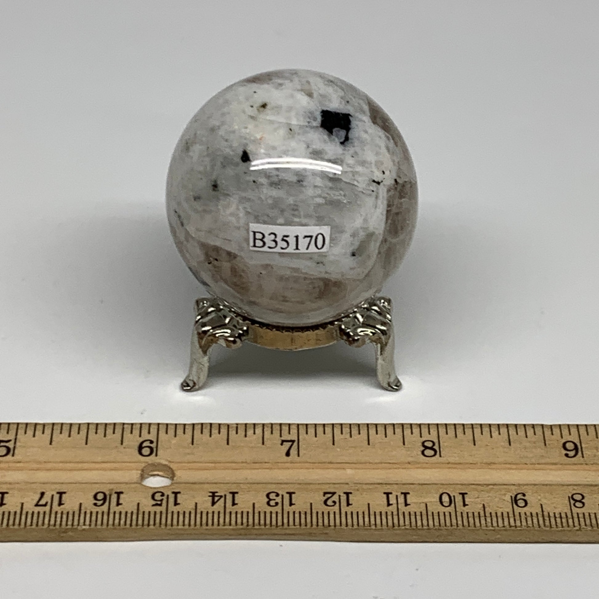 139.9g, 1.8"(46mm), Natural Rainbow Moonstone Sphere Ball Gemstone, B35170
