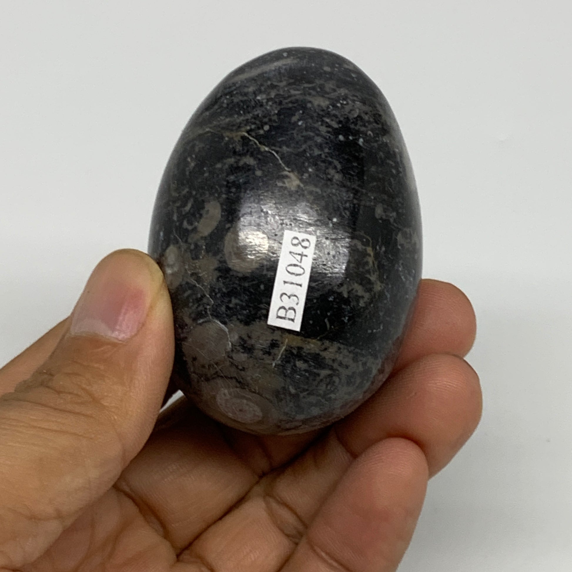 141.3g, 2.3"x1.6", Natural Fossil Orthoceras Stone Egg from Morocco, B31048
