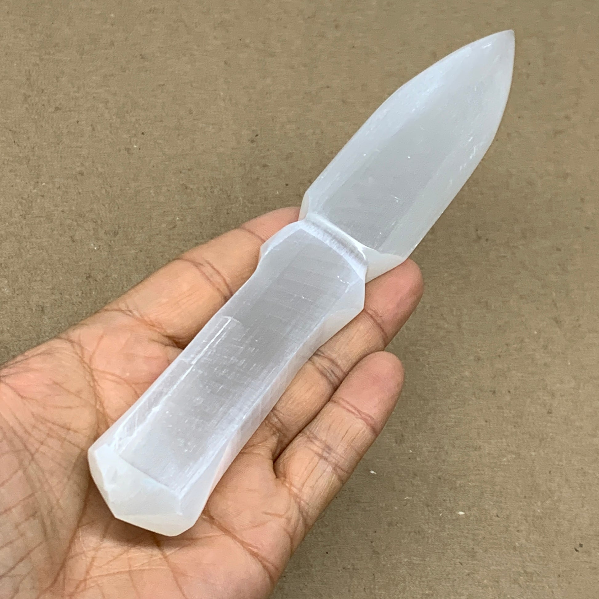 141g, 7.5"x1.2"x0.6", Natural Selenite Crystal Dagger (Satin Spar), B36909