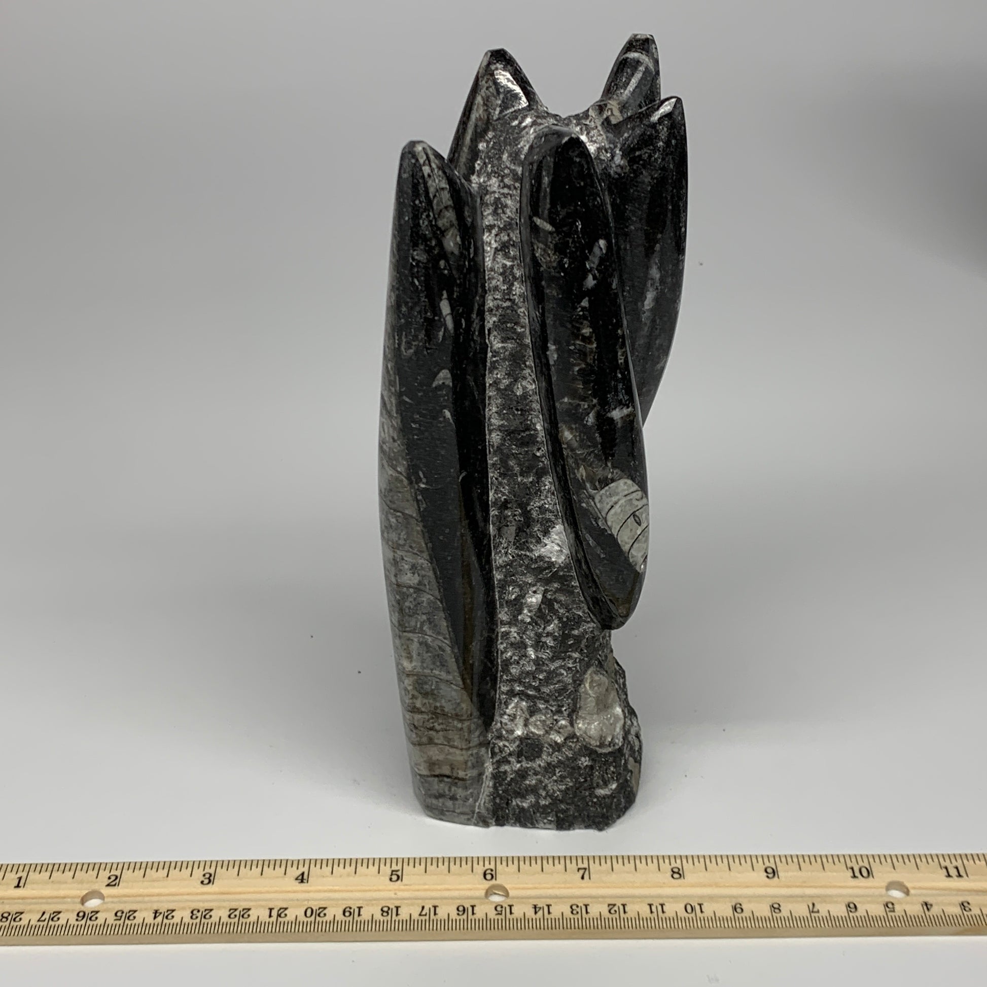1435g, 8.5"x2.9"x2.3" Black Fossils Orthoceras Sculpture Tower @Morocco, B23417