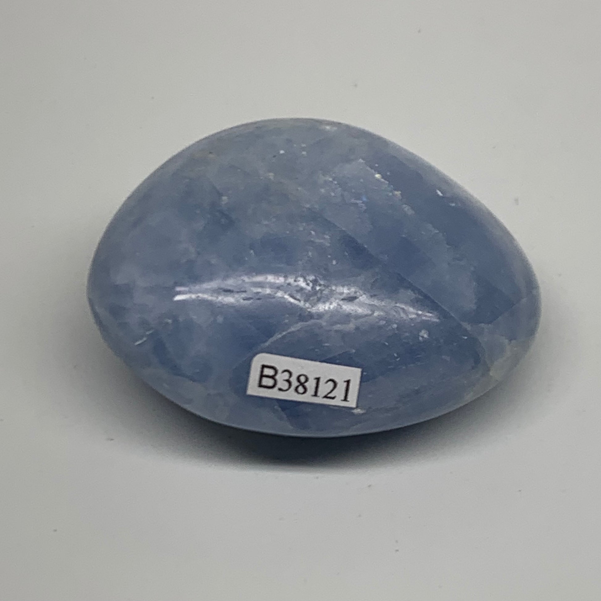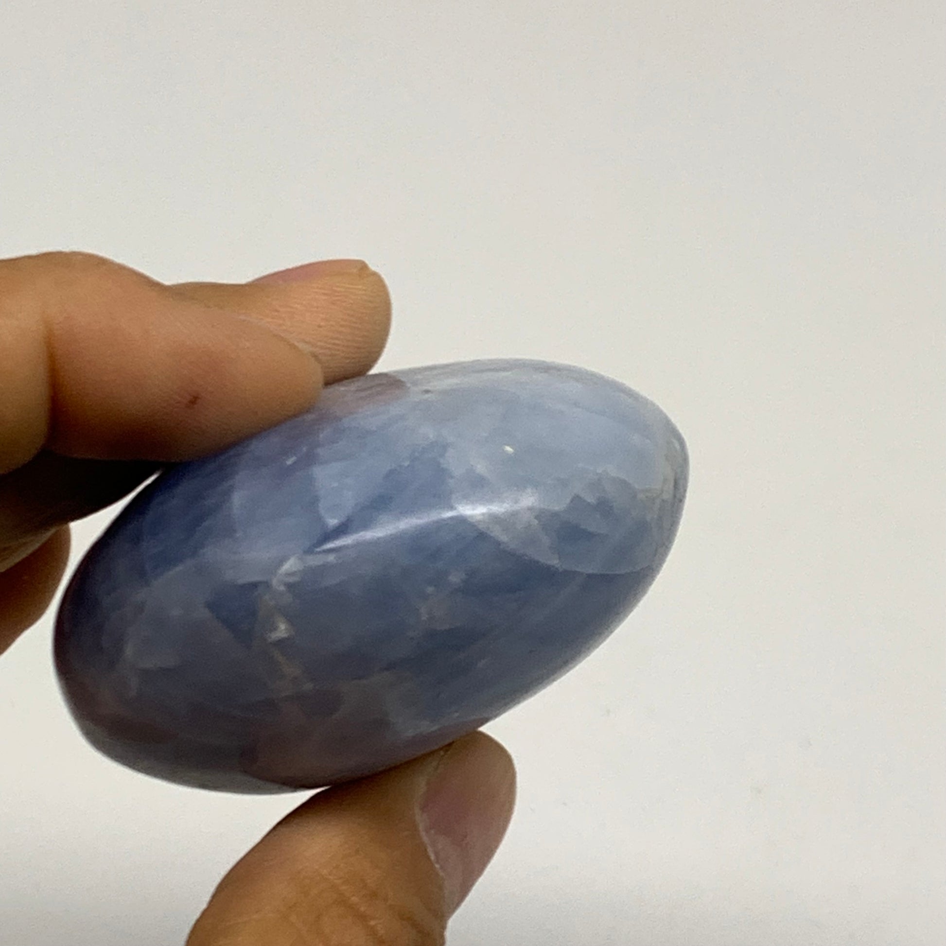 144.1g, 2.5"x2.1"x1.2" Blue Calcite Palm-Stone Polished Tumbled, B38121