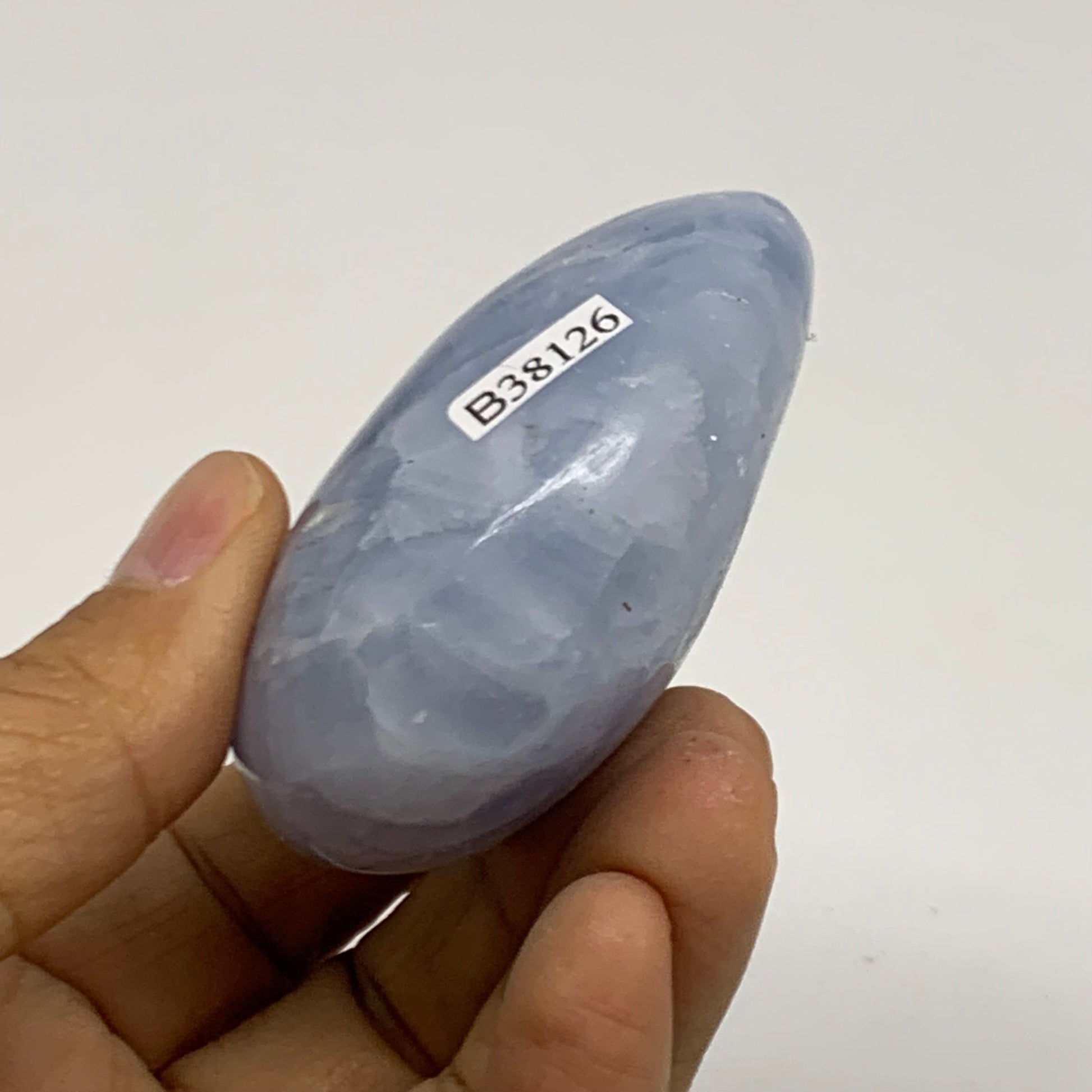 144.2g, 2.4"x2.1"x1.2" Blue Calcite Palm-Stone Polished Tumbled, B38126
