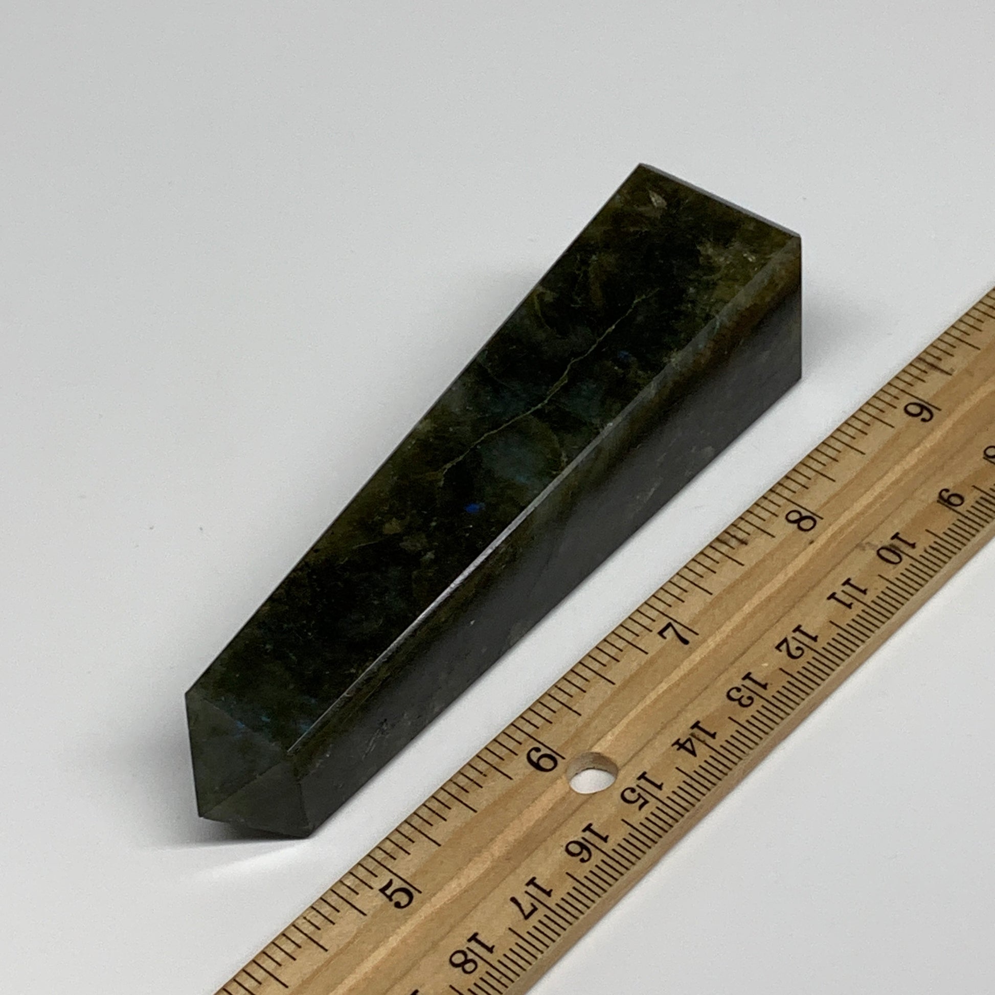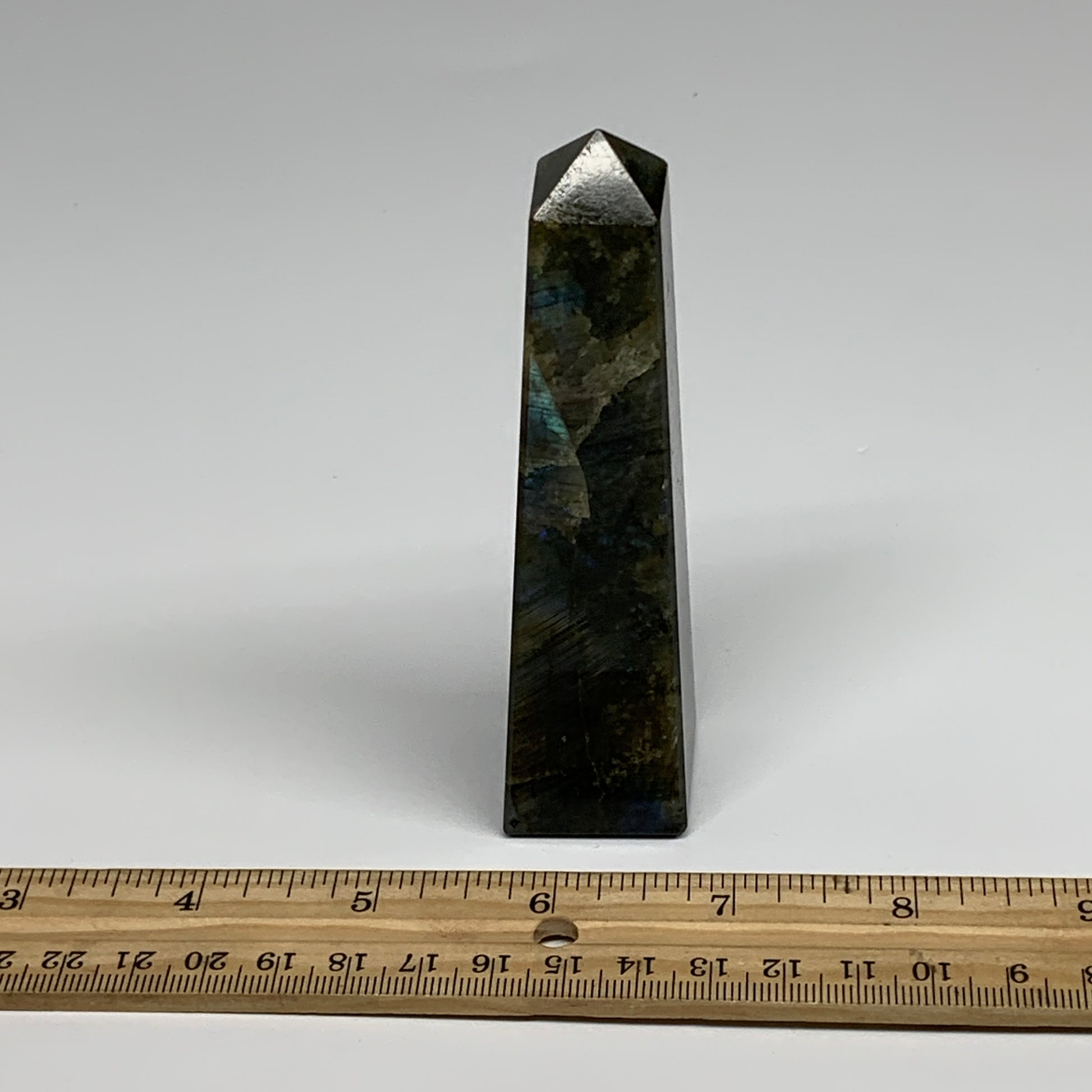 144.2g, 4.3"x1.1"x1.1, Labradorite Tower Point Crystal @Madagascar, B31289