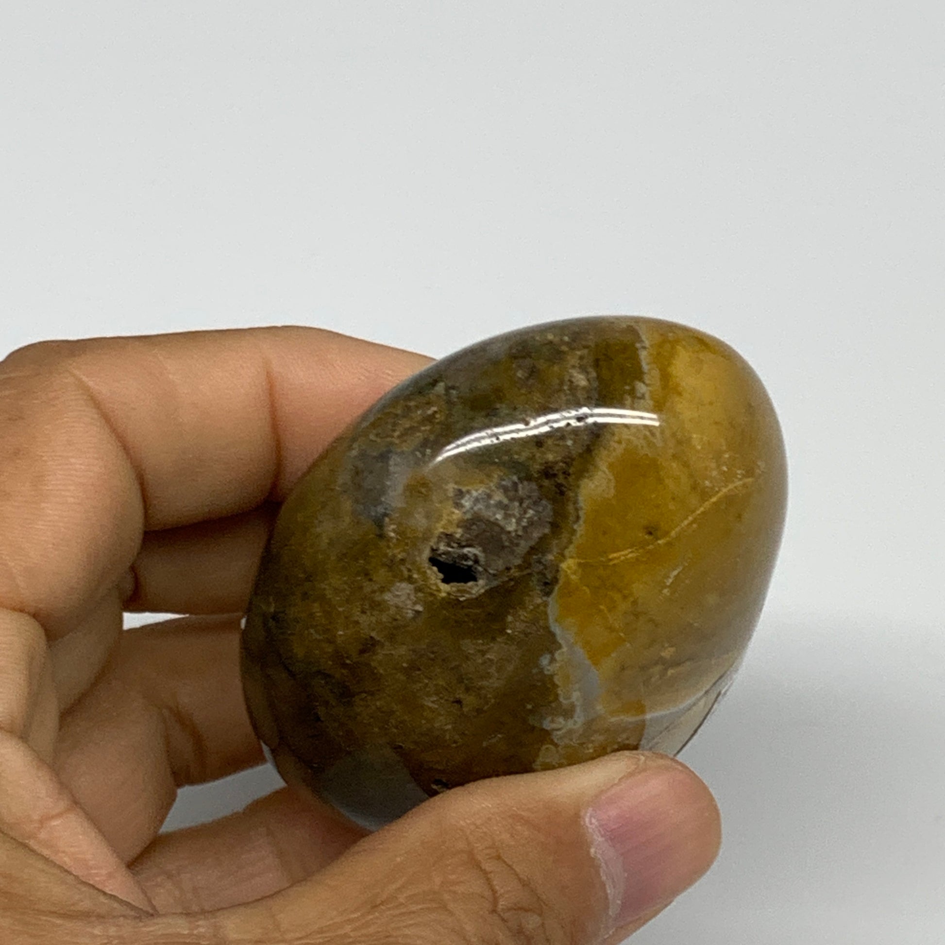 144g, 2.6"x2"x1.3" Natural Ocean Jasper Palm-Stone Orbicular Jasper, B30781