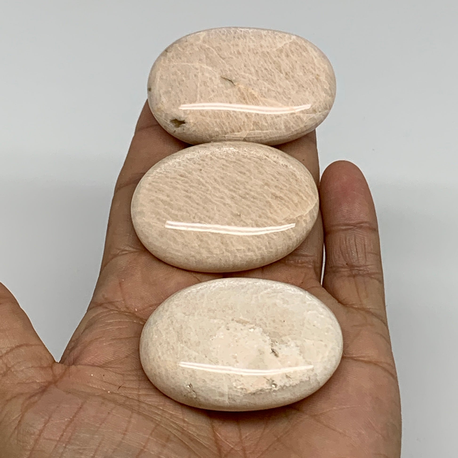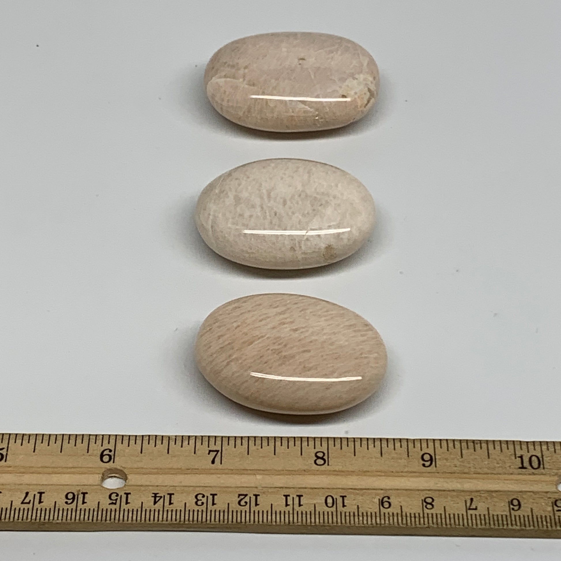 145.2g,1.9"-2", 3pcs, Peach Moonstone Polished Palm-Stone Gemstone, B34768