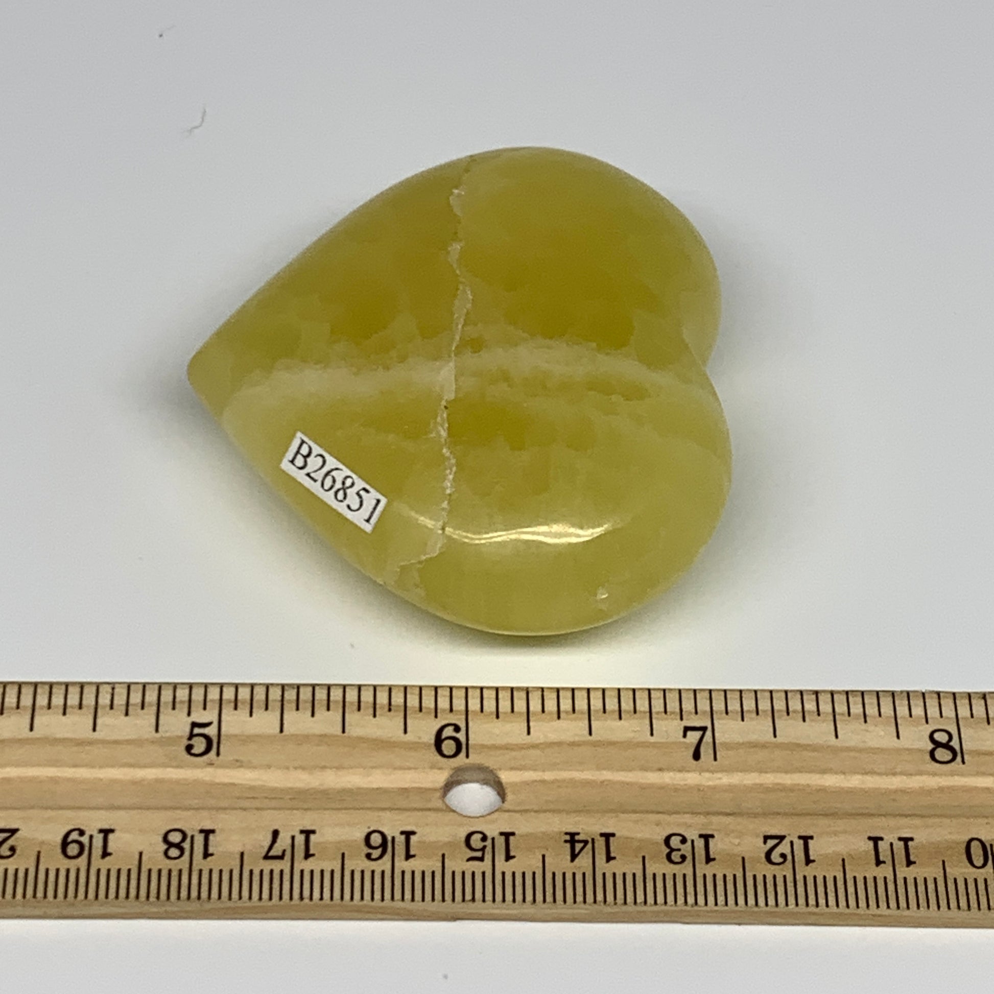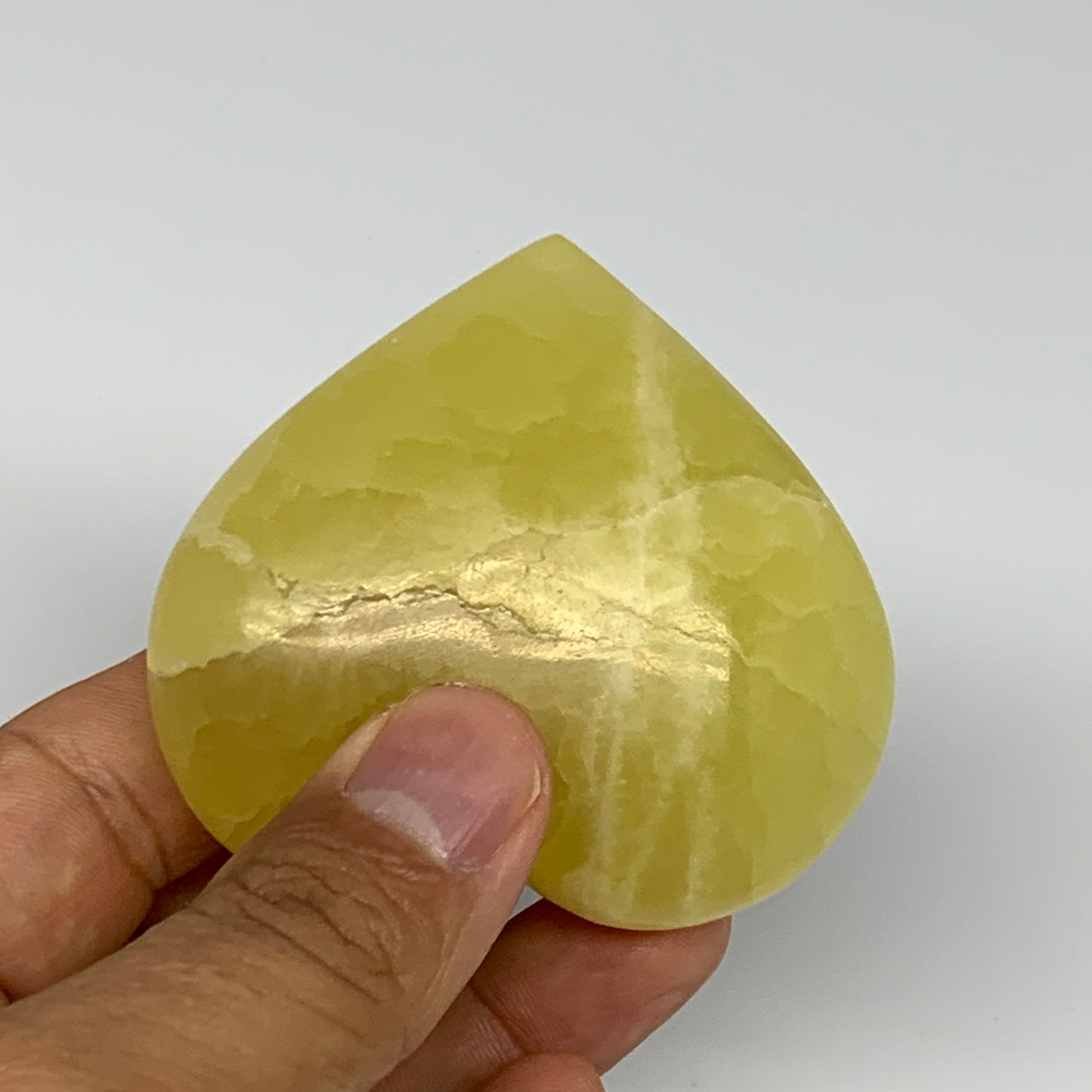 145.4g, 2.3"x2.6"x1" Lemon Calcite Heart Crystal Gemstones @Afghanistan, B26851