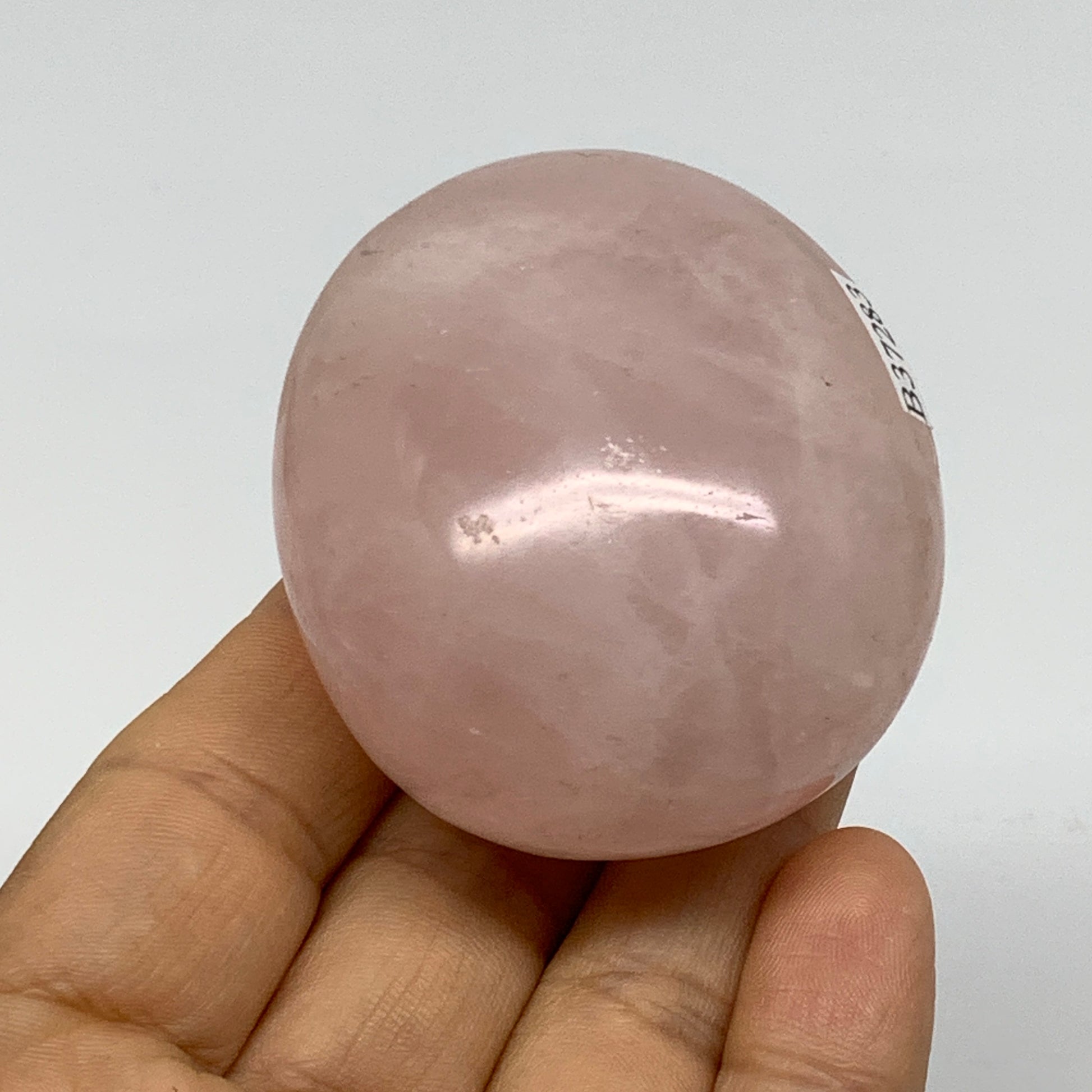 145.5g , 2.3"x2"x1.4", Natural Pink Rose Quartz Palm-stone Crystal, B37283