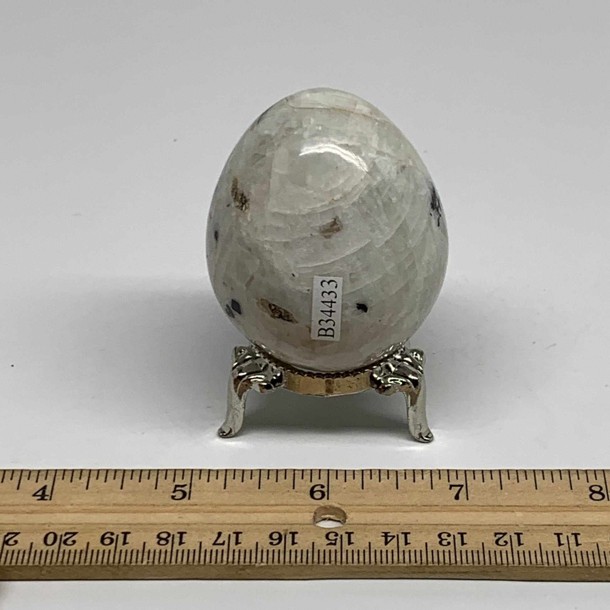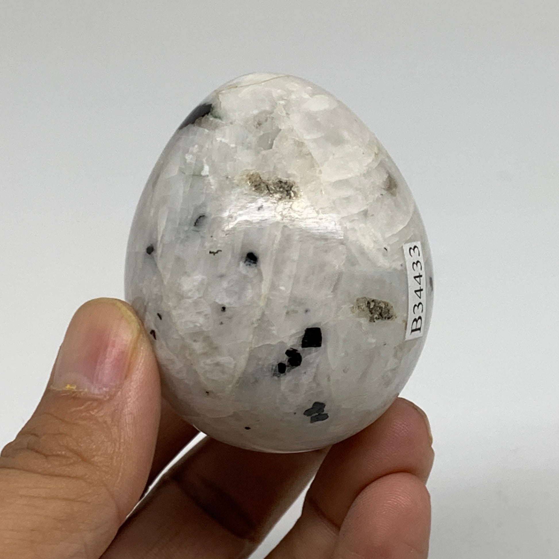 145.6g, 2.2"x1.8", Natural Gemstone White Rainbow Moonstone Egg, B34433