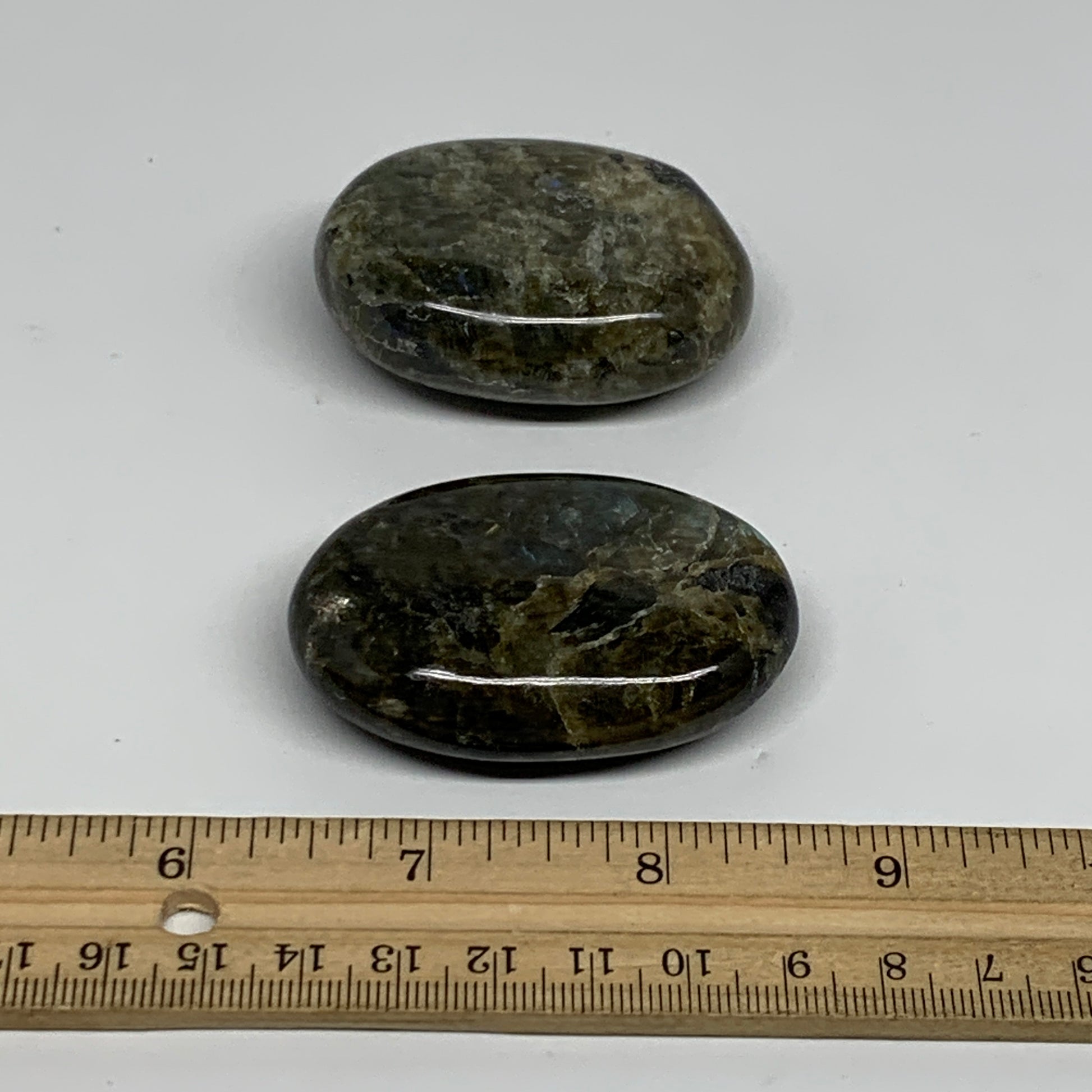 145.7g, 2.2"-2.3", 2pcs, Labradorite Palm-stone Polished Gemstone, B35535