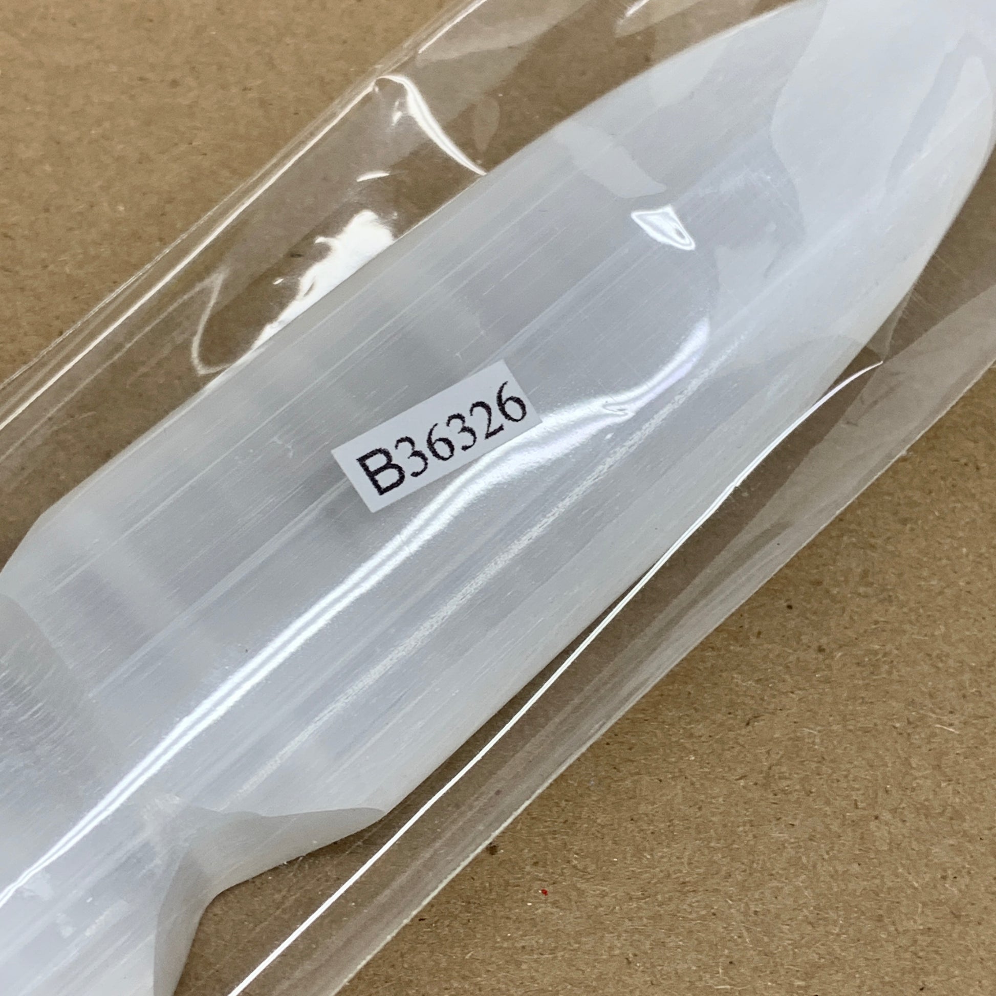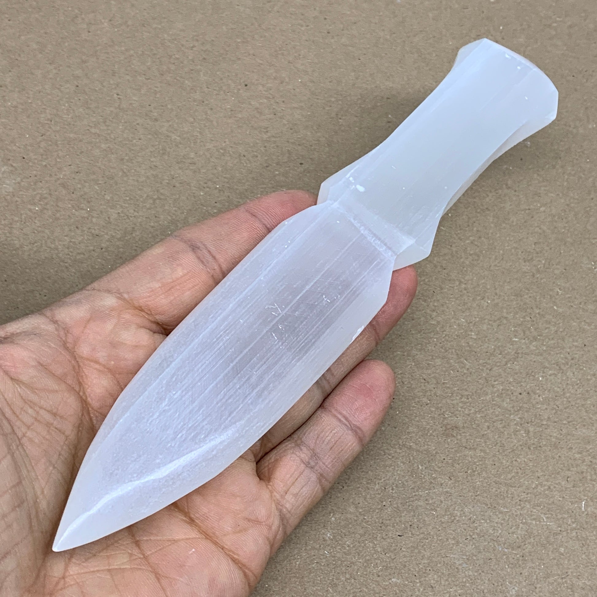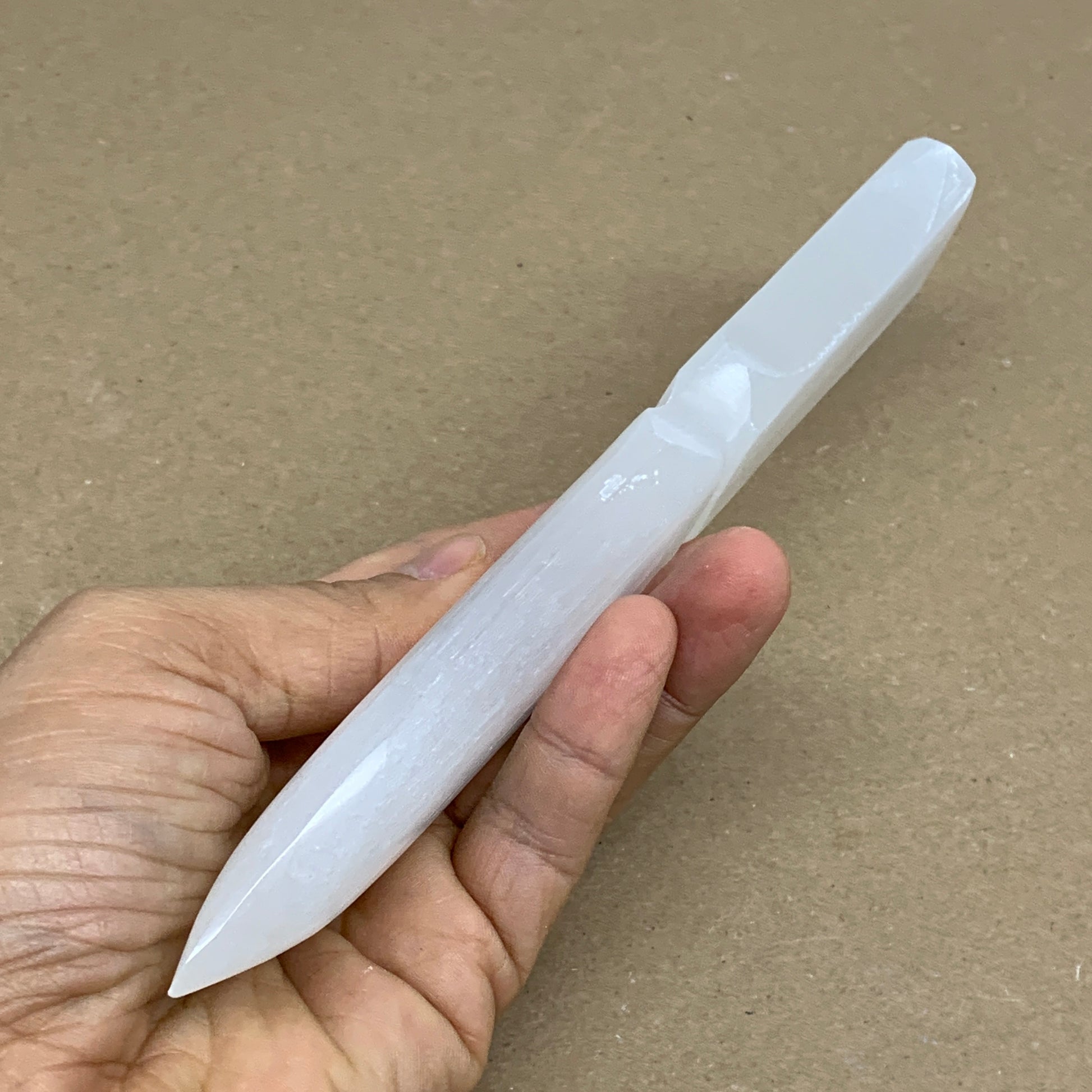 145g, 7.5"x1.3"x0.6", Natural Selenite Crystal Dagger (Satin Spar), B36326