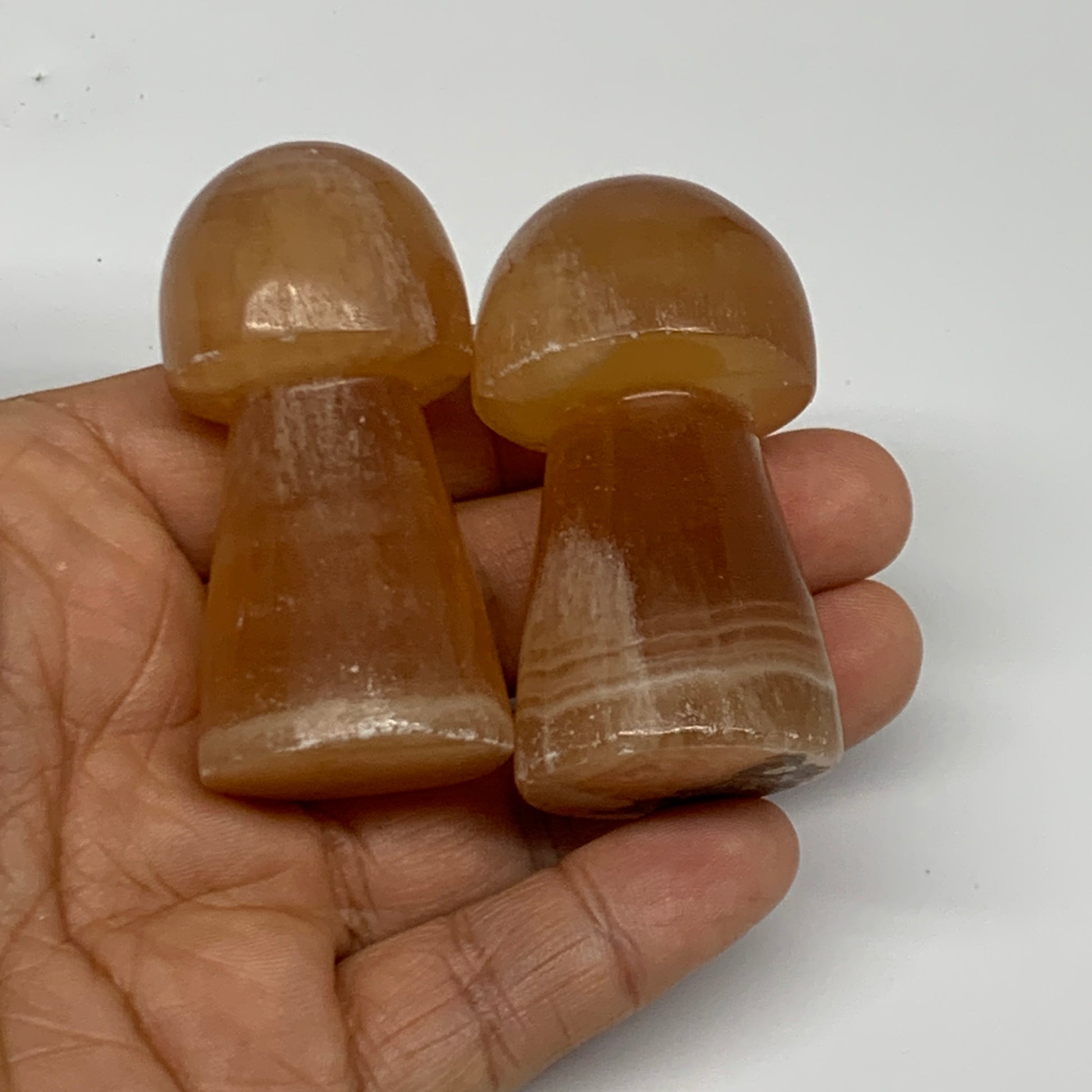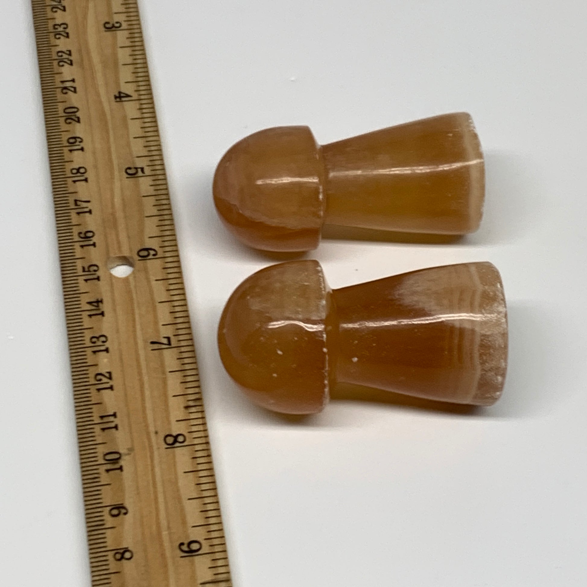 146.6g, 2.2"-2.3", 2pcs, Natural Honey Calcite Mushroom Gemstone @Pakistan, B31729