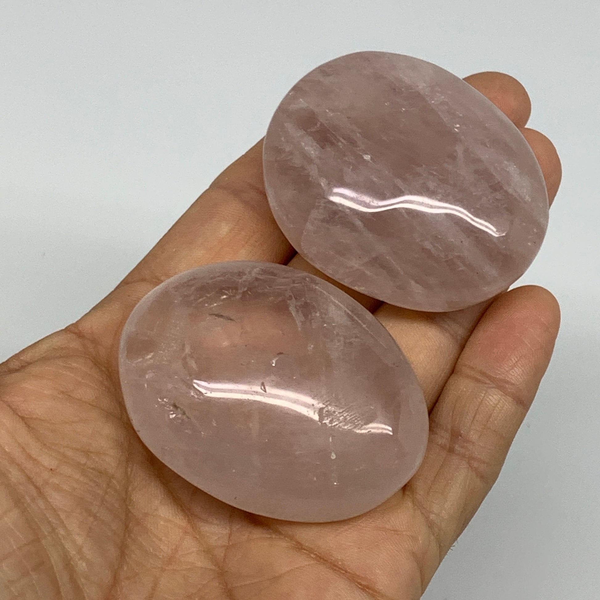 146g , 2"-2.1", 2pcs, Natural Pink Rose Quartz Palm-stone Crystal, B37231
