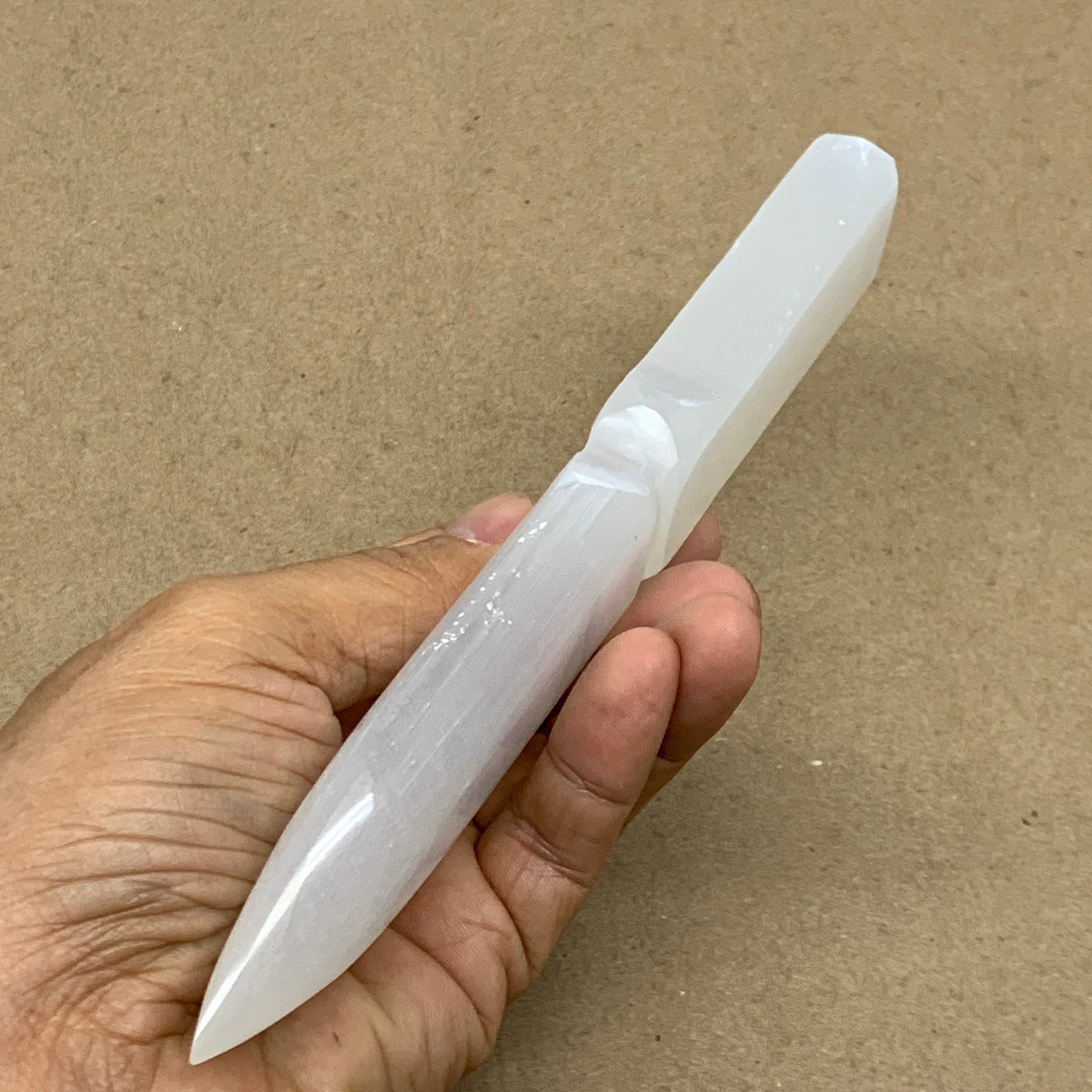 146g, 7.5"x1.3"x0.6", Natural Selenite Crystal Dagger (Satin Spar), B36905