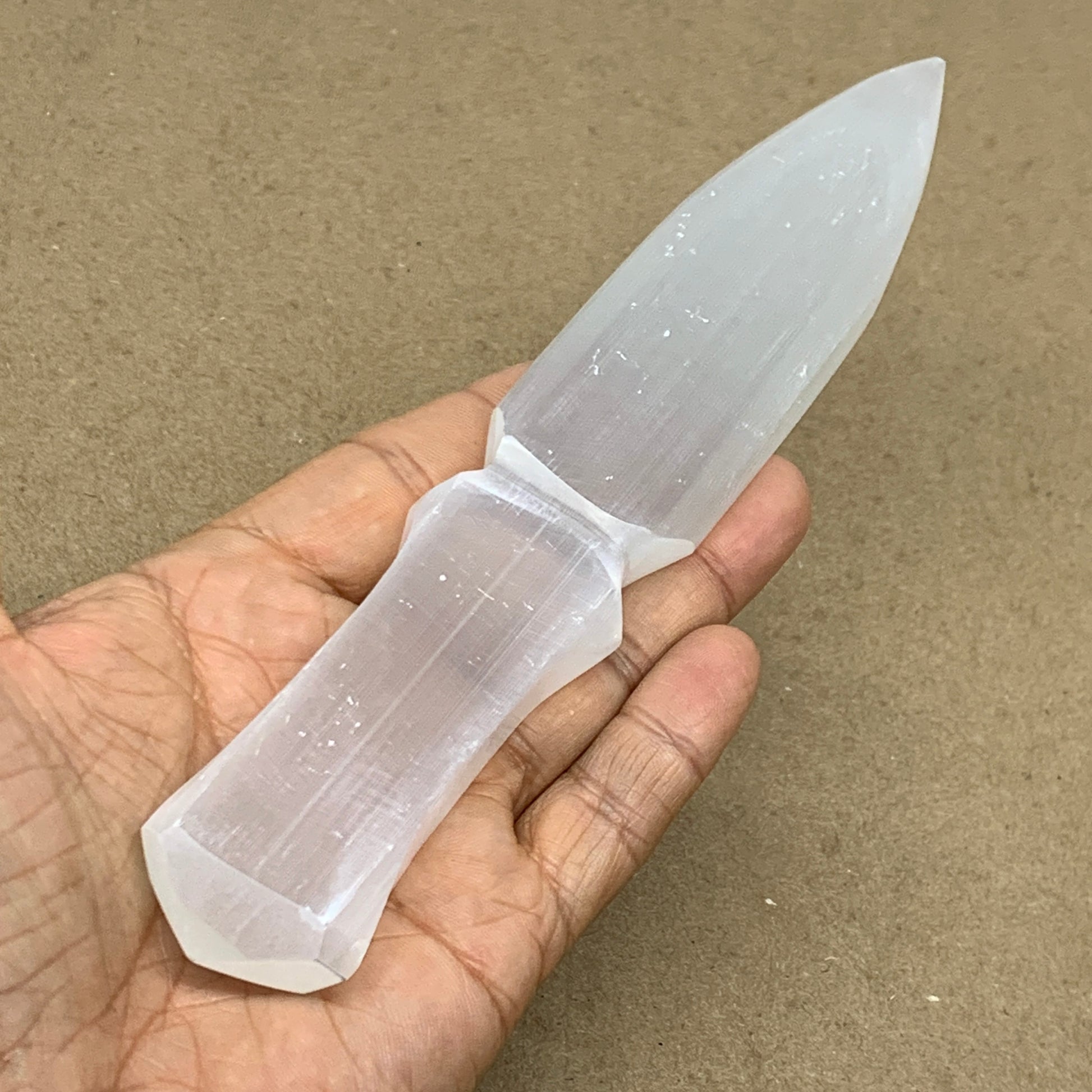 146g, 7.5"x1.3"x0.6", Natural Selenite Crystal Dagger (Satin Spar), B36907