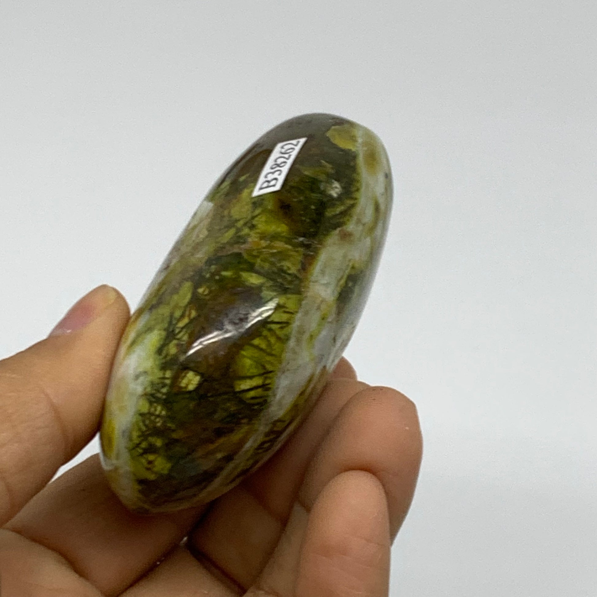 147.2g, 2.9"x2"x1.3", Green Opal Crystal PalmStone Polished Reiki, B38262